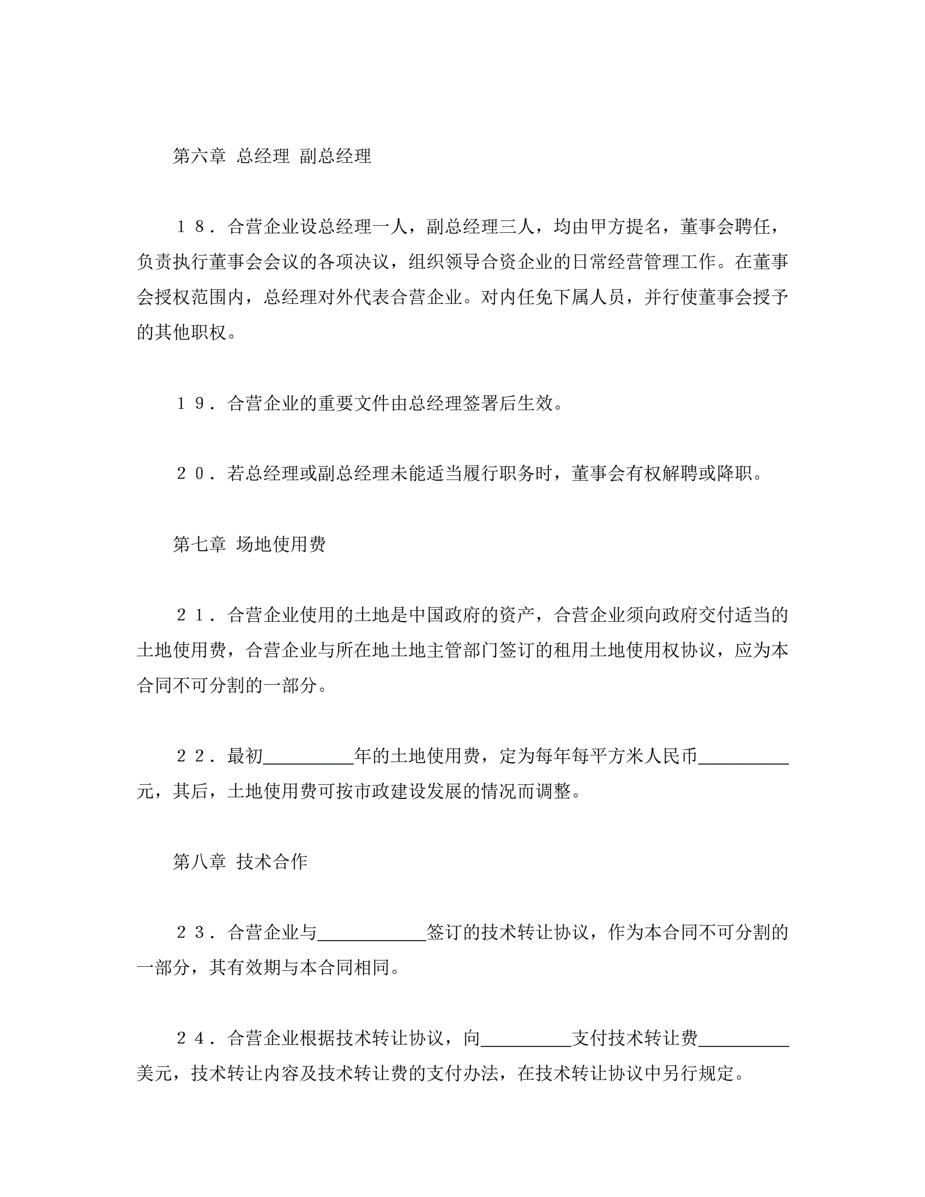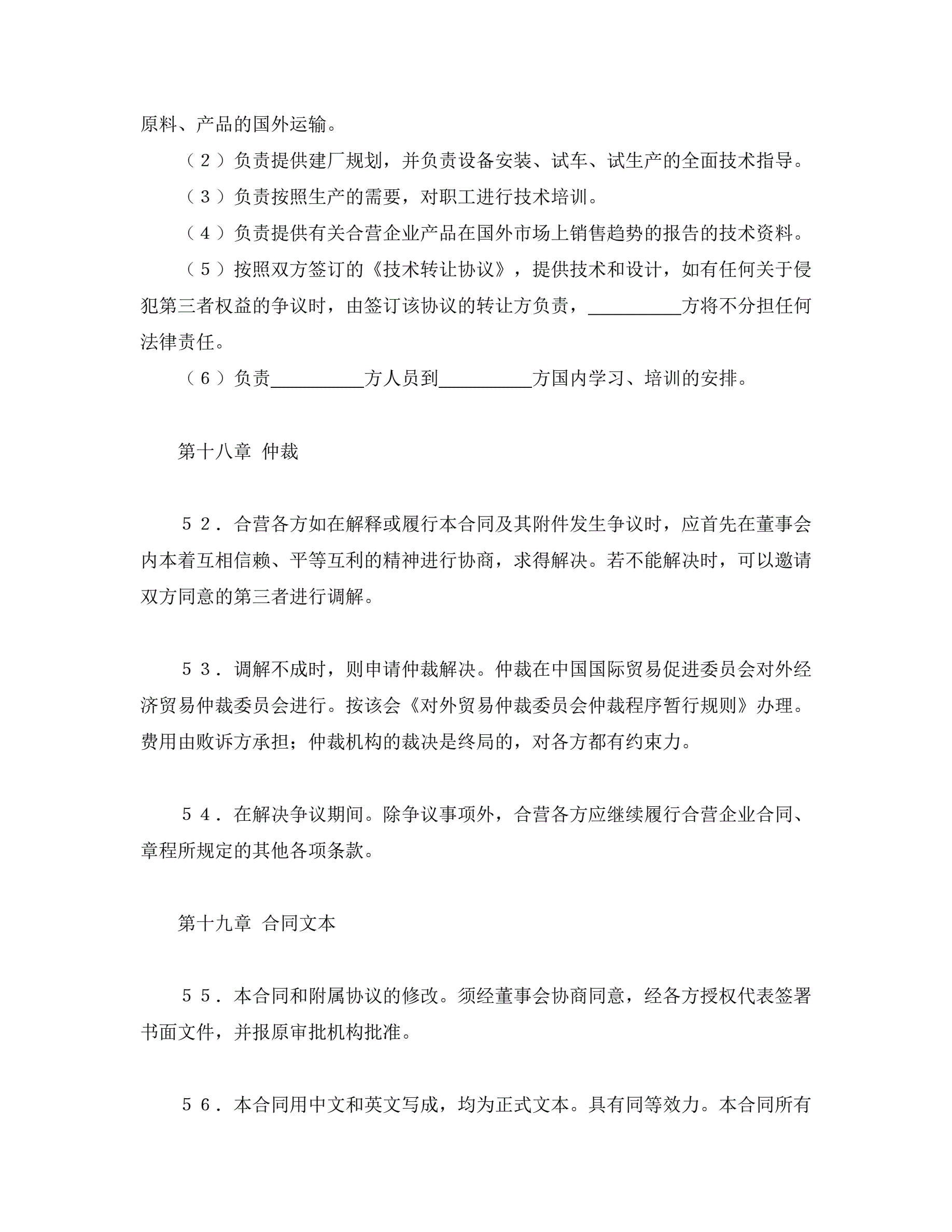 >中外合资经营企业合同(塑料制品)