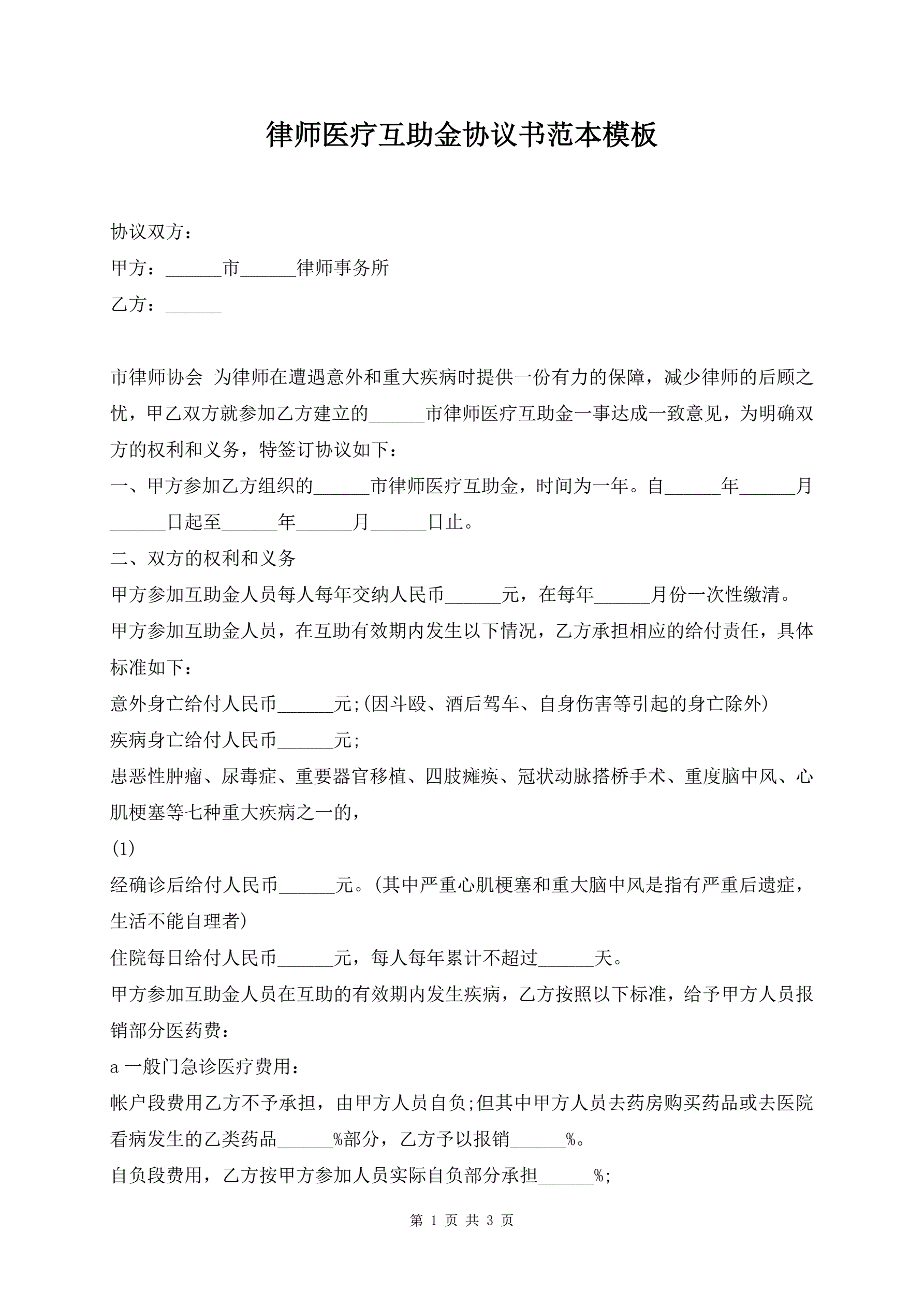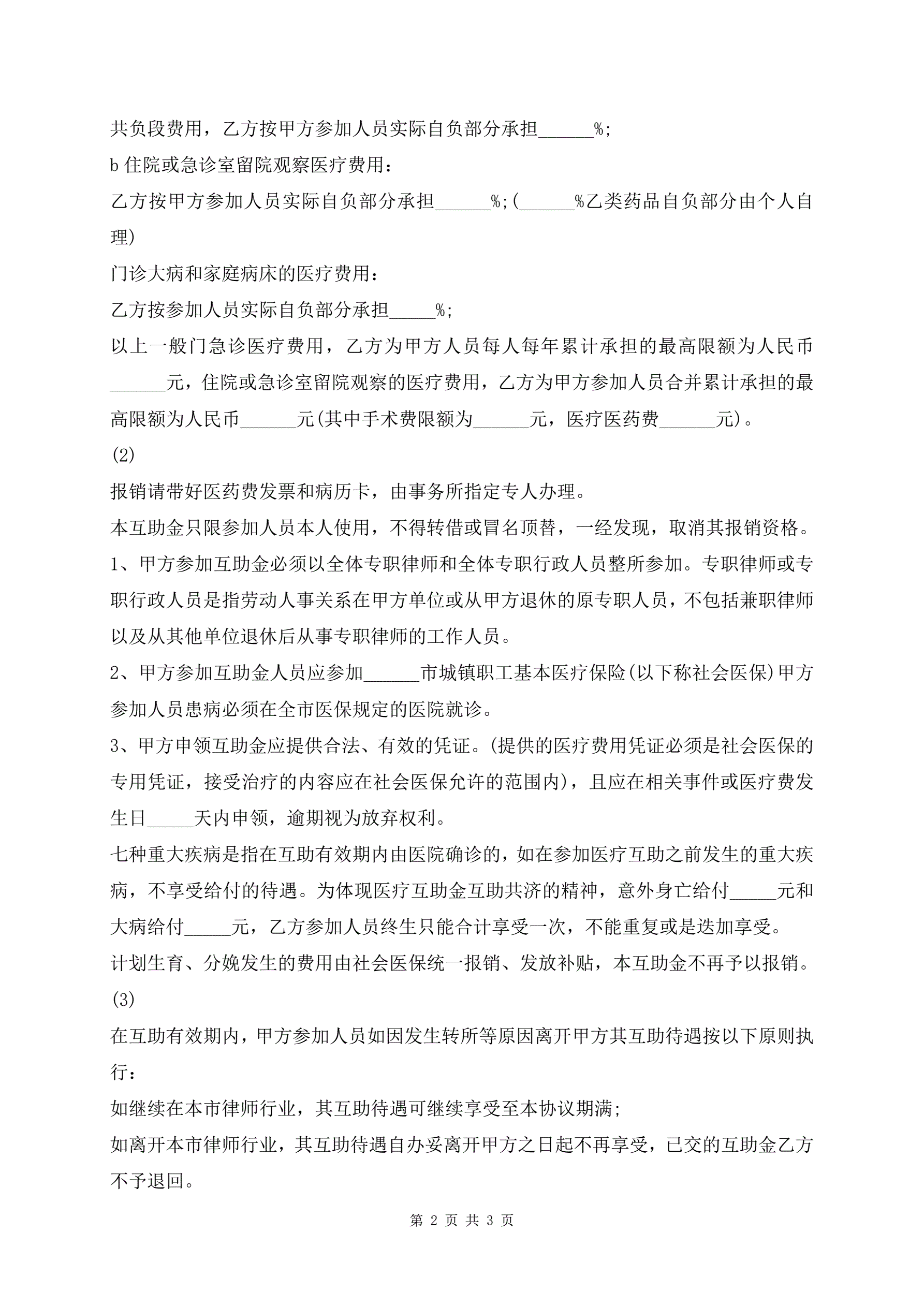 >律师医疗互助金协议书范本模板