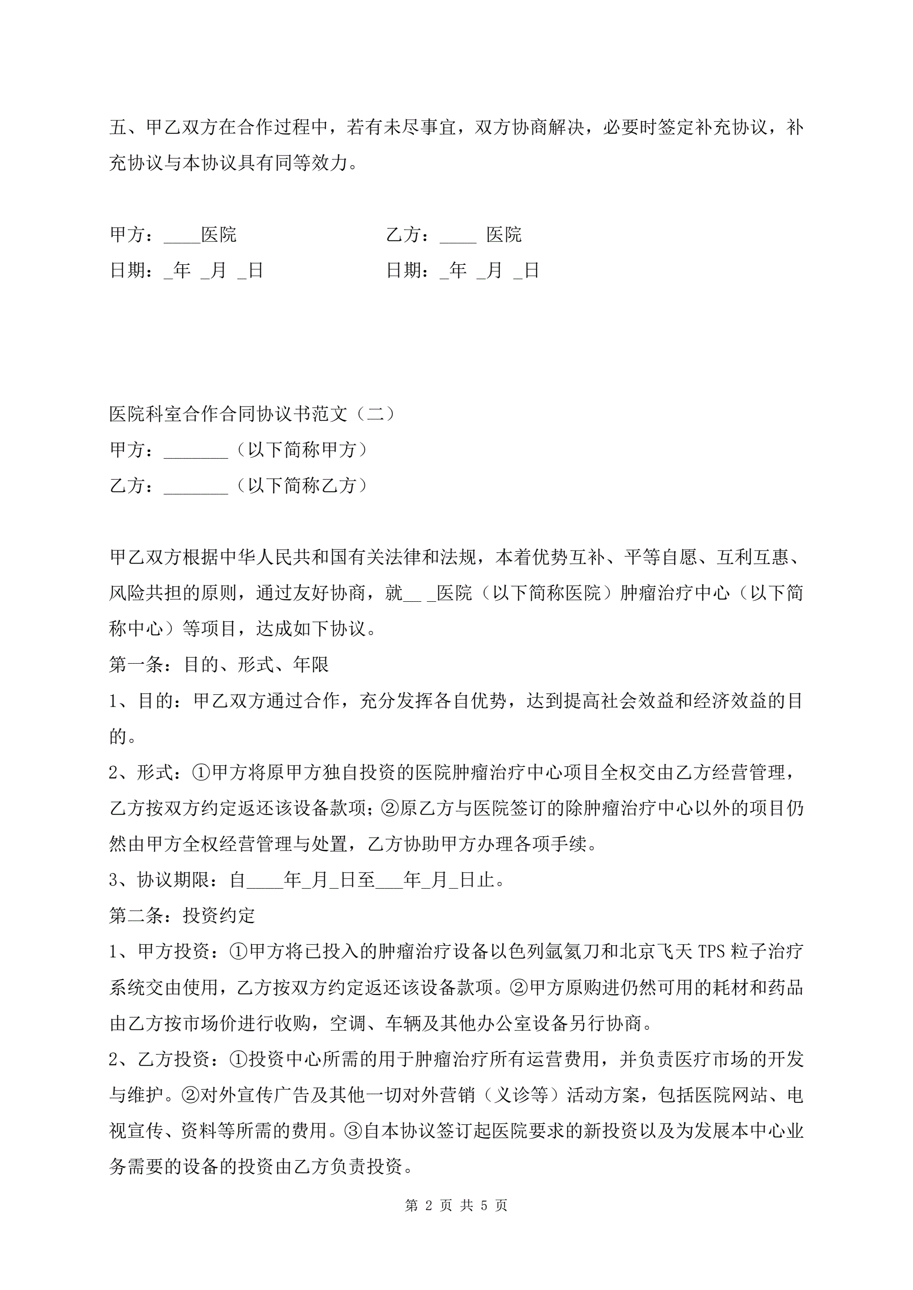 >医院科室合作合同协议书范文