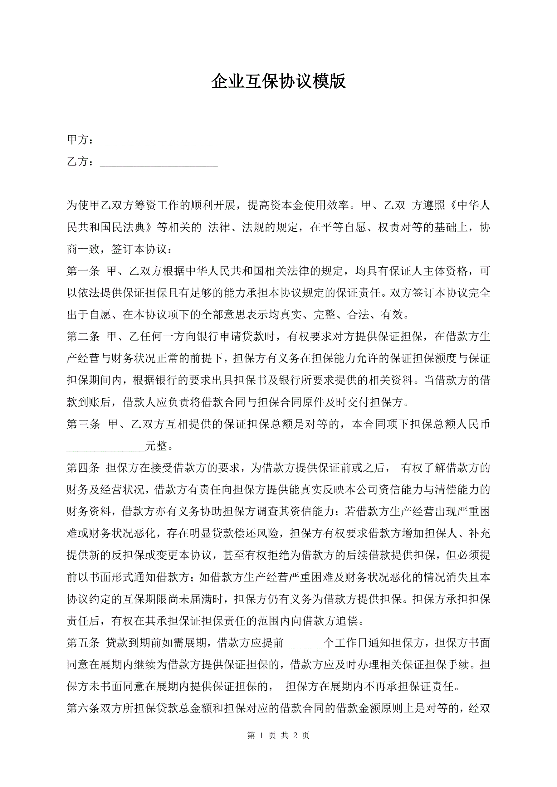 >企业互保协议模版