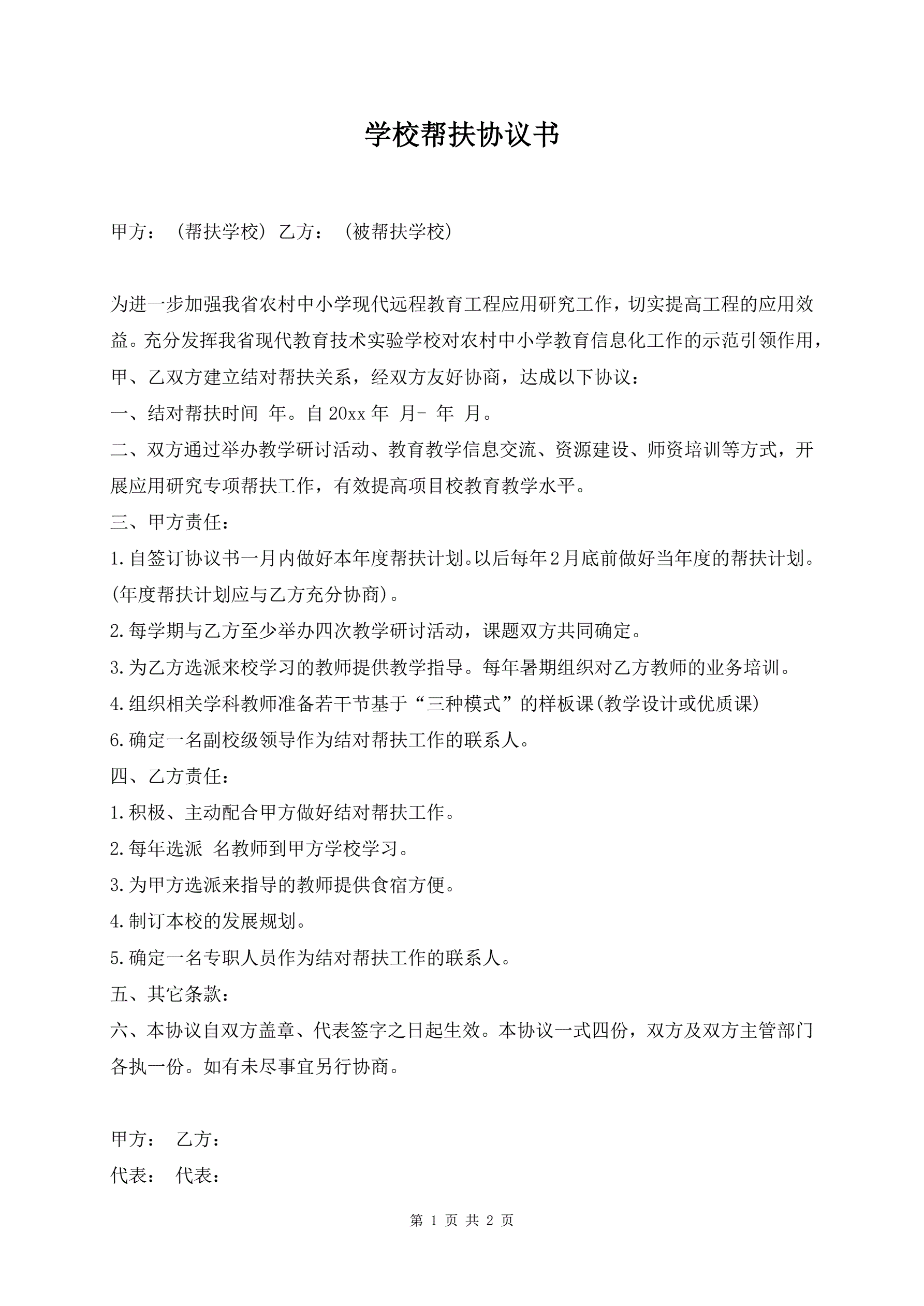 学校帮扶协议书