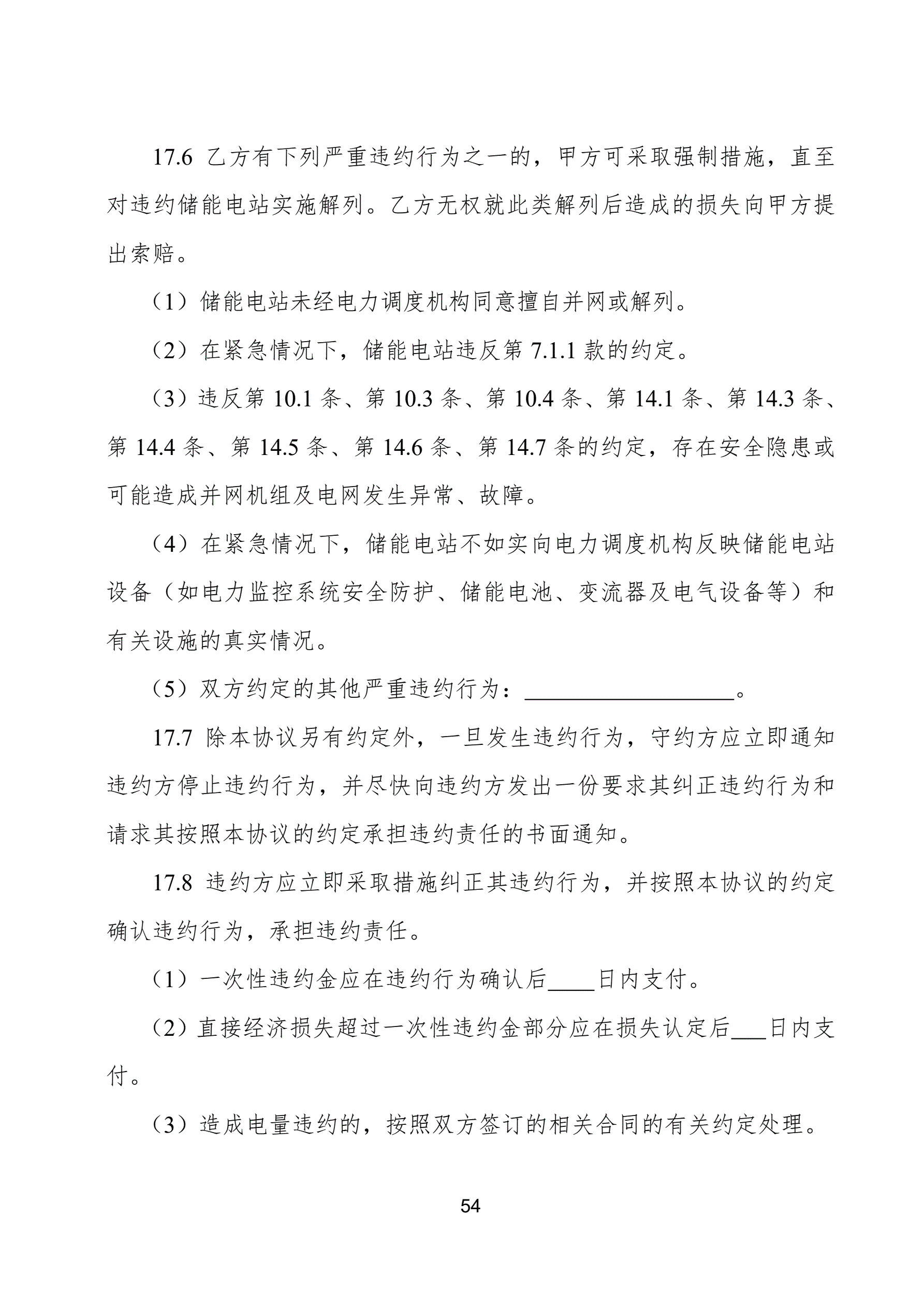 电化学储能电站并网调度协议示范文本(试行)GF-2021-0514