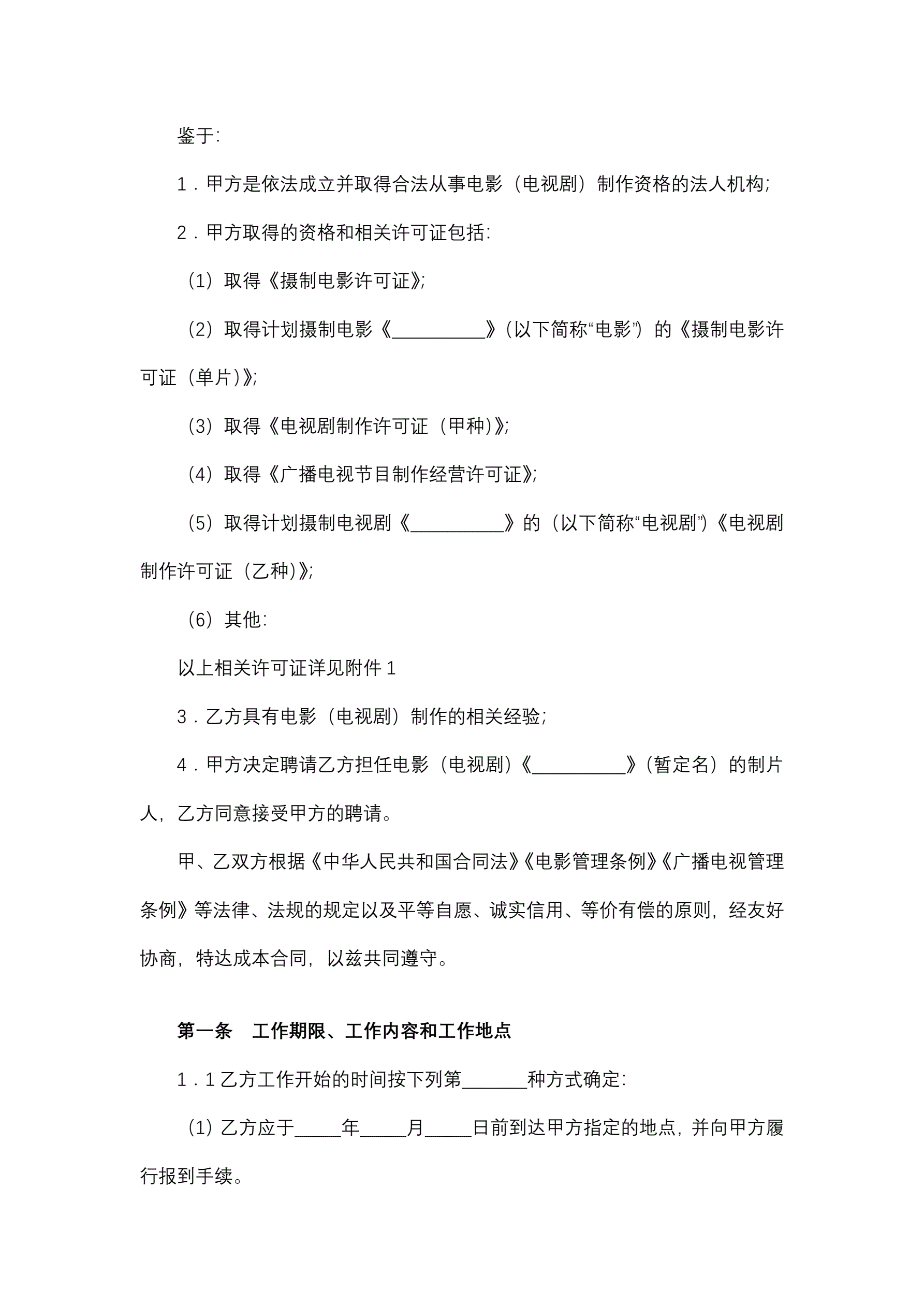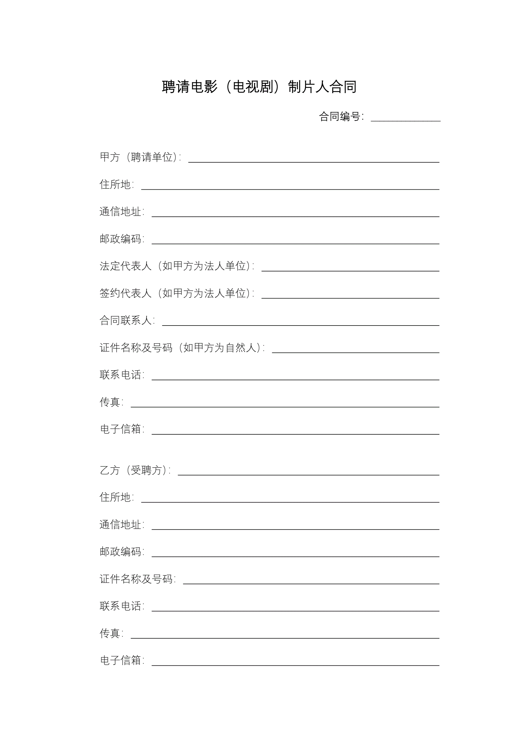 >聘请电影(电视剧)制片人合同
