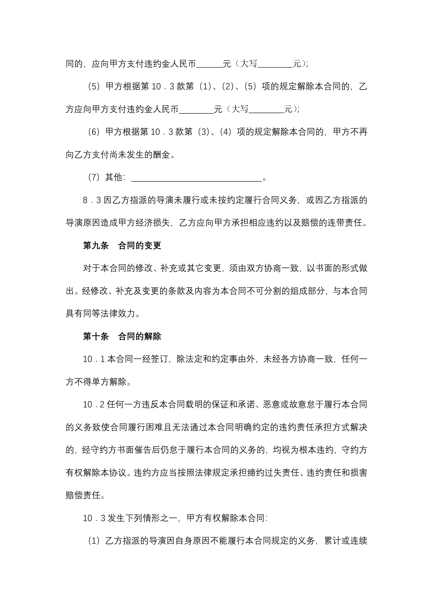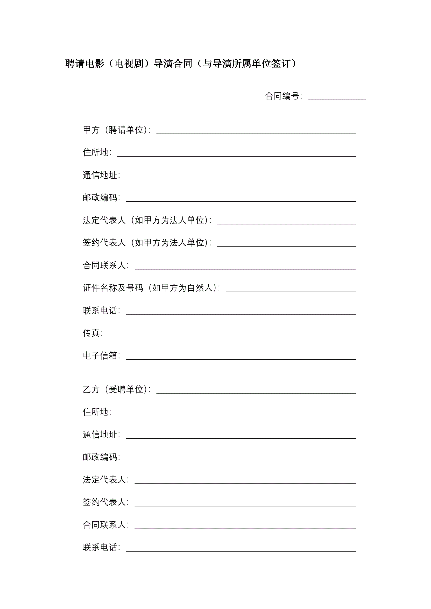 >聘请电影(电视剧)导演合同(与导演所属单位签订)