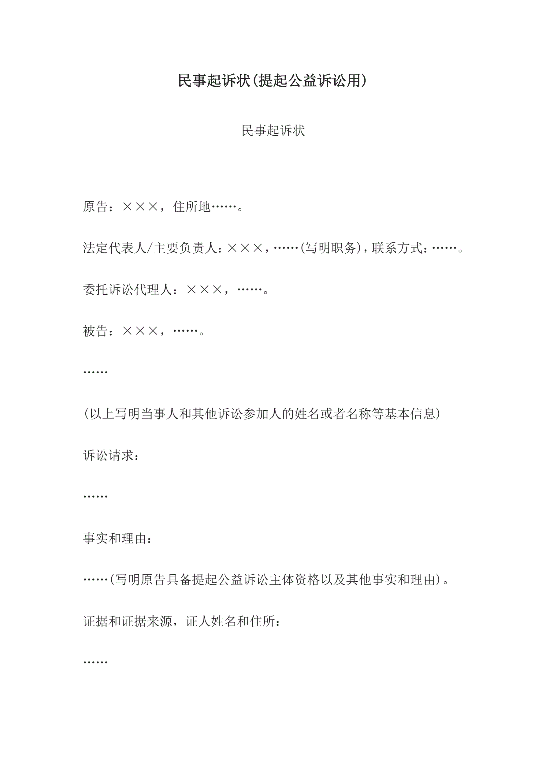 合同名称:民事起诉状(提起公益诉讼用)