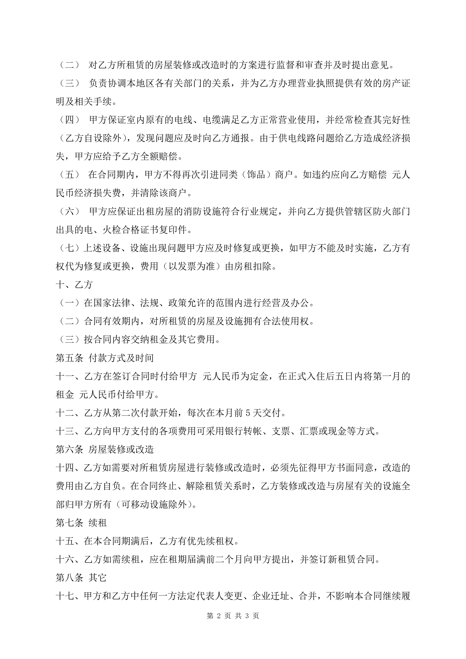 简单商铺出租合同样本