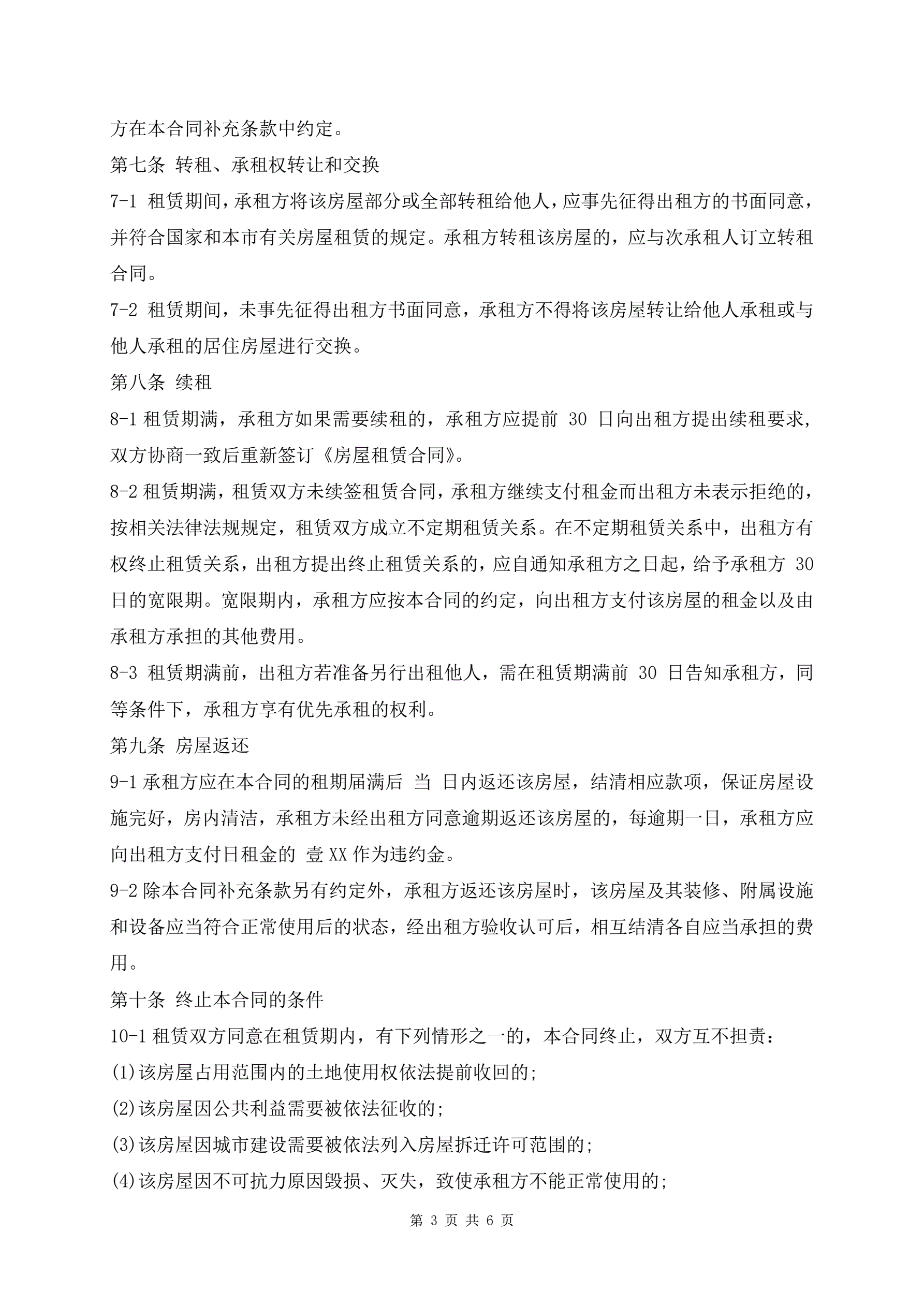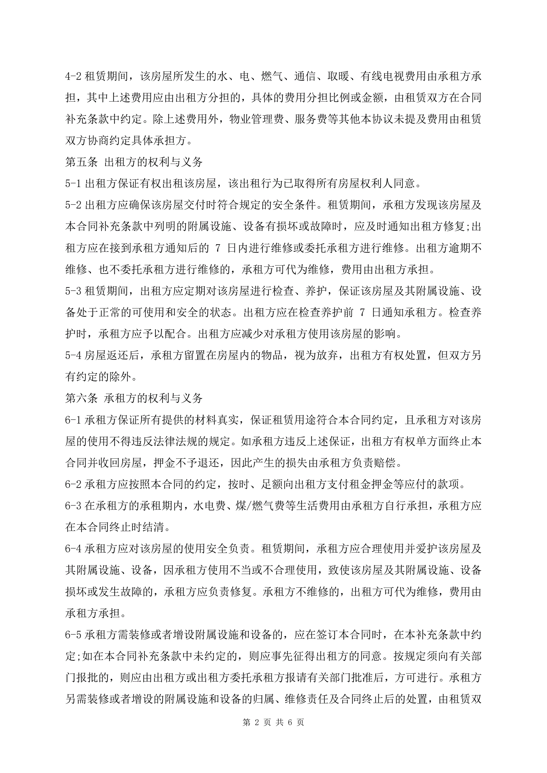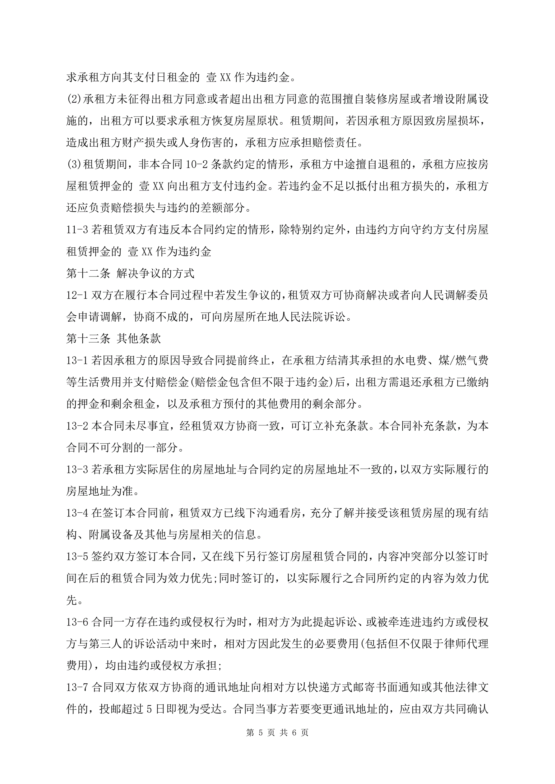 个人租房合同书标准版