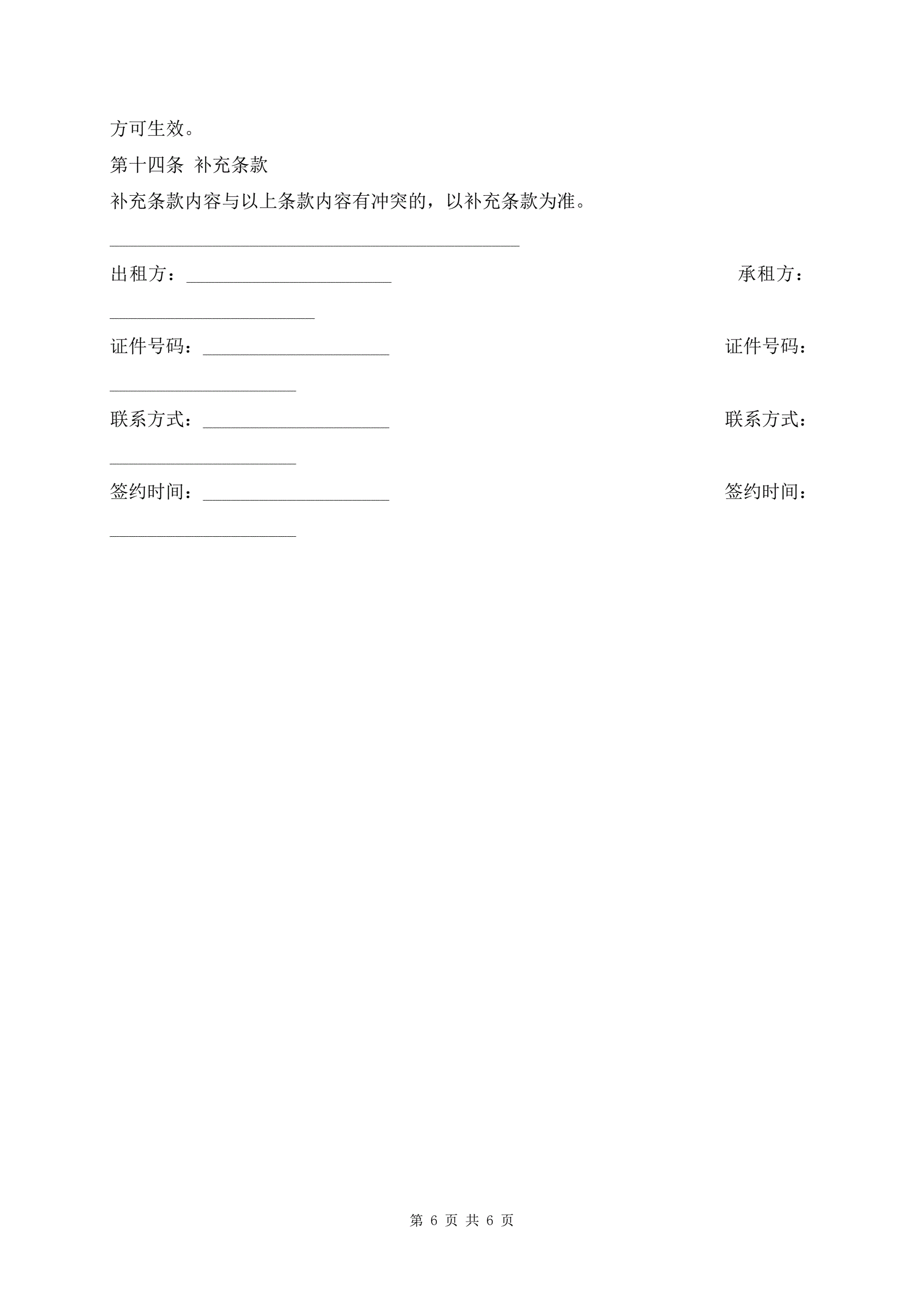 >个人租房合同书标准版