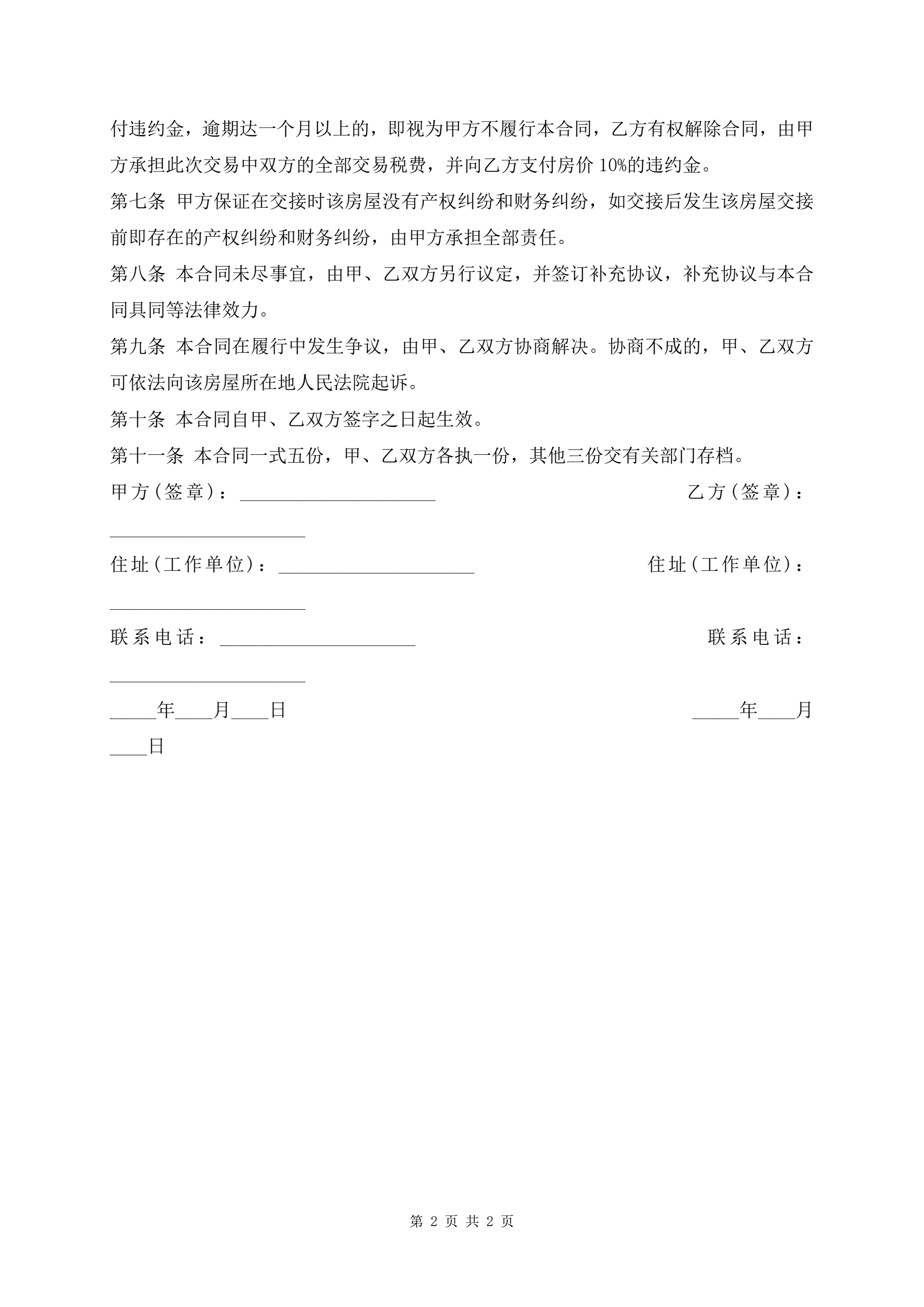 >最新二手房屋买卖合同通用版