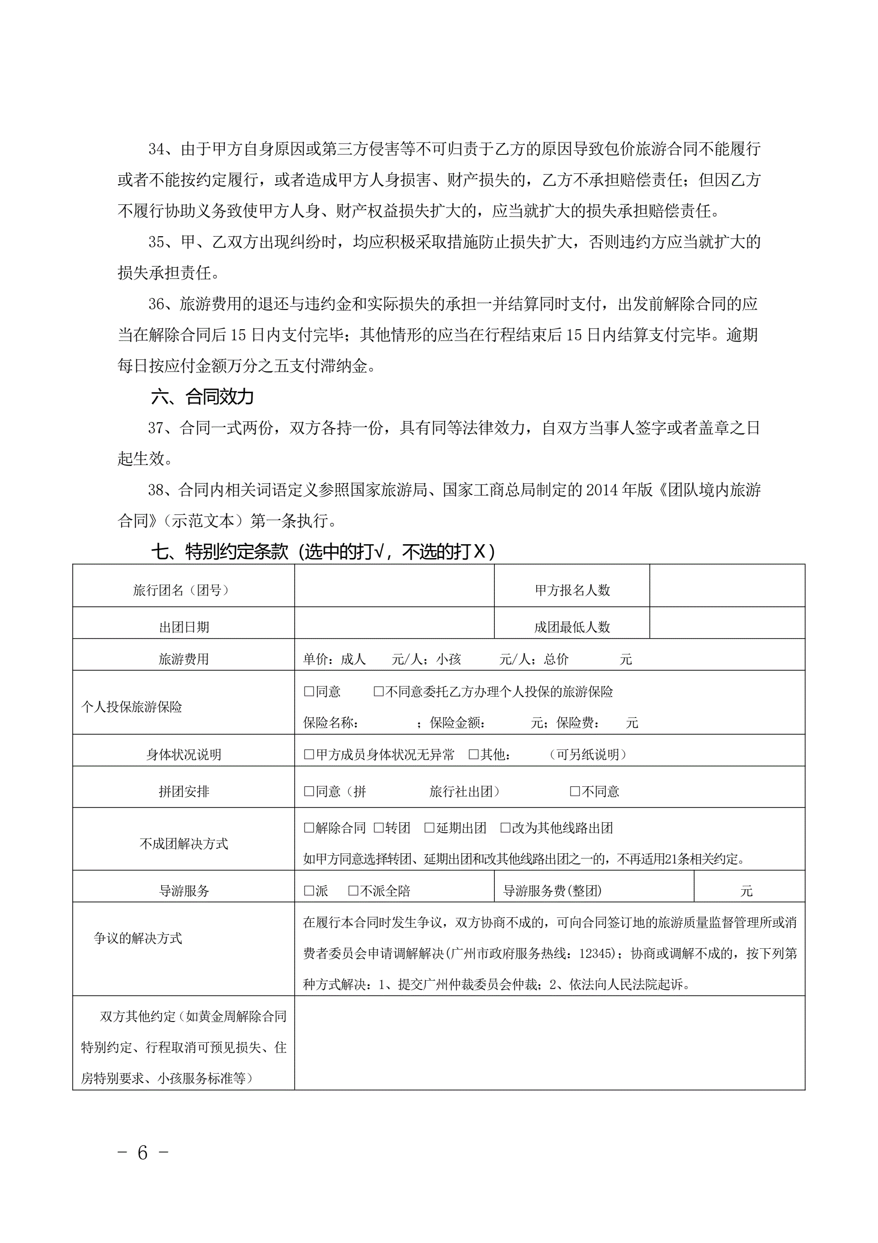 >广州市国内旅游组团合同(2014版)