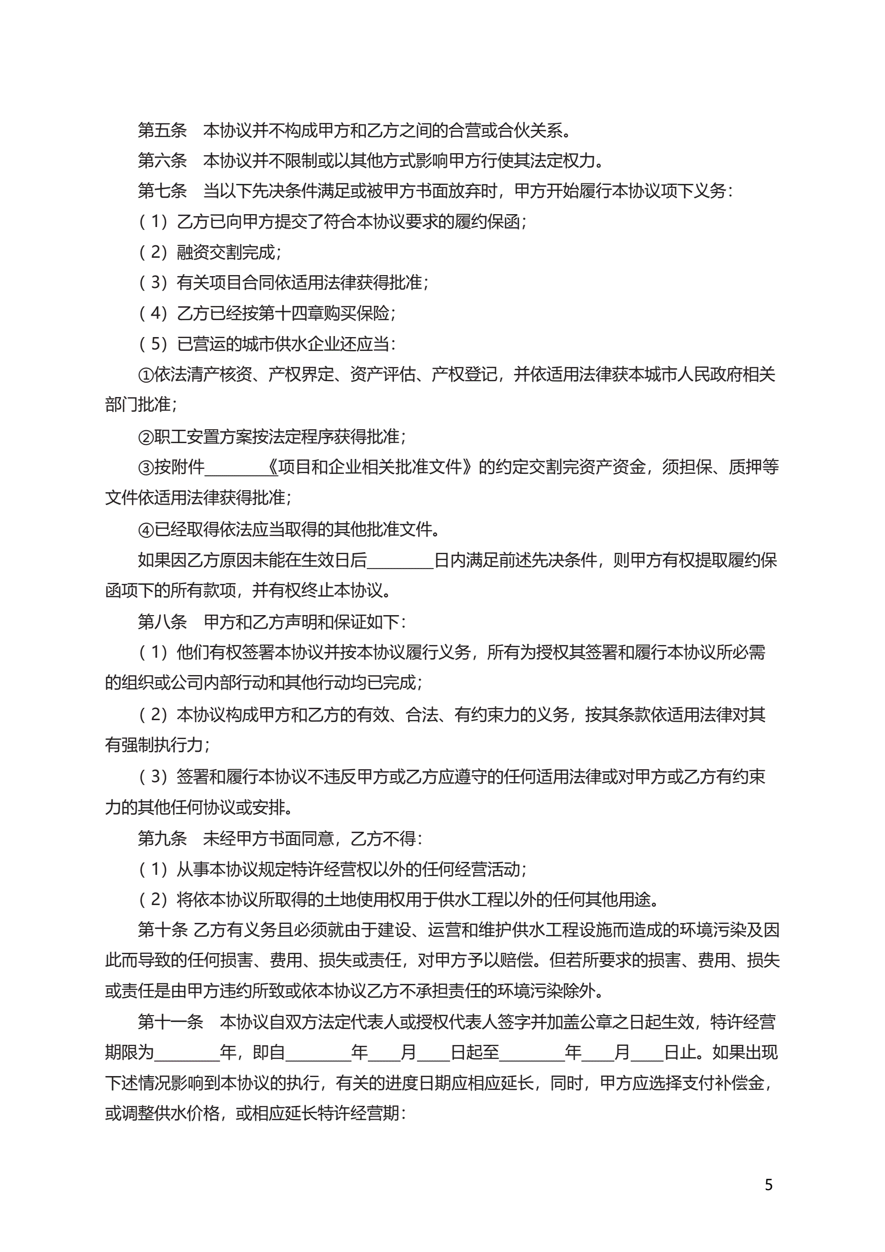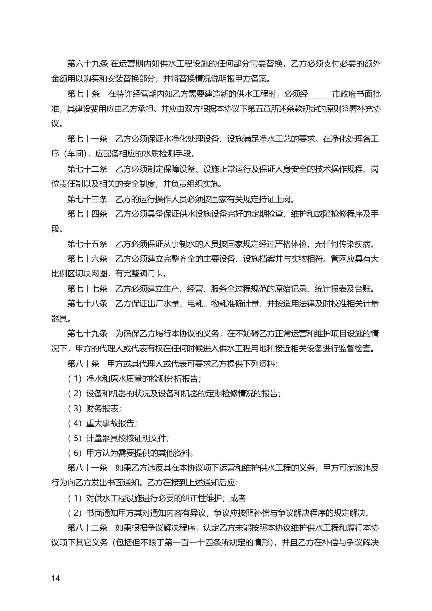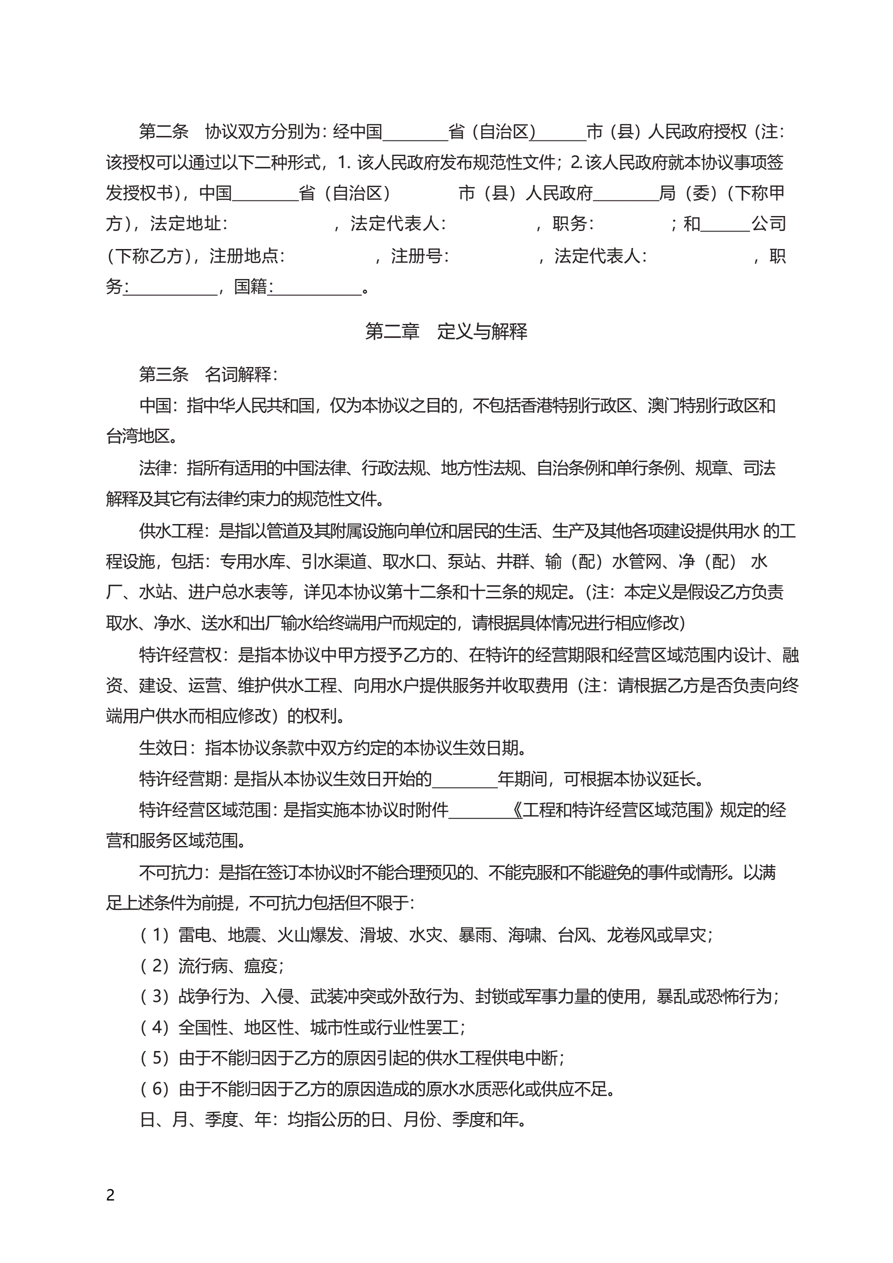 >城市供水特许经营协议 GF—2004—2501