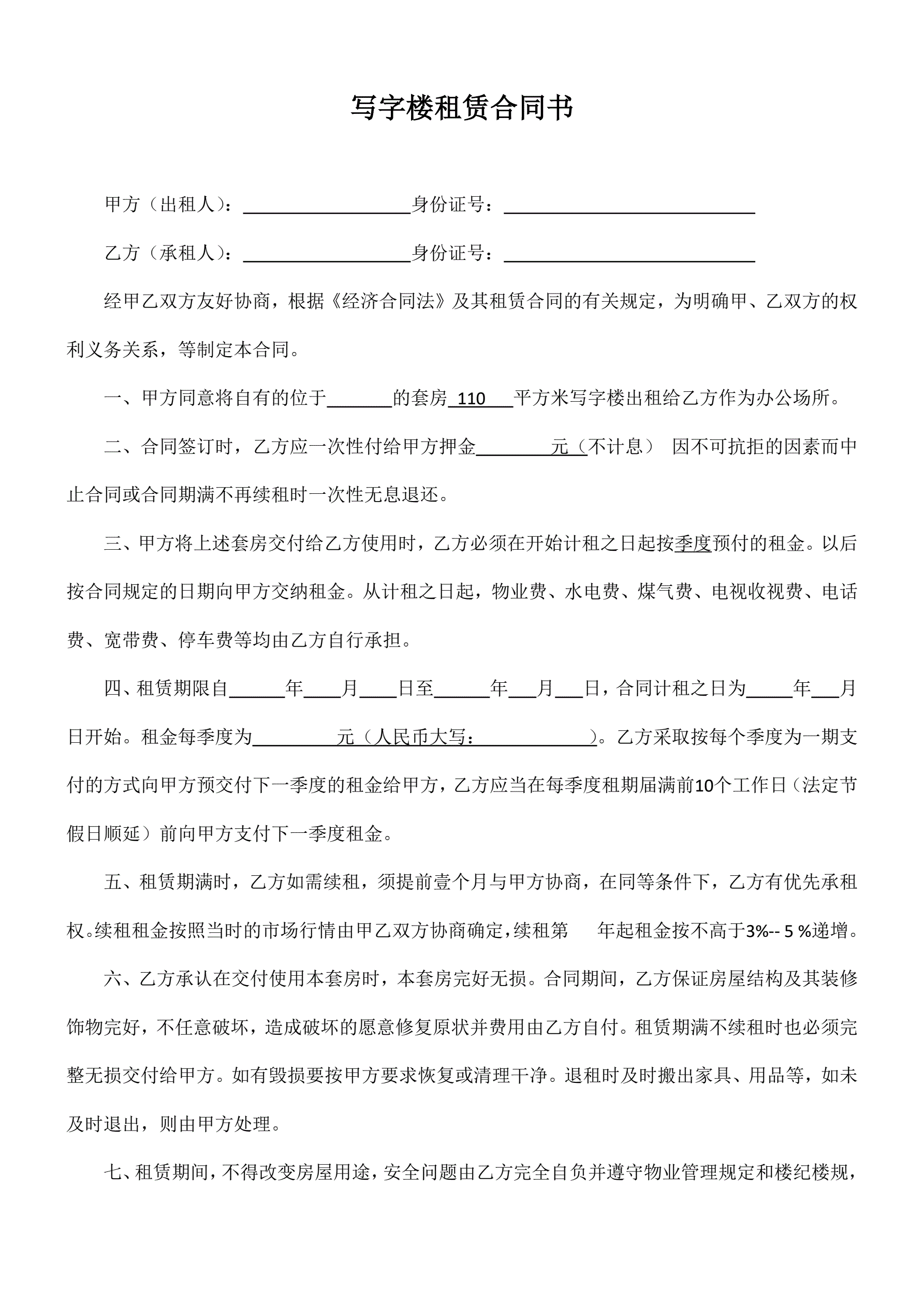 写字楼租赁合同书(实用简单)