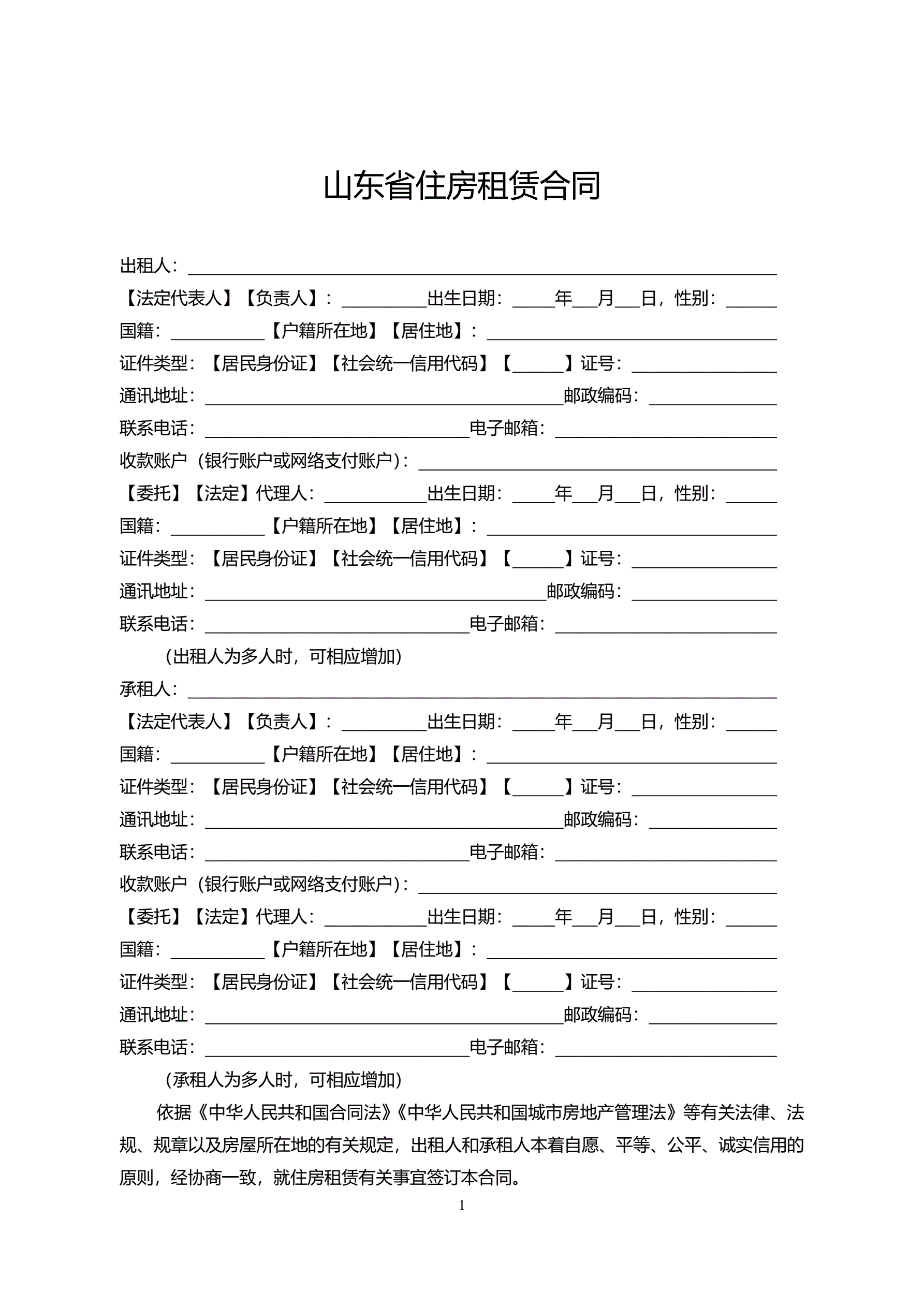 >2018SDF-2018-0001《山东省住房租赁合同示范文本》