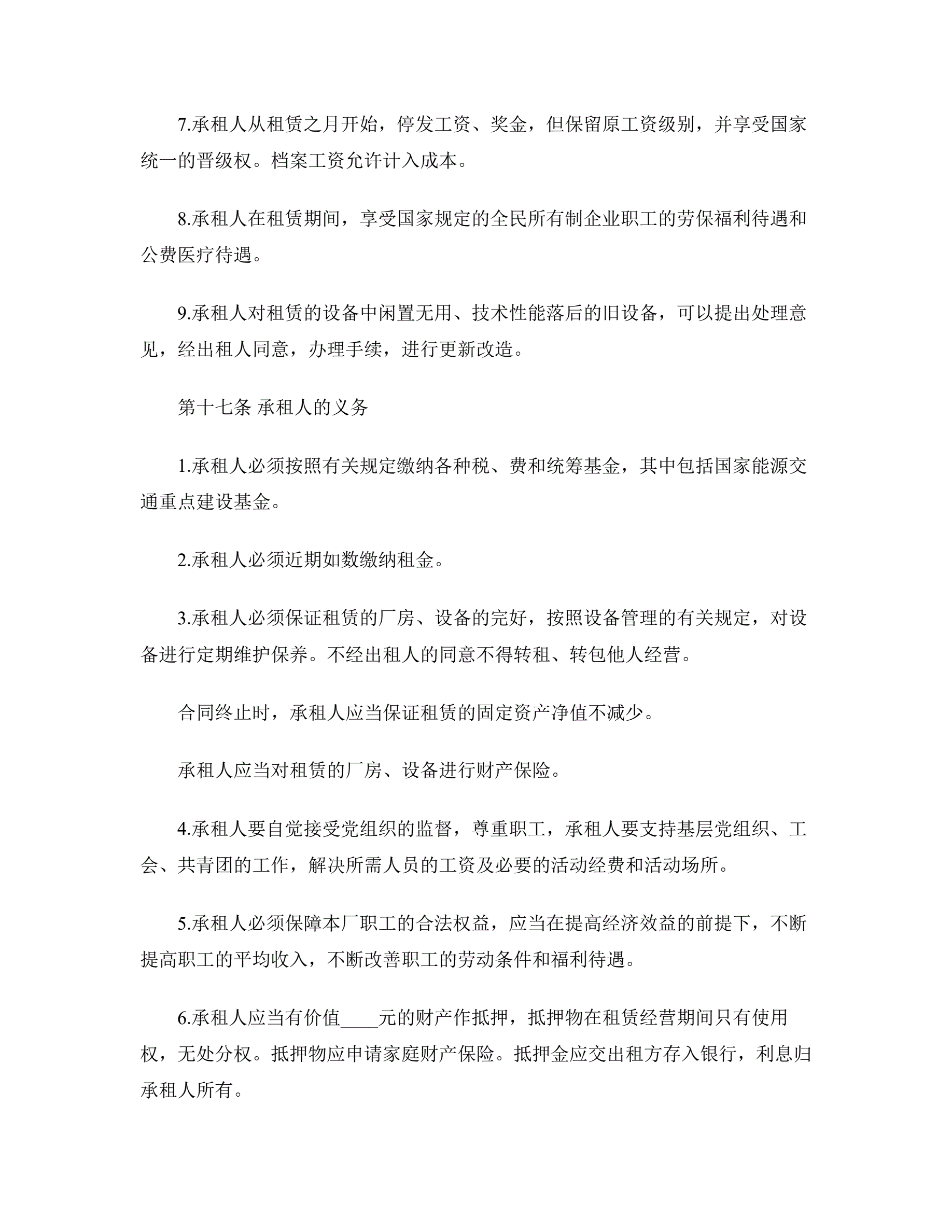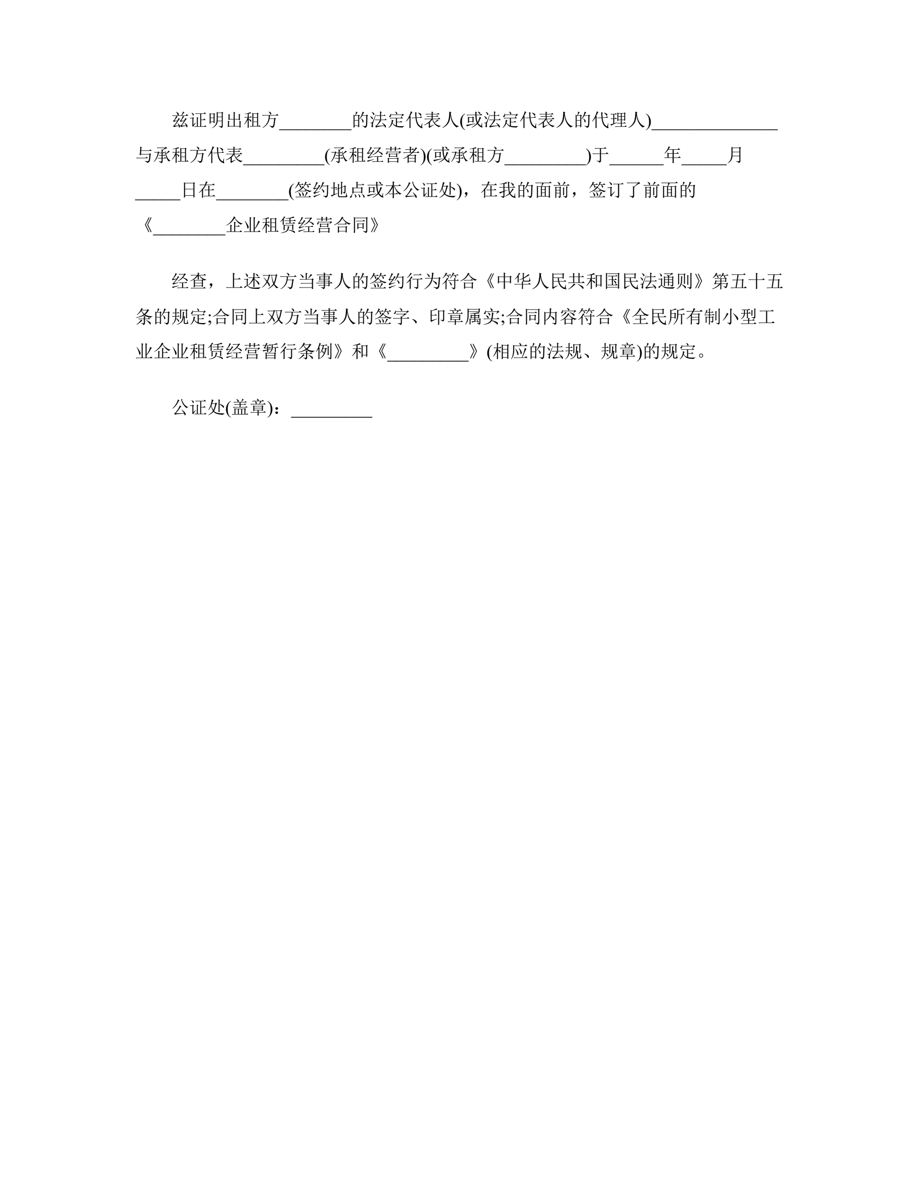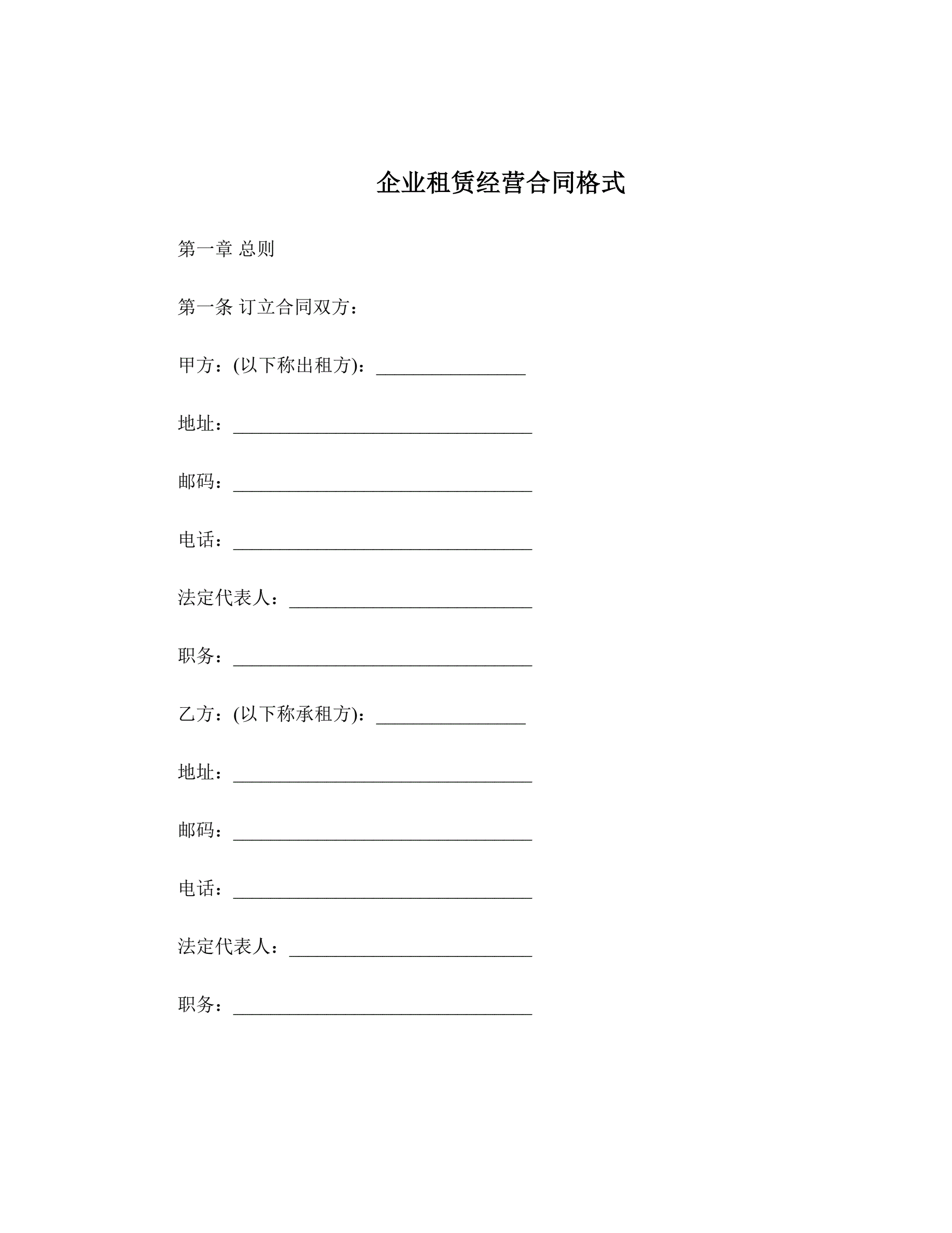 >企业租赁经营合同