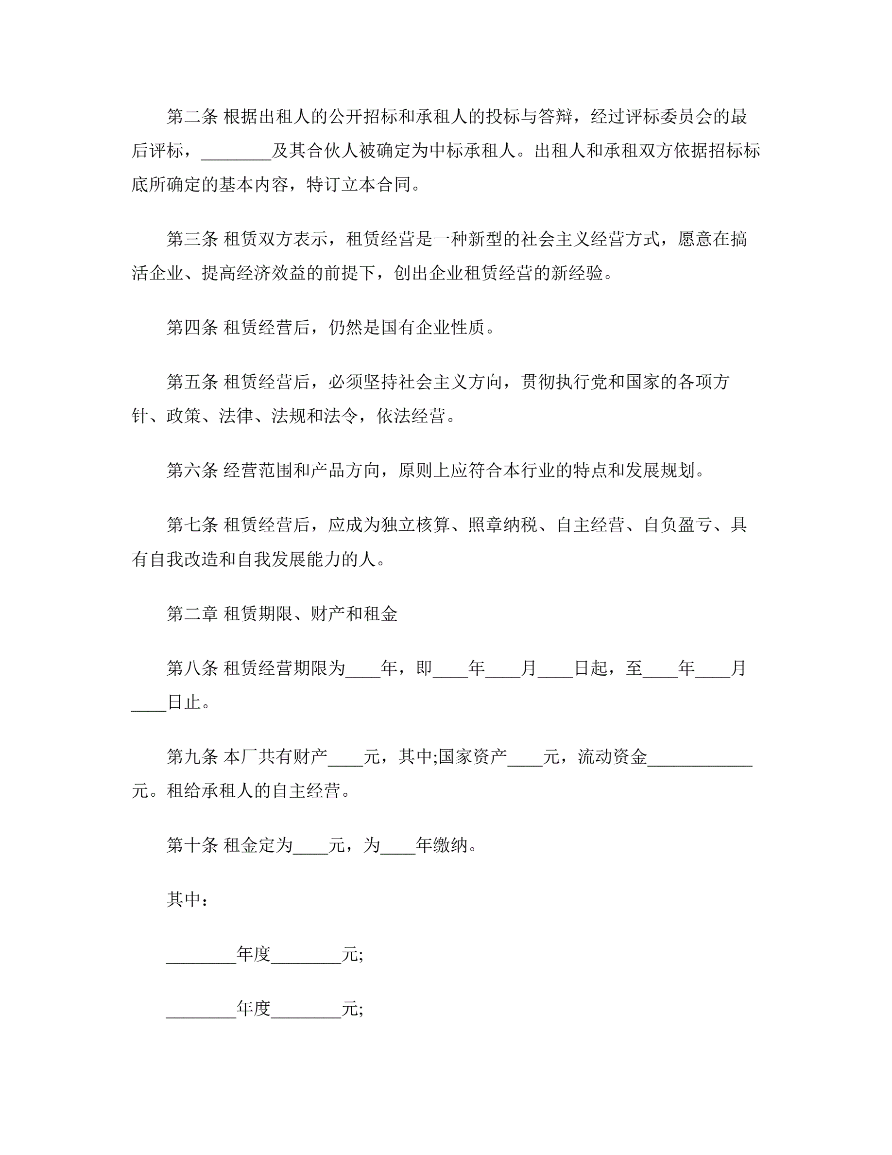 企业租赁经营合同