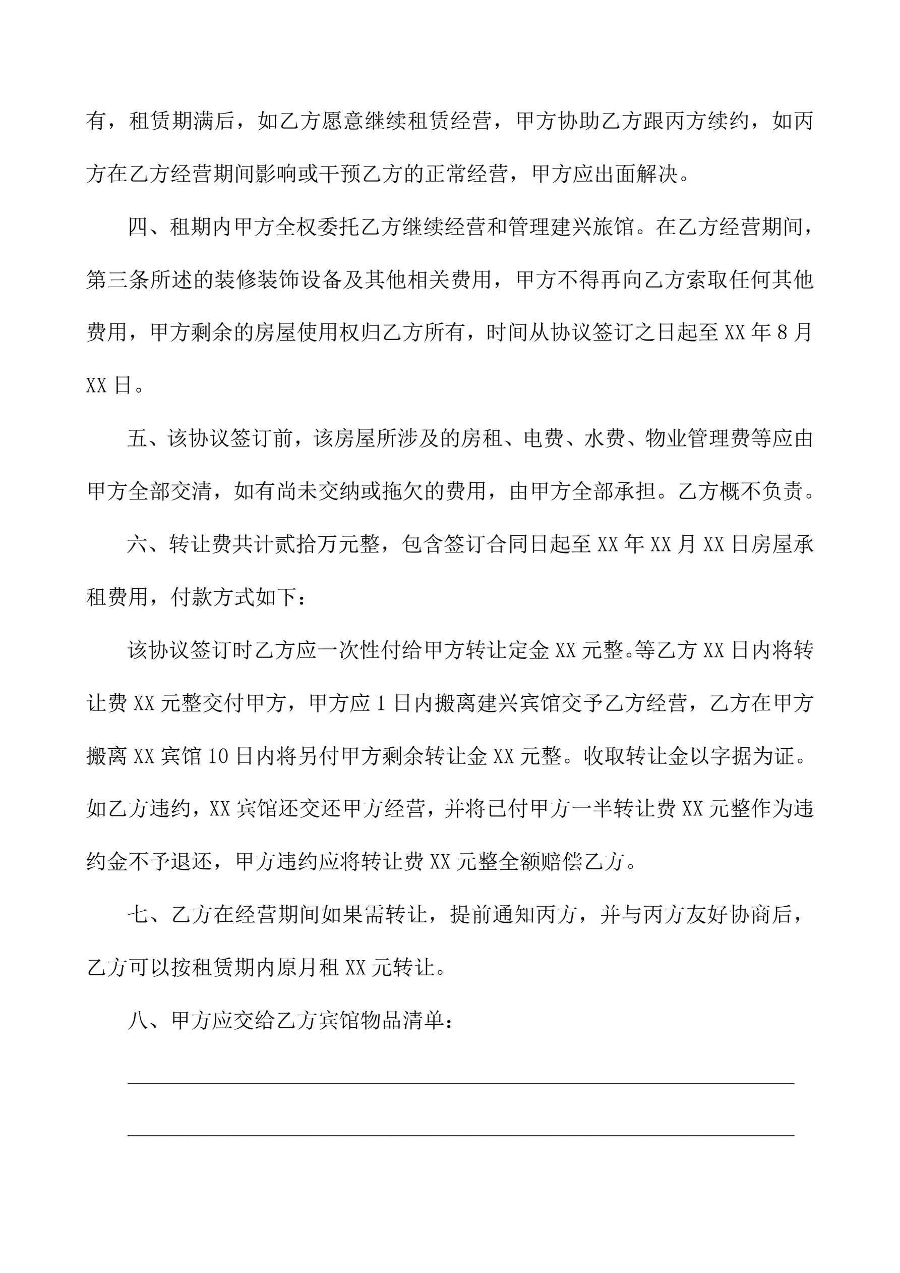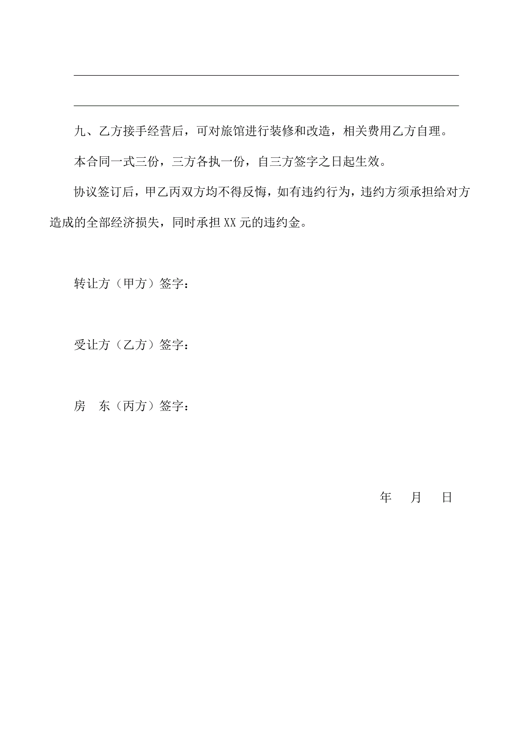 旅馆转让协议书