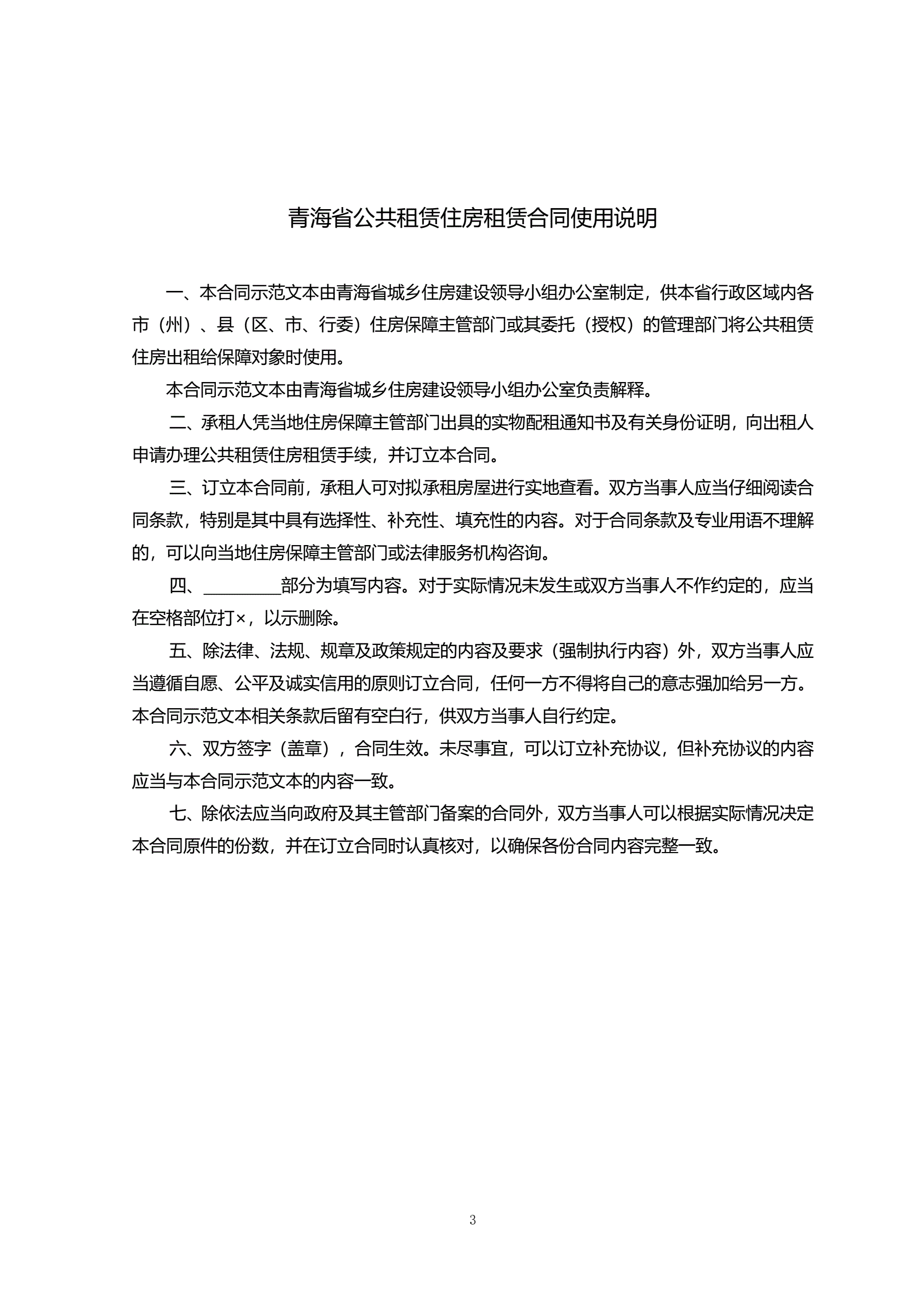 青海市场监管局参与制定-青海省公共租赁住房租赁合同