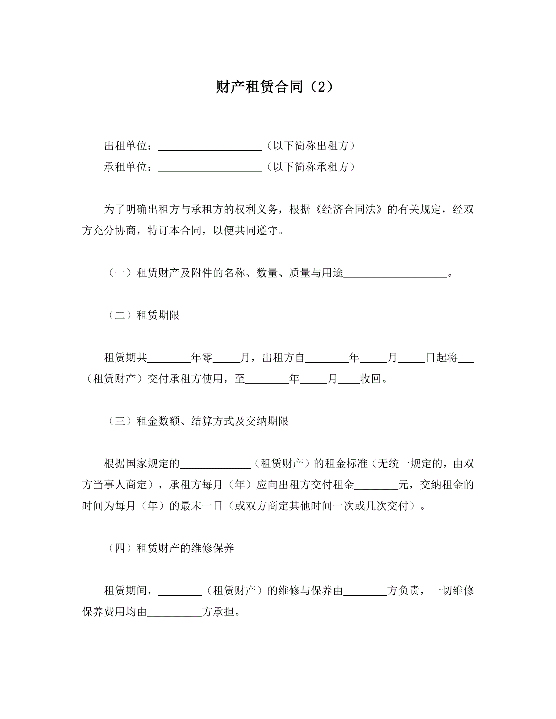 >财产租赁合同(2)