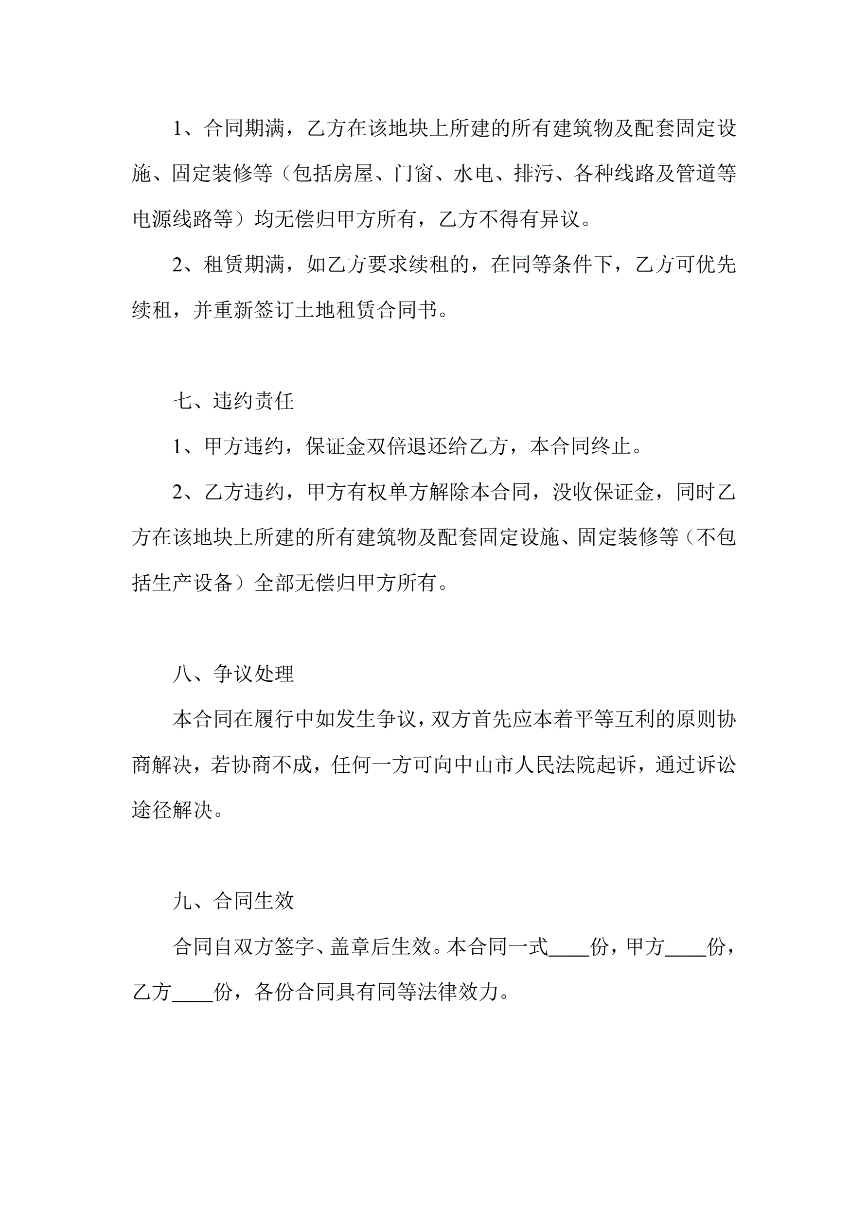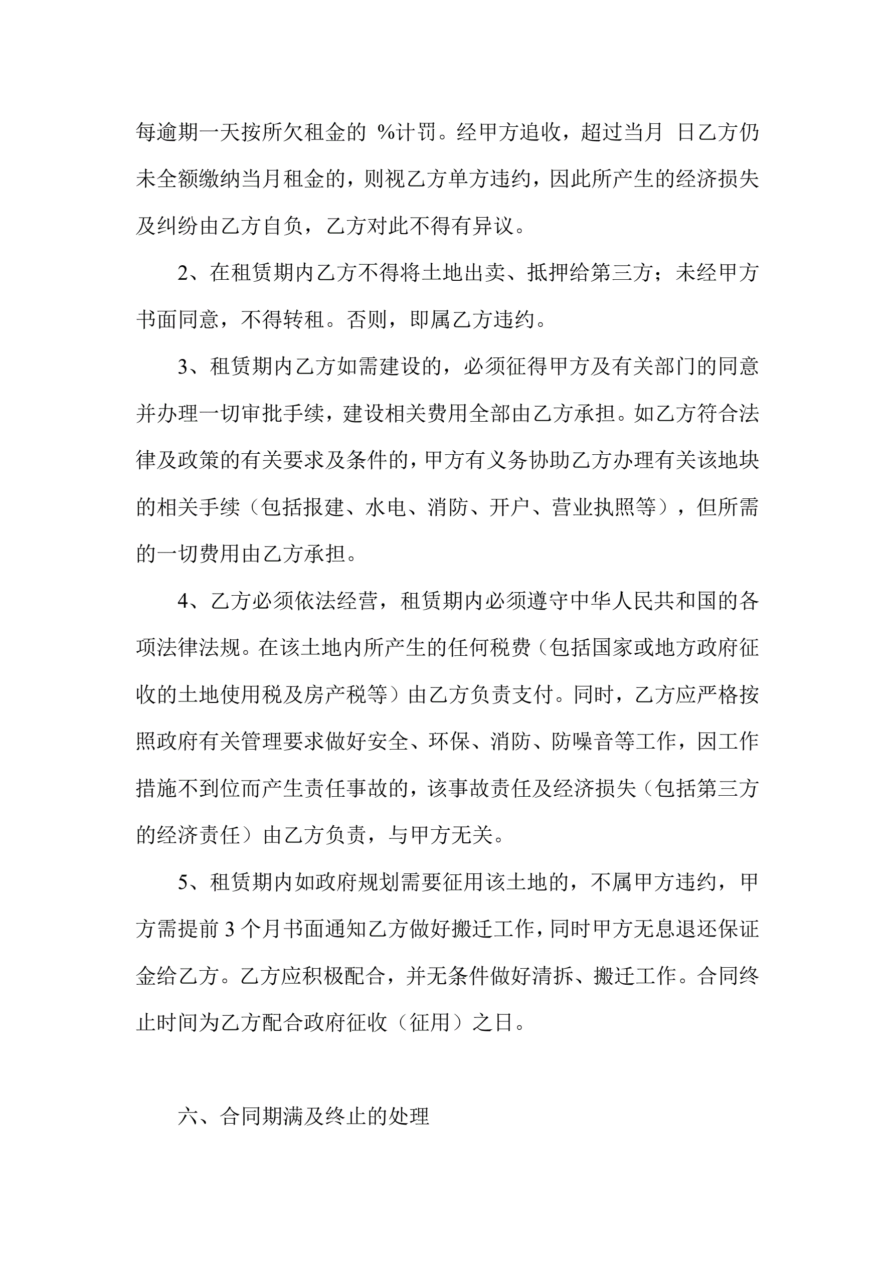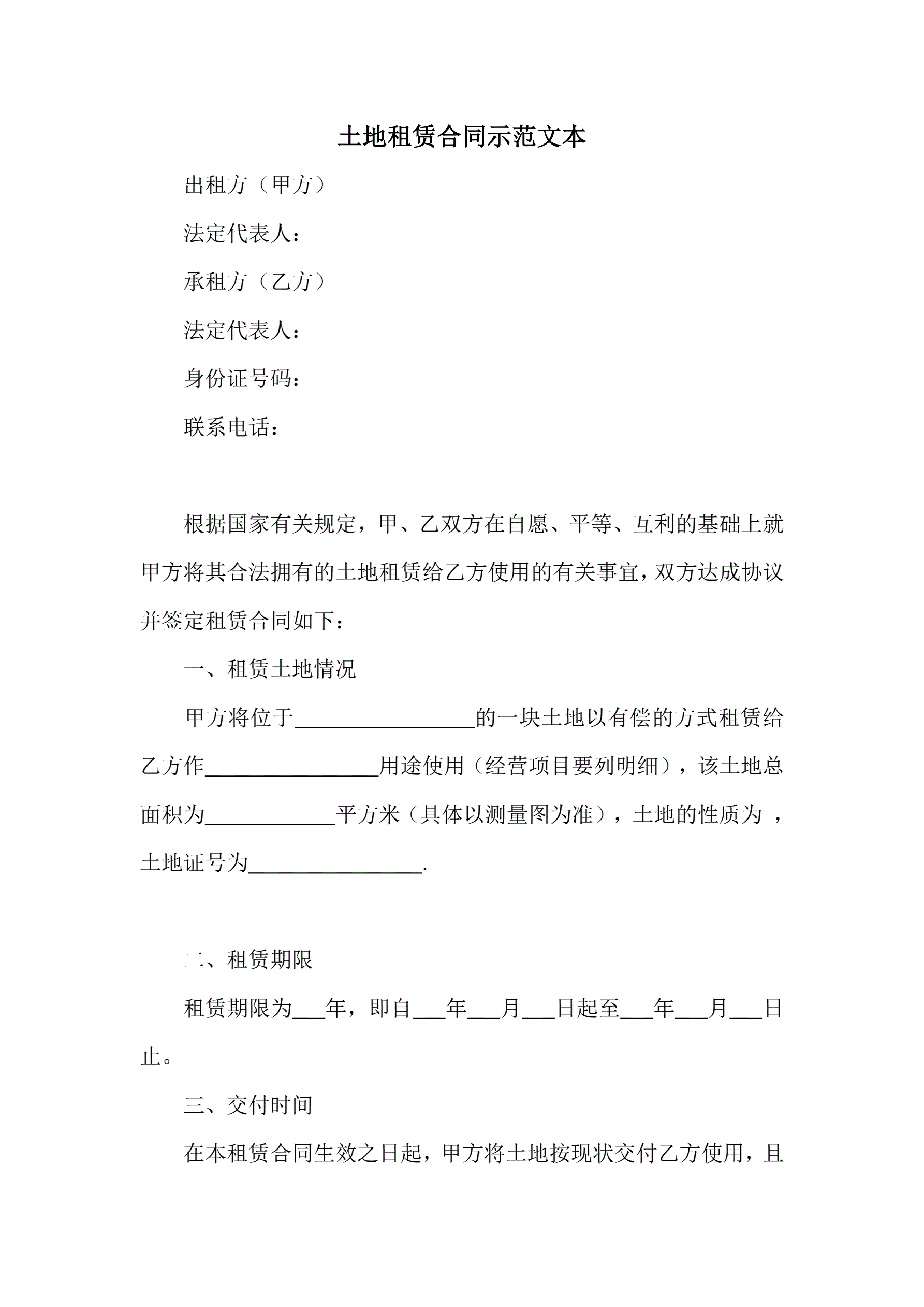 土地租赁合同示范文本