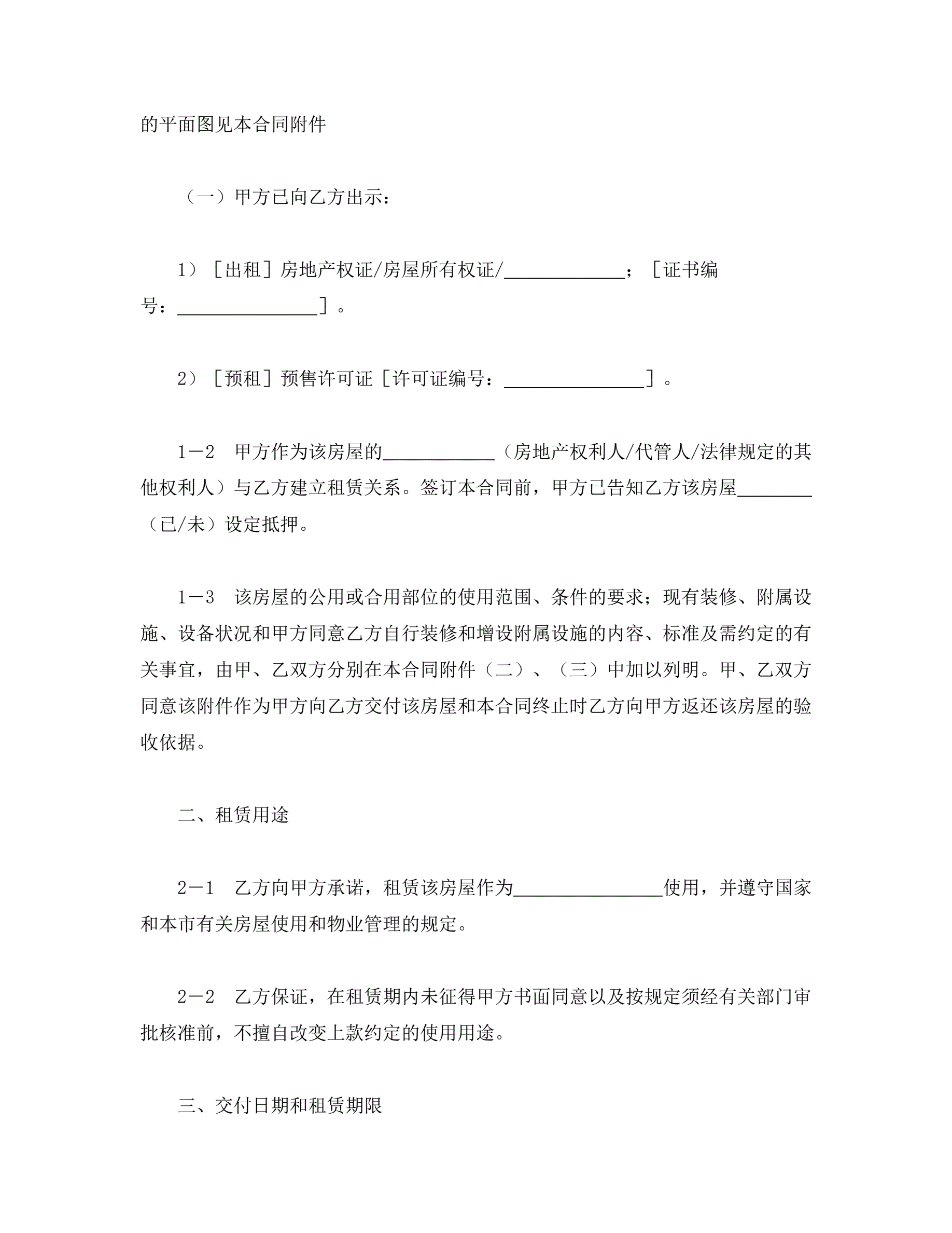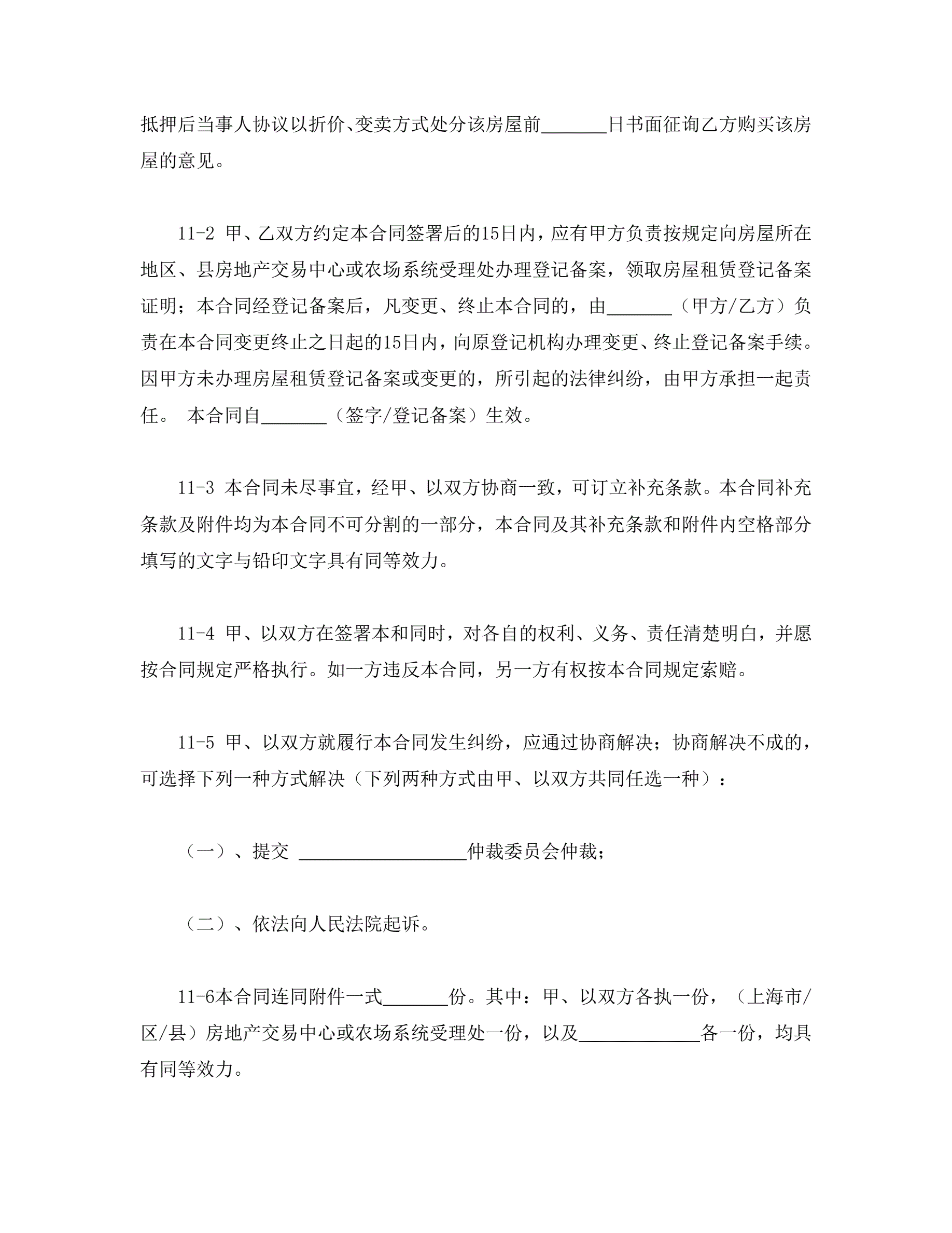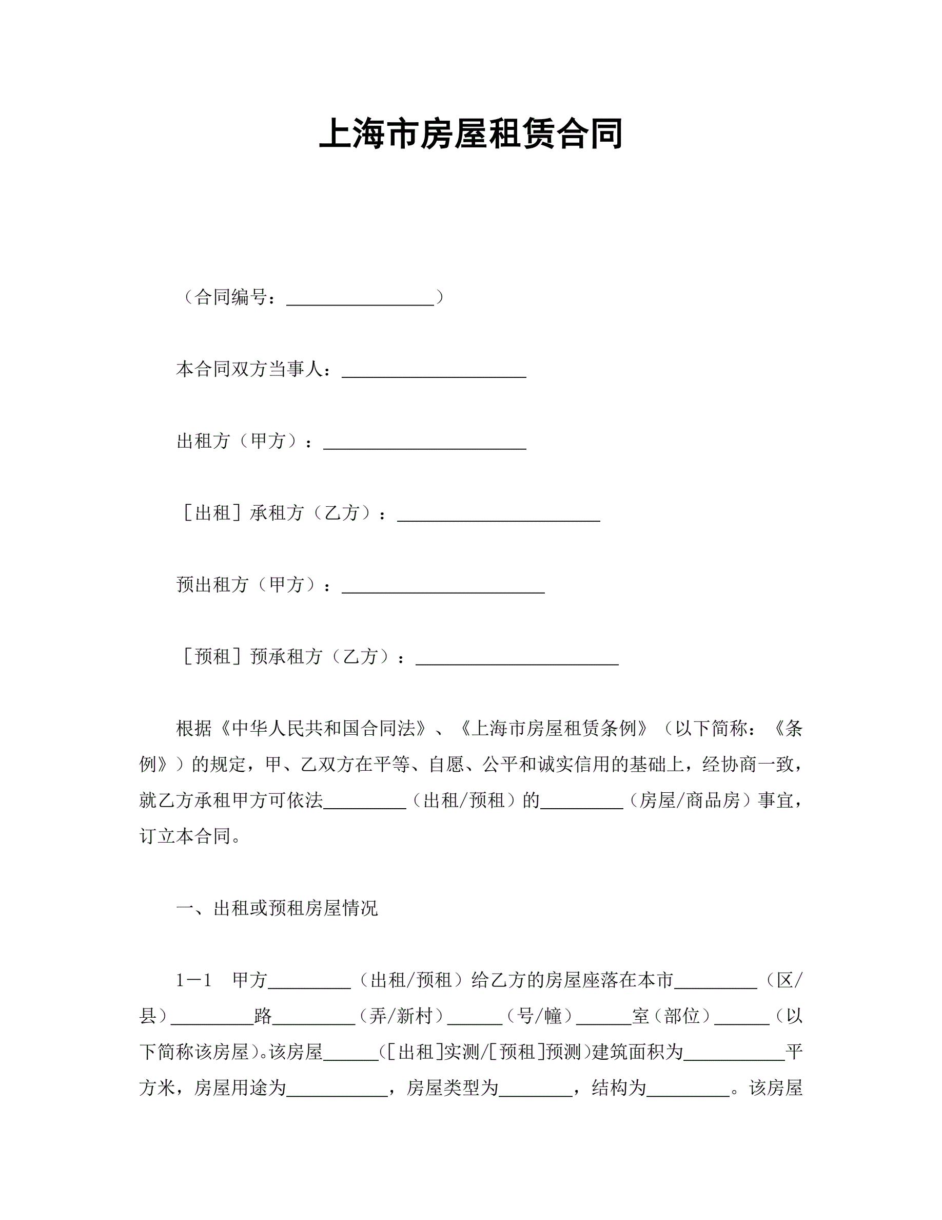 上海市房屋租赁合同