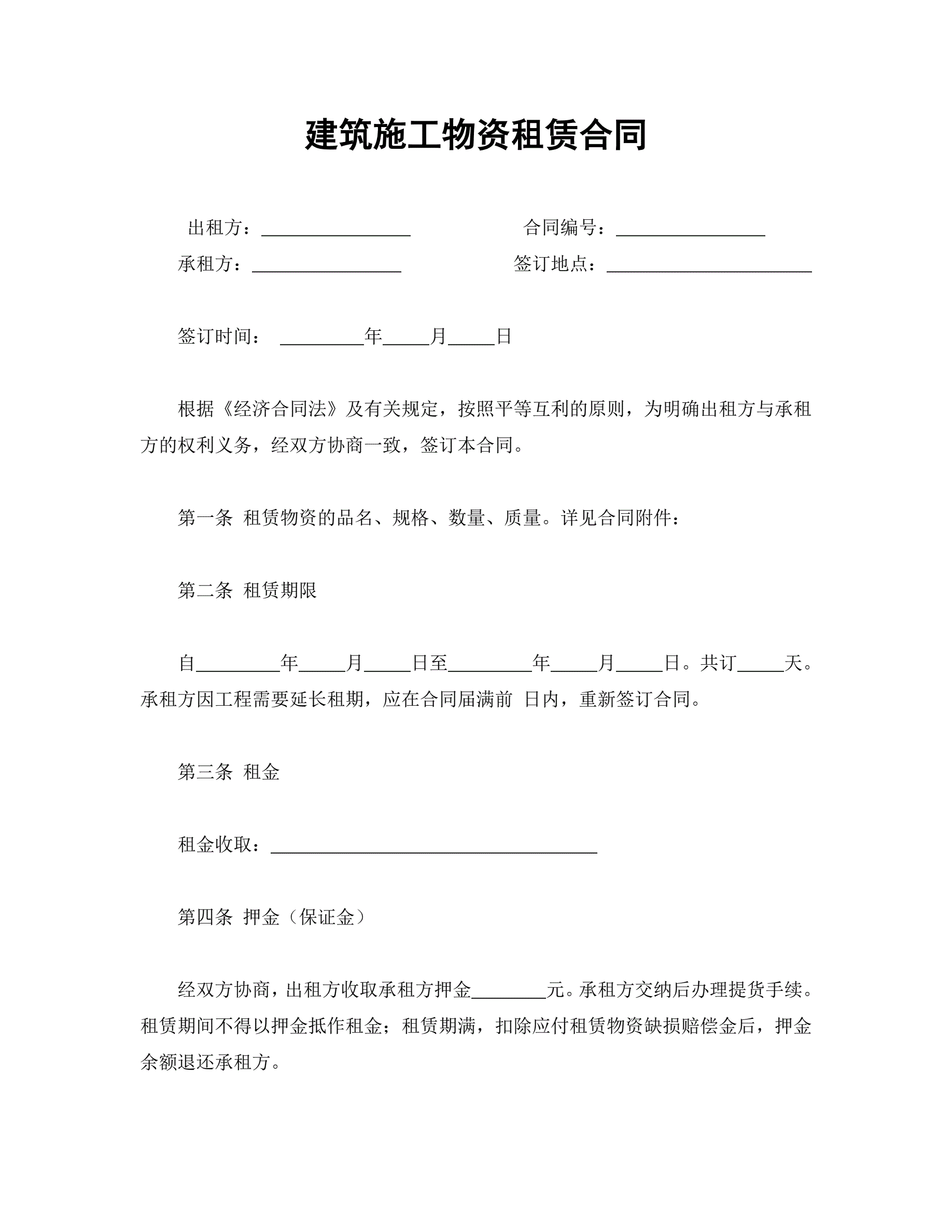 >建筑施工物资租赁合同