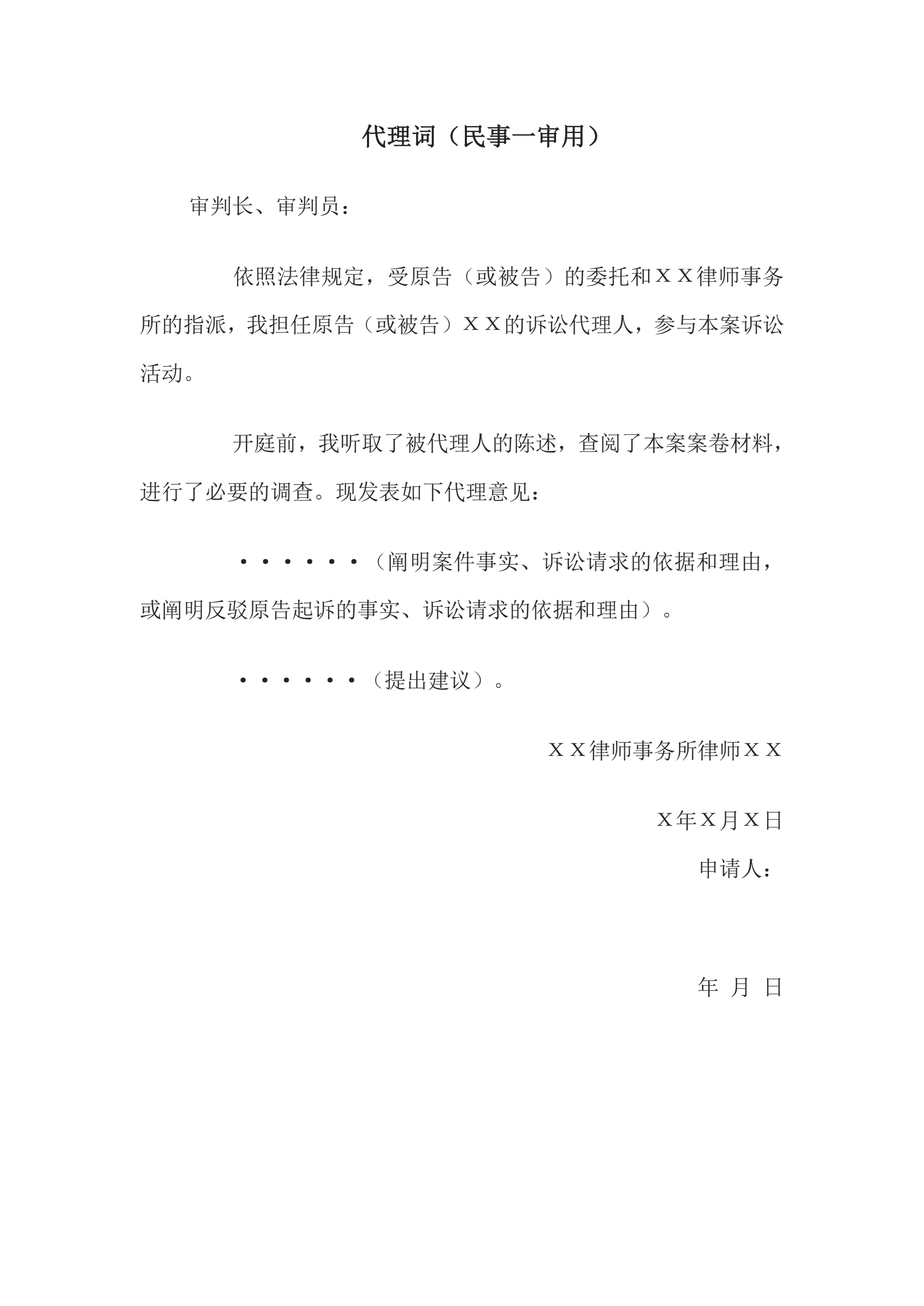 代理词(民事一审用)