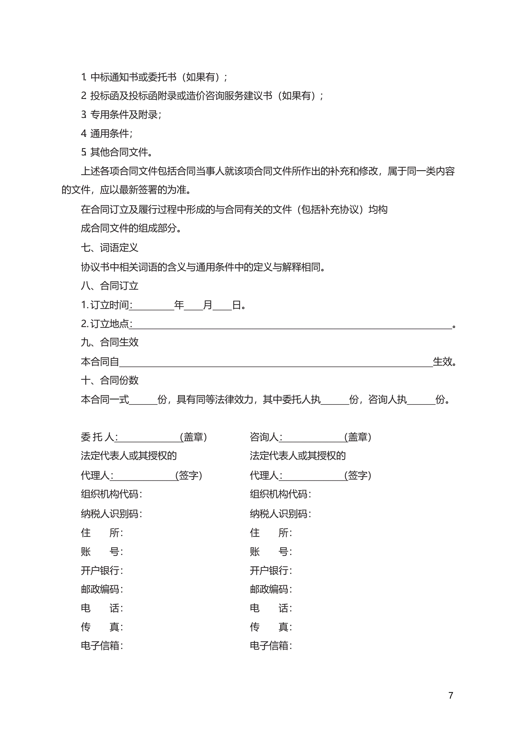 >建设工程造价咨询合同 GF—2015—0212
