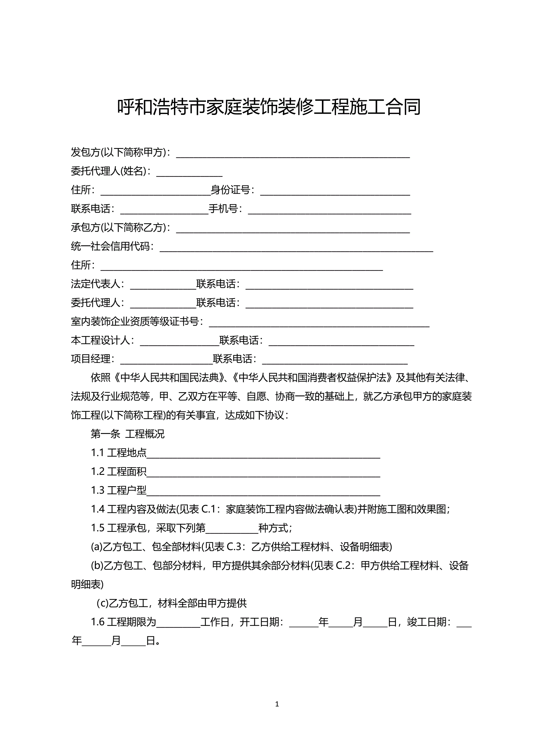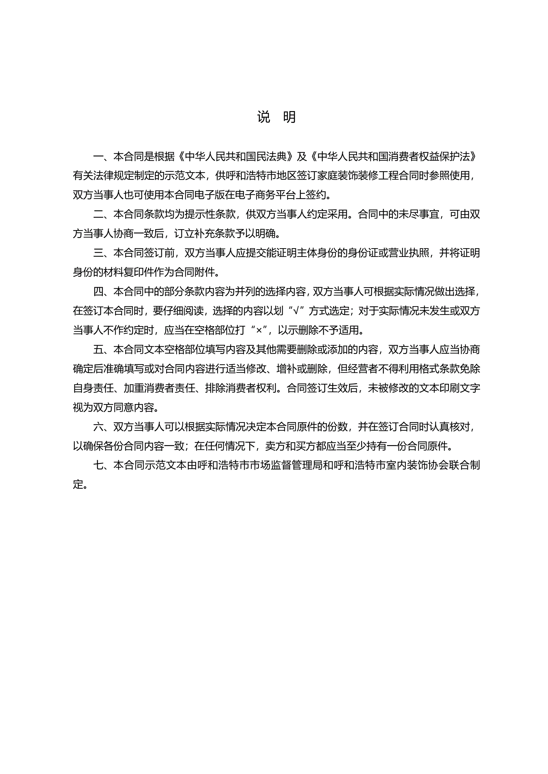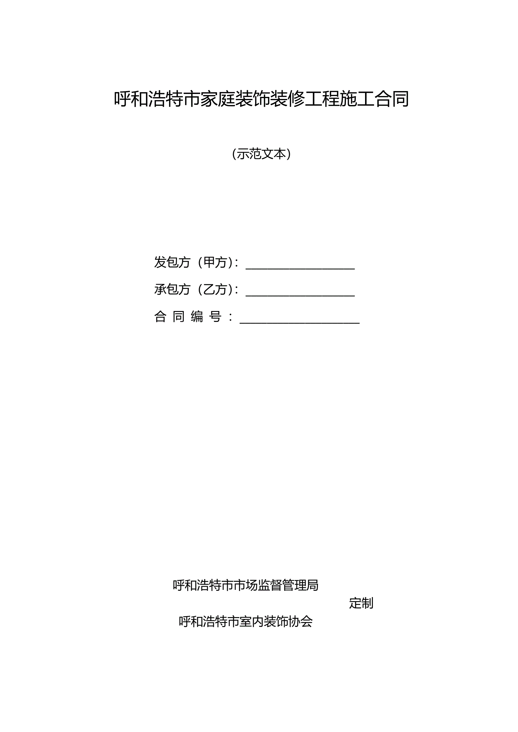 >呼和浩特市家庭装饰装修工程施工合同(示范文本)