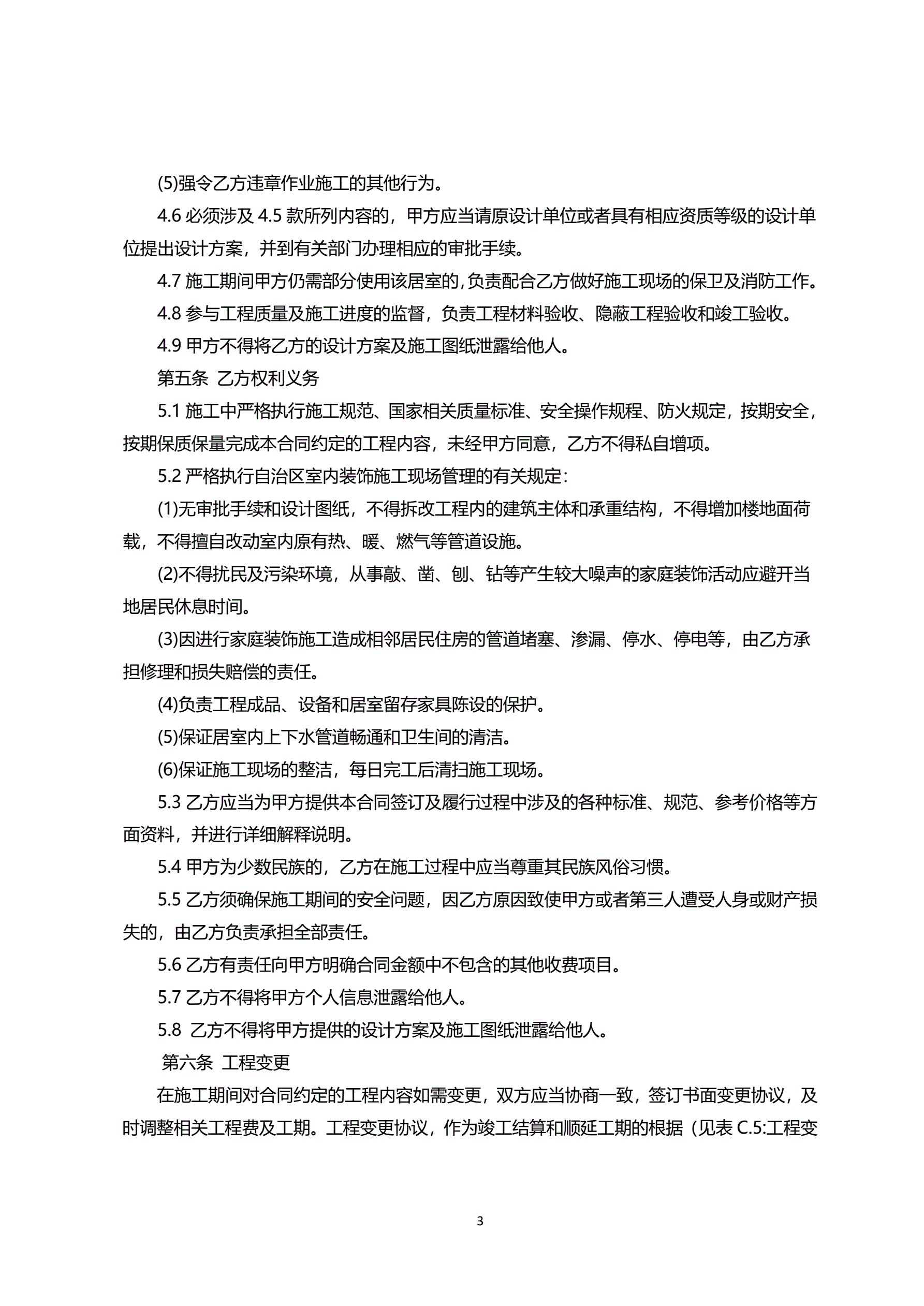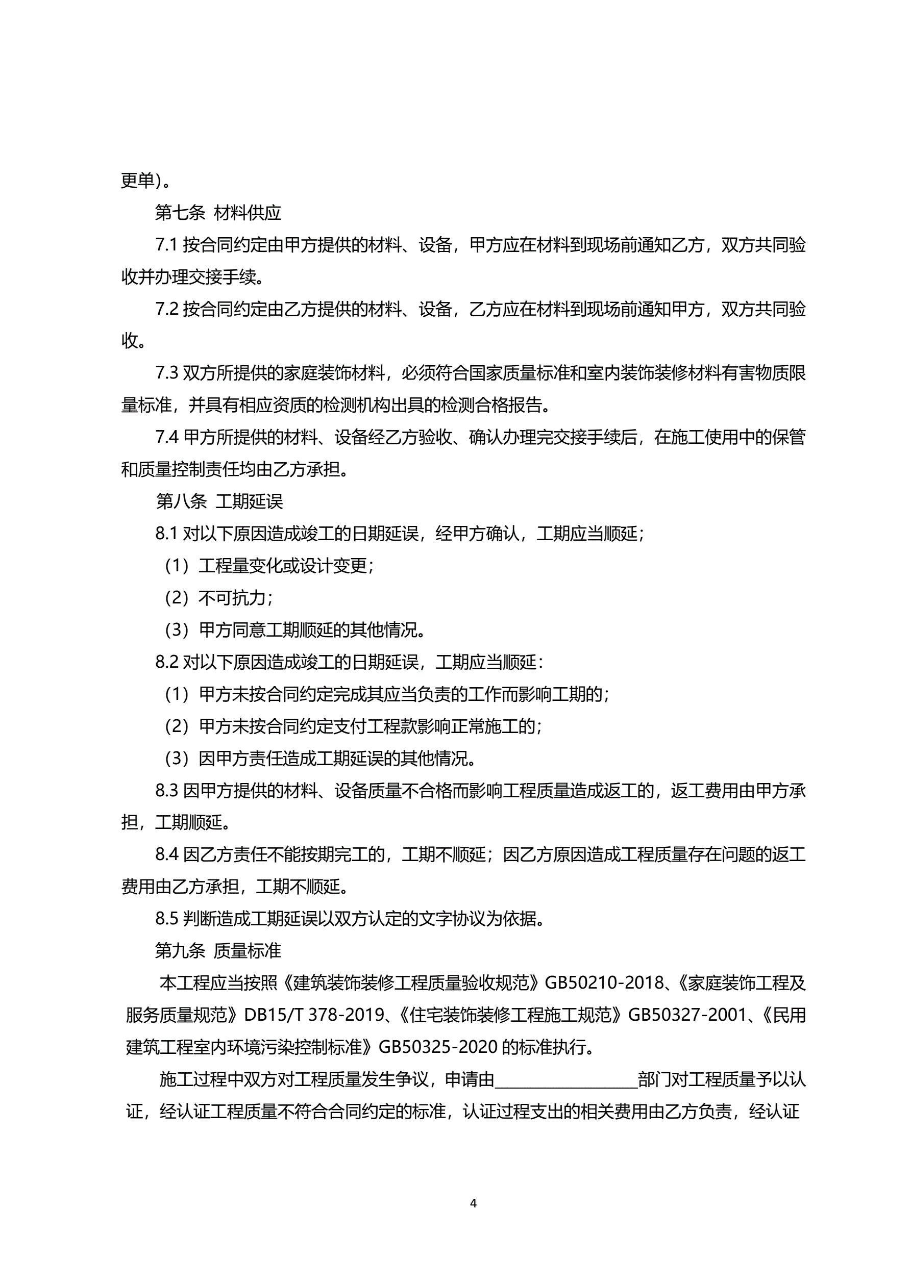 呼和浩特市家庭装饰装修工程施工合同(示范文本)