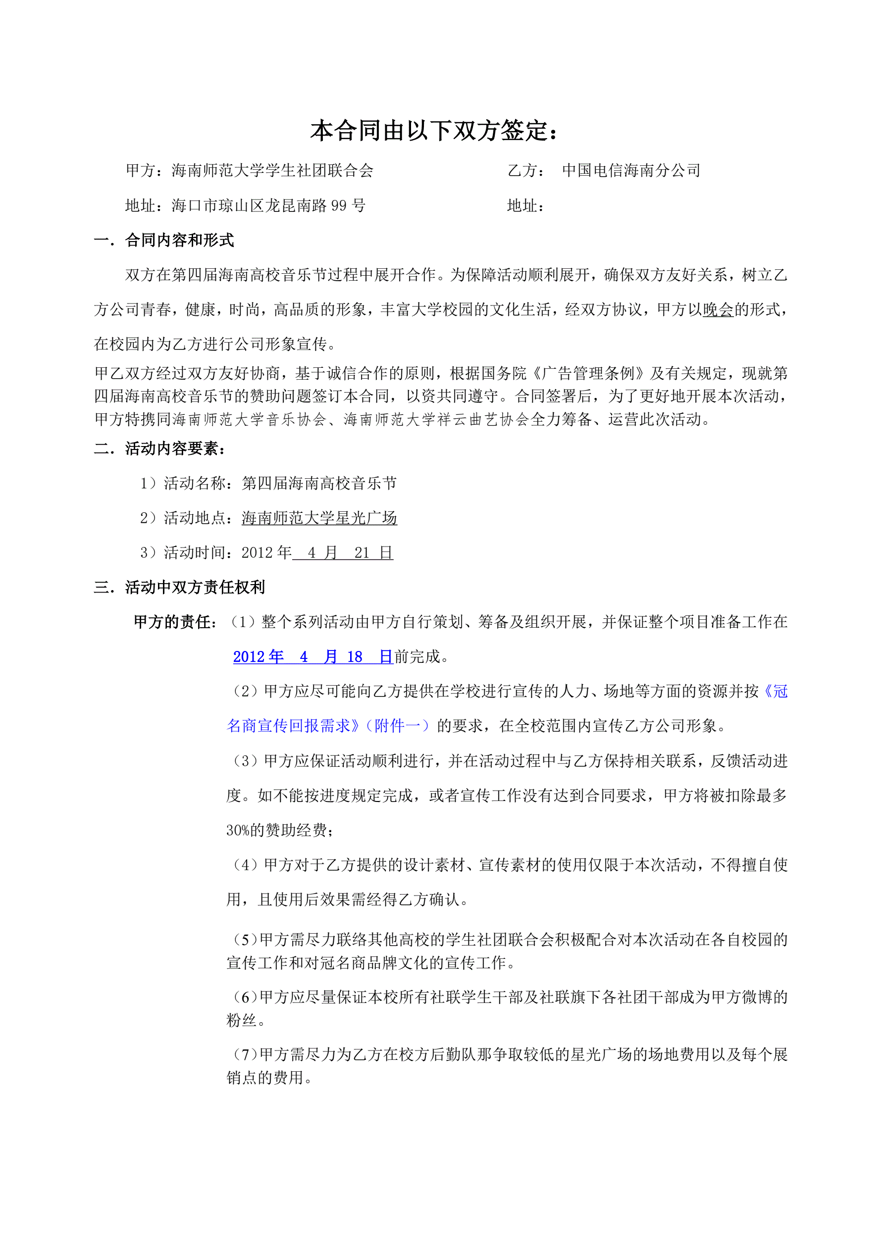 >中国电信合同书
