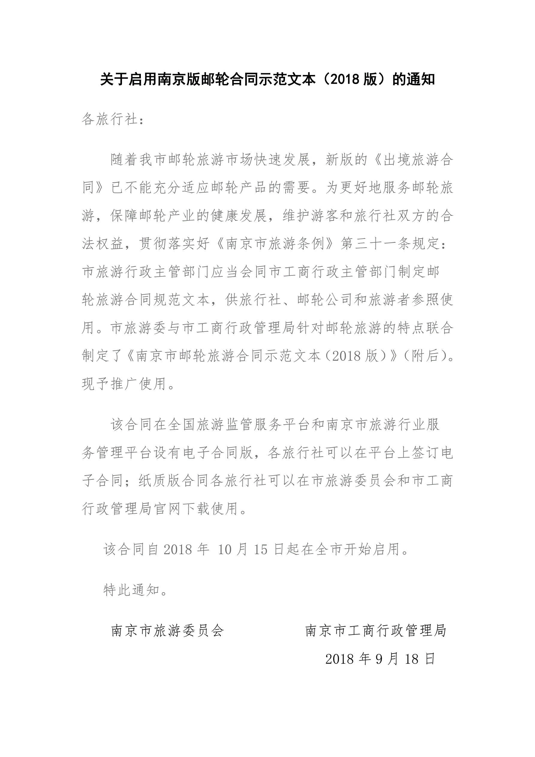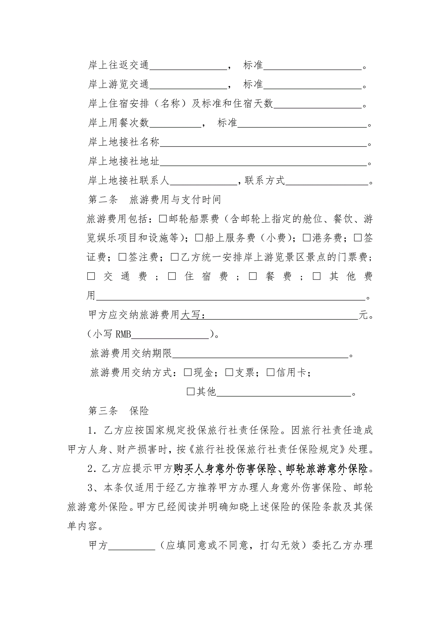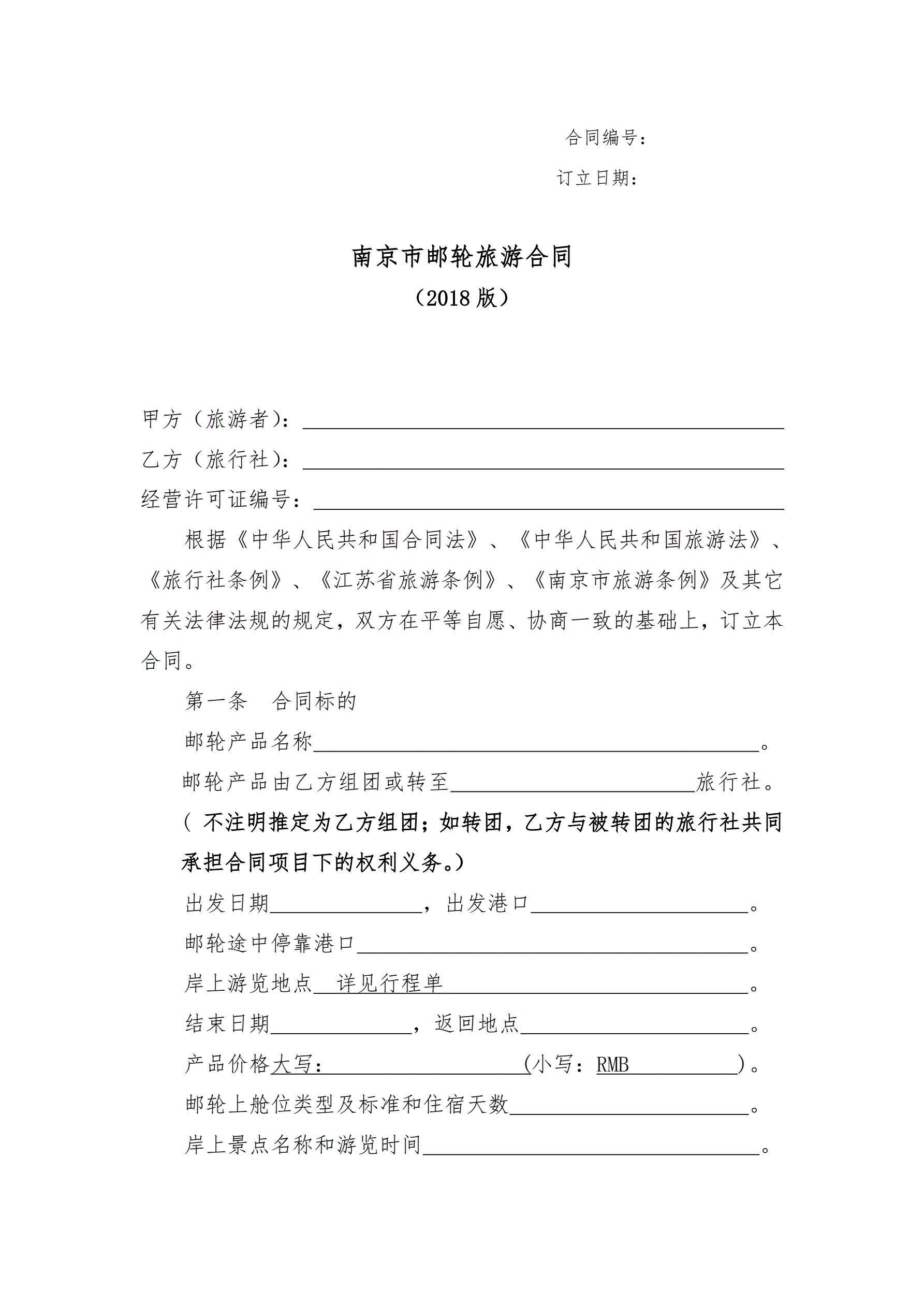 >南京市邮轮旅游合同