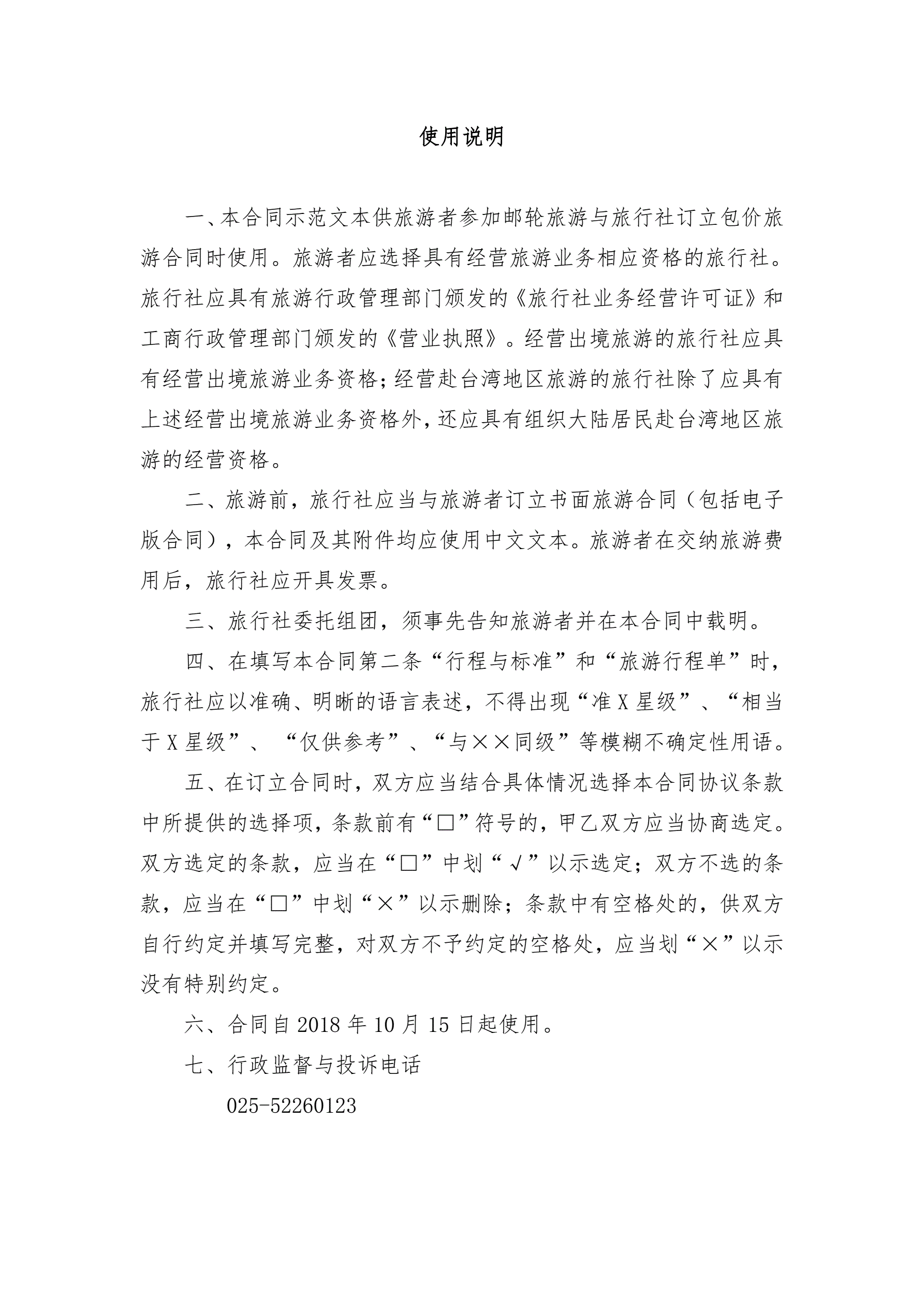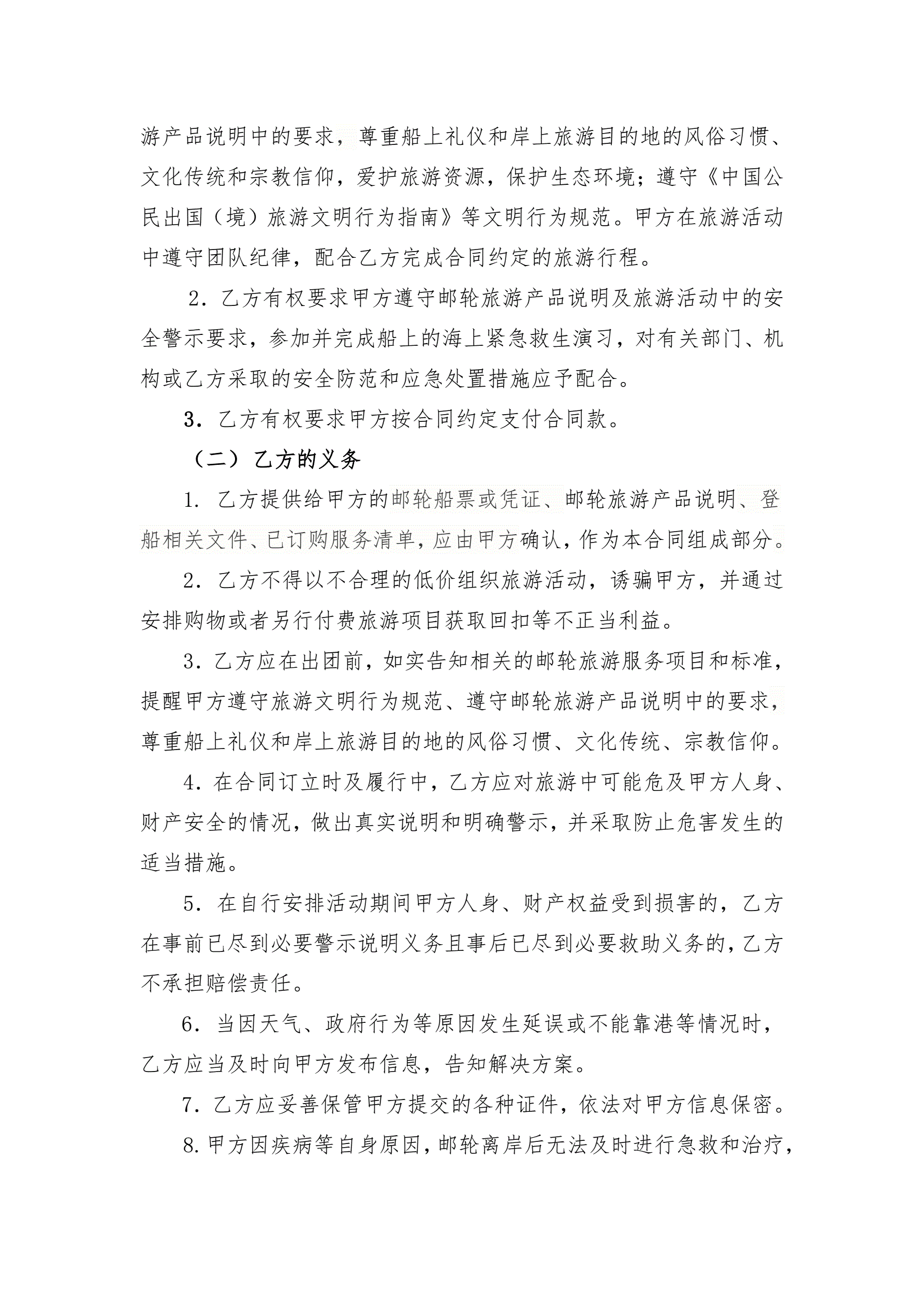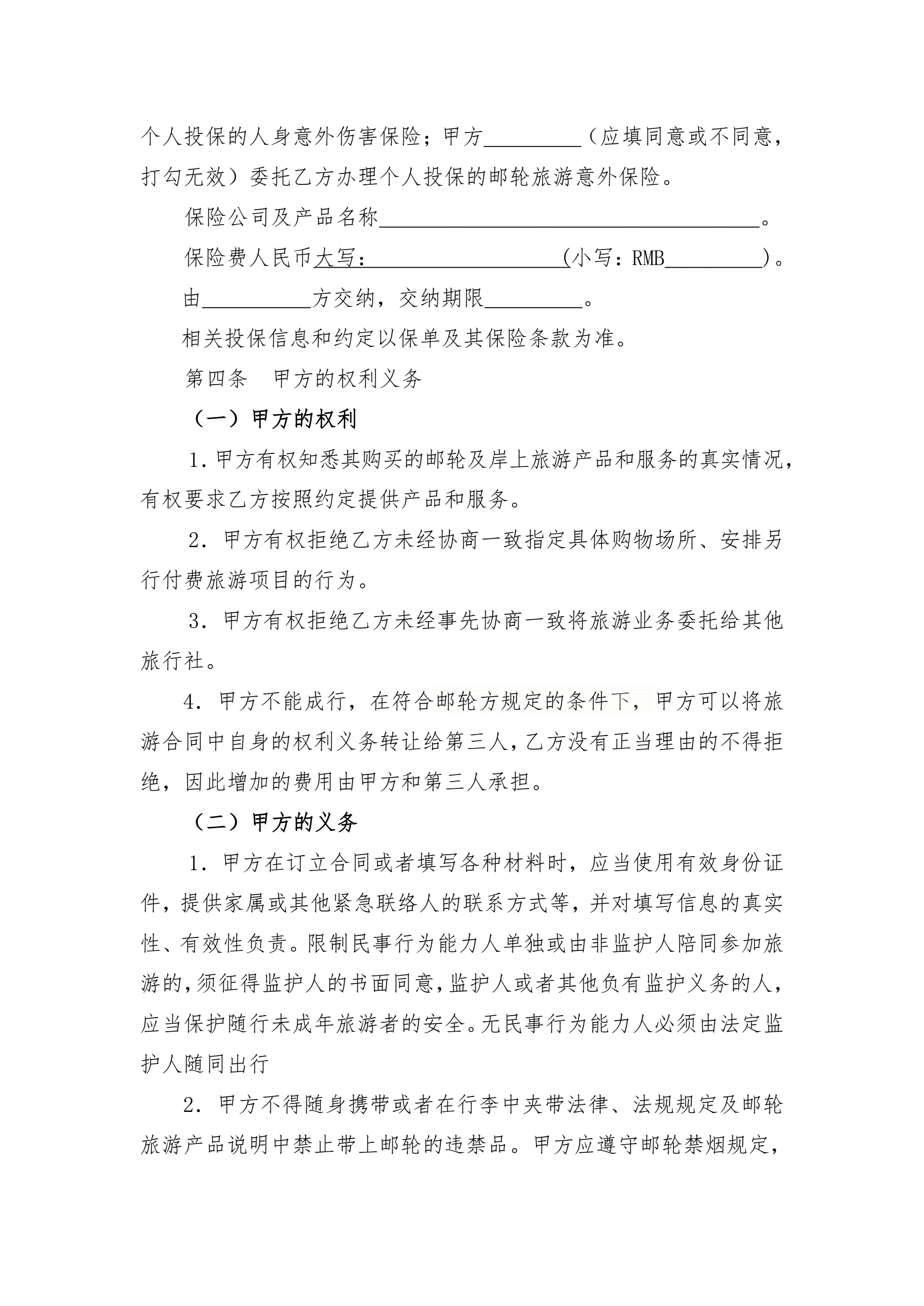 >南京市邮轮旅游合同