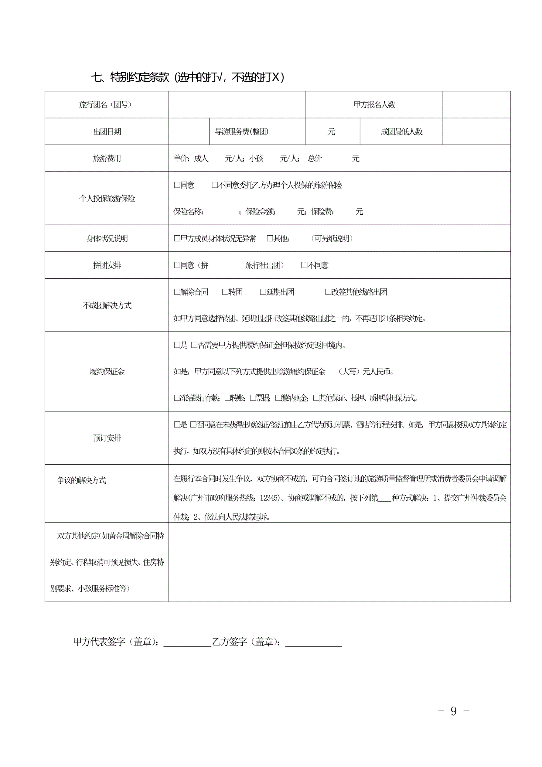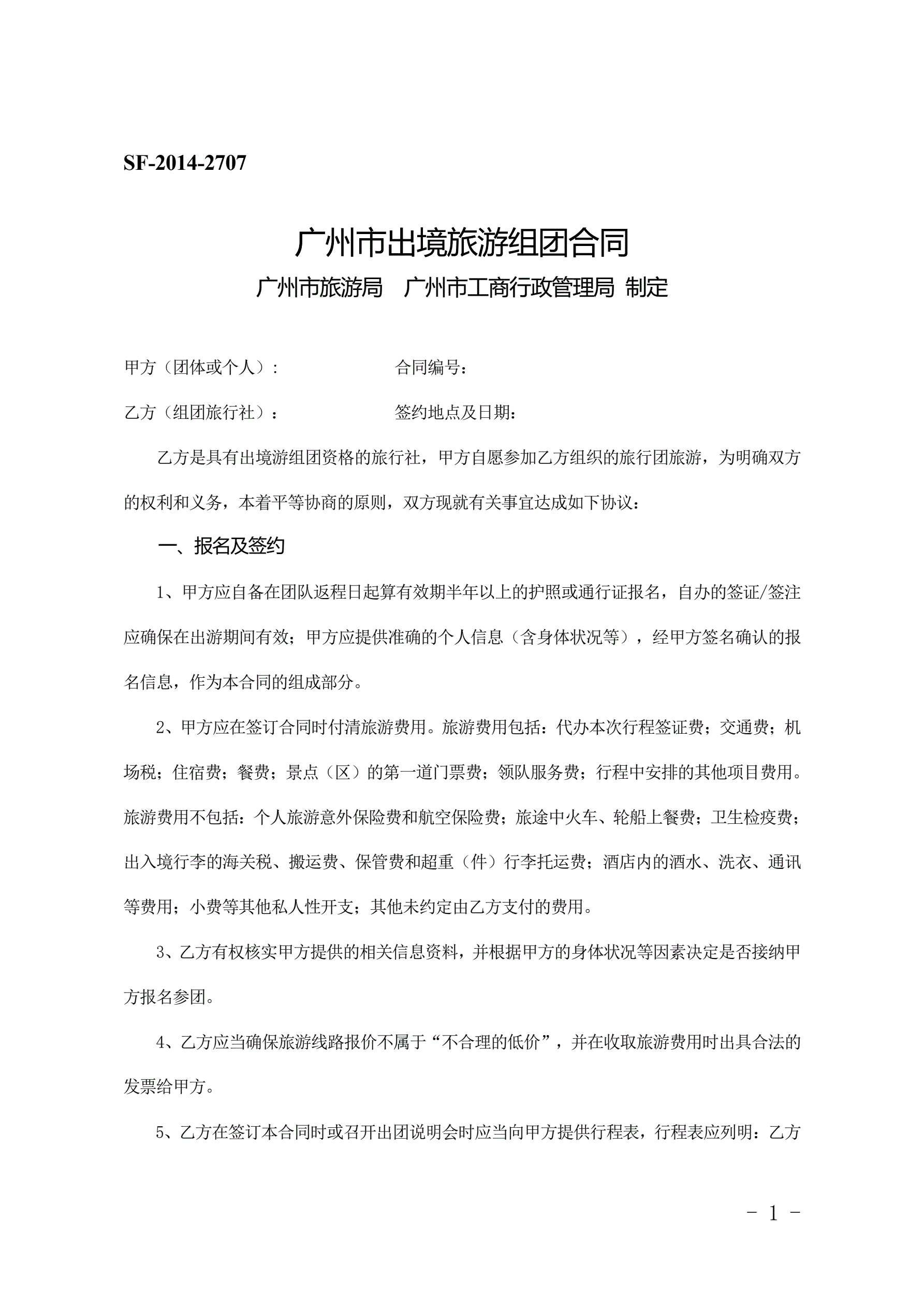 >广州市出境旅游组团合同(2014版)