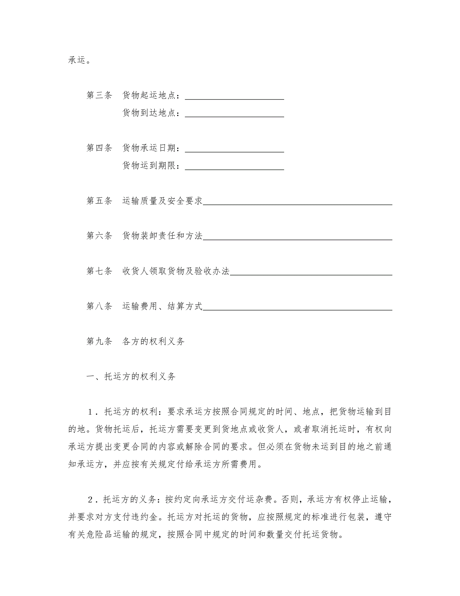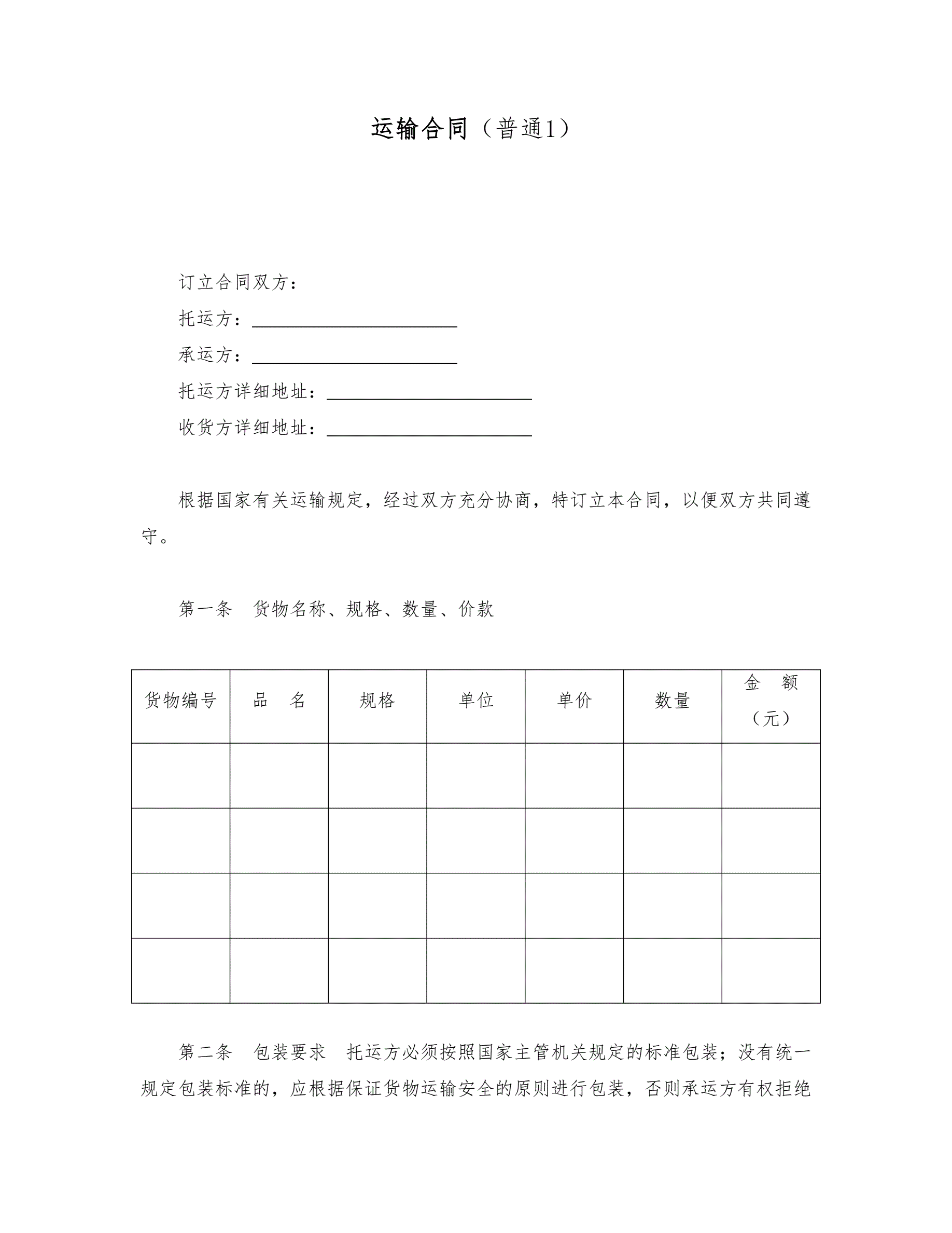 >运输合同(普通1)