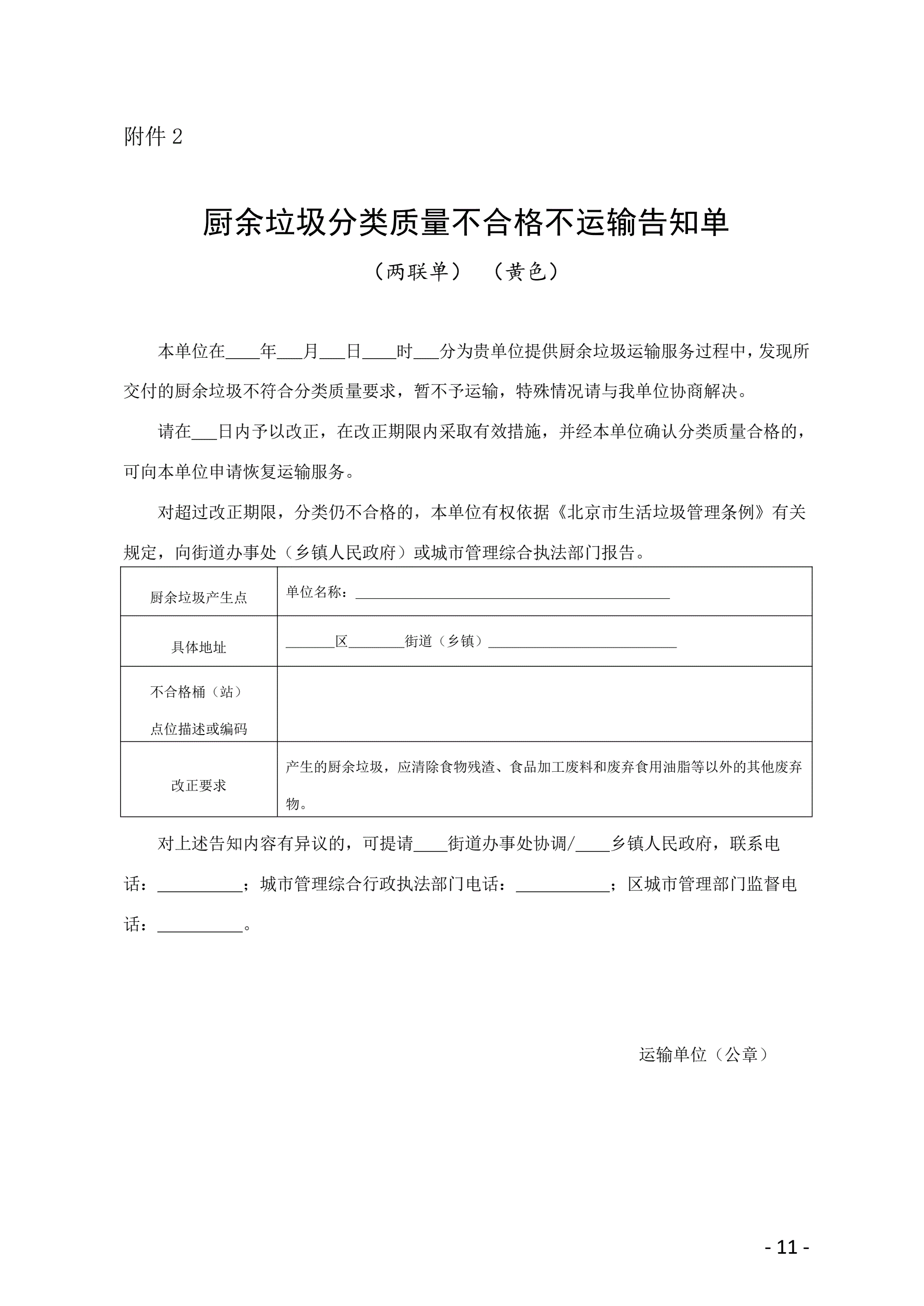 北京市非居民单位厨余垃圾运输服务合同(BF—2021—2721)