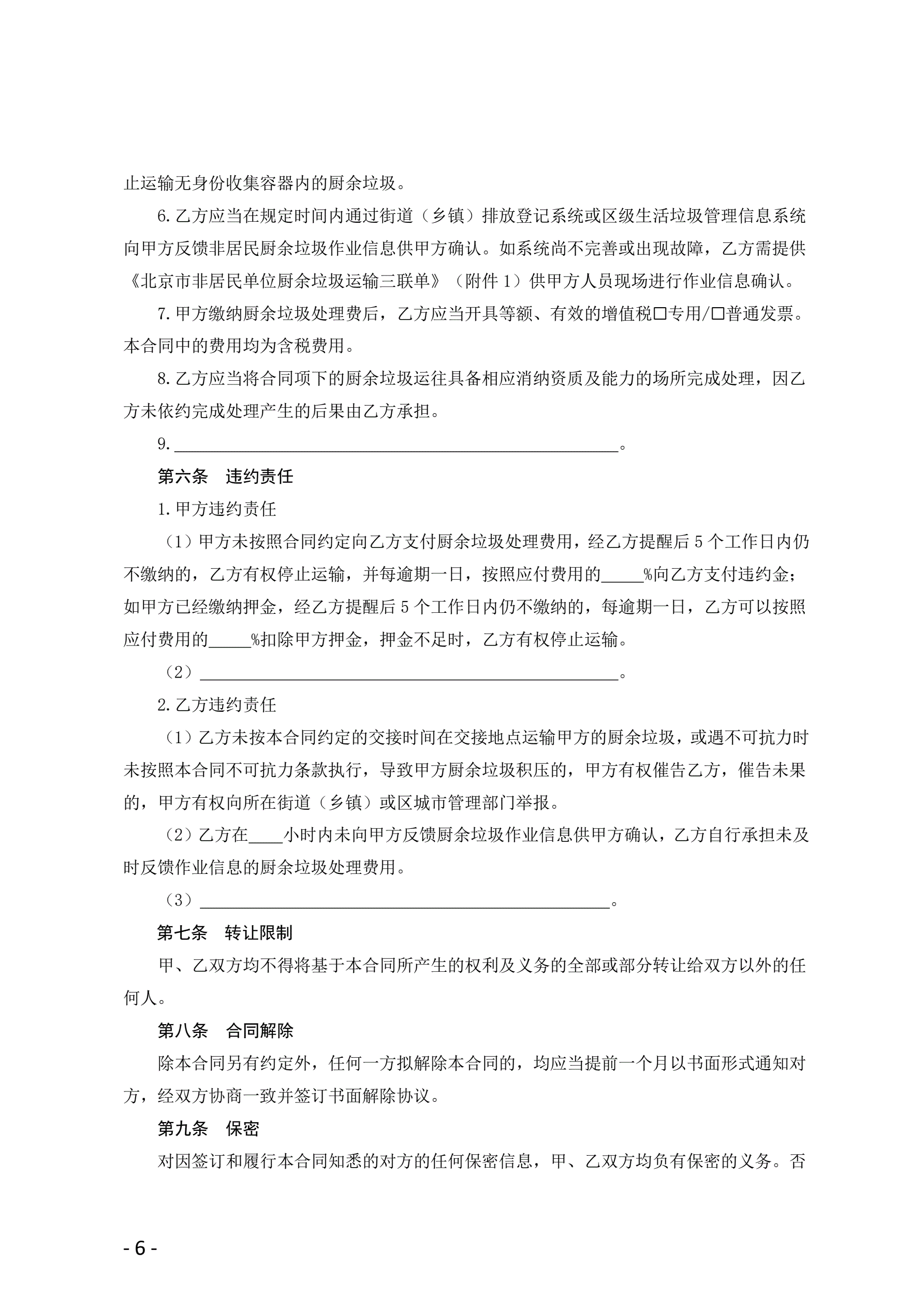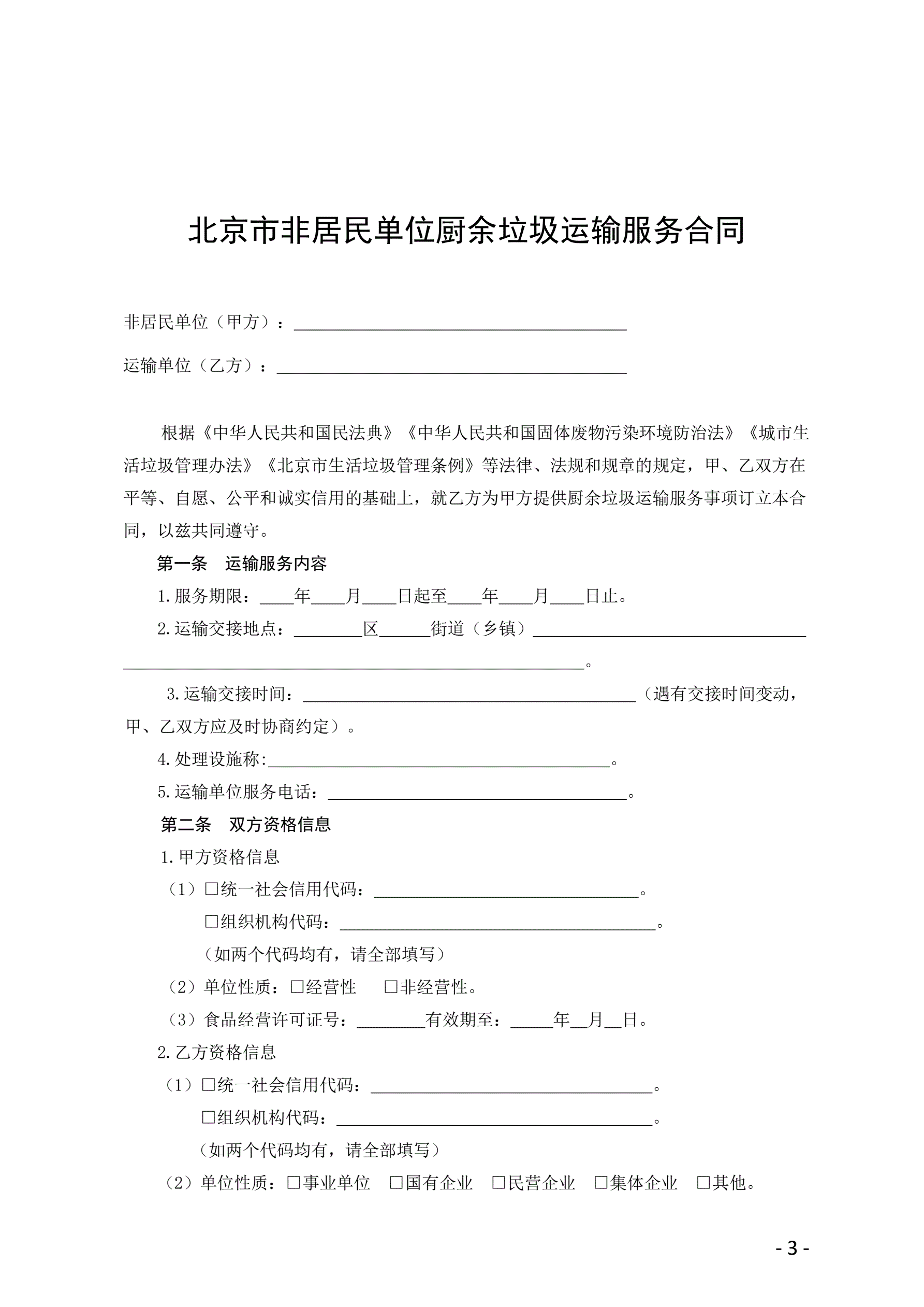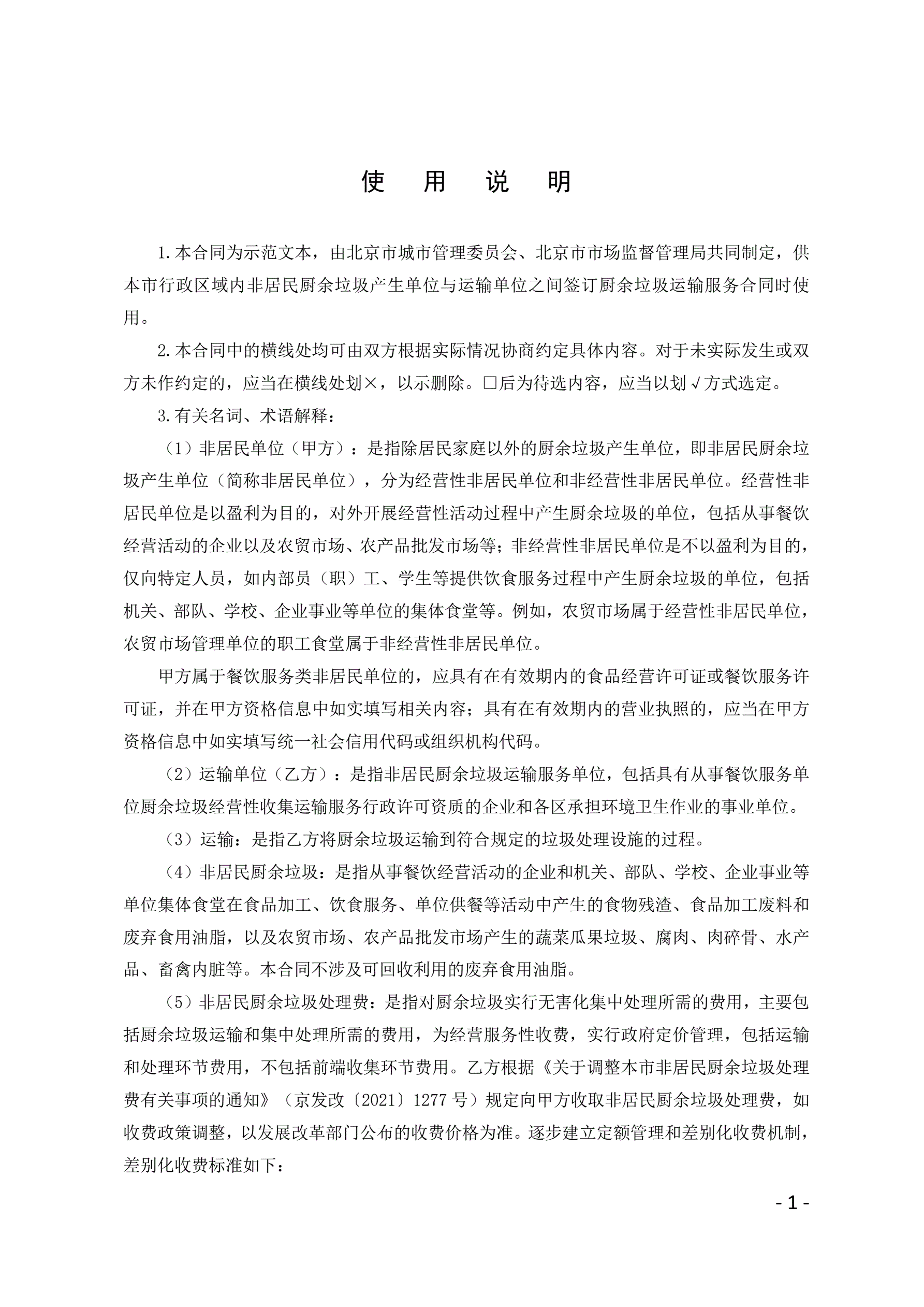 >北京市非居民单位厨余垃圾运输服务合同(BF—2021—2721)
