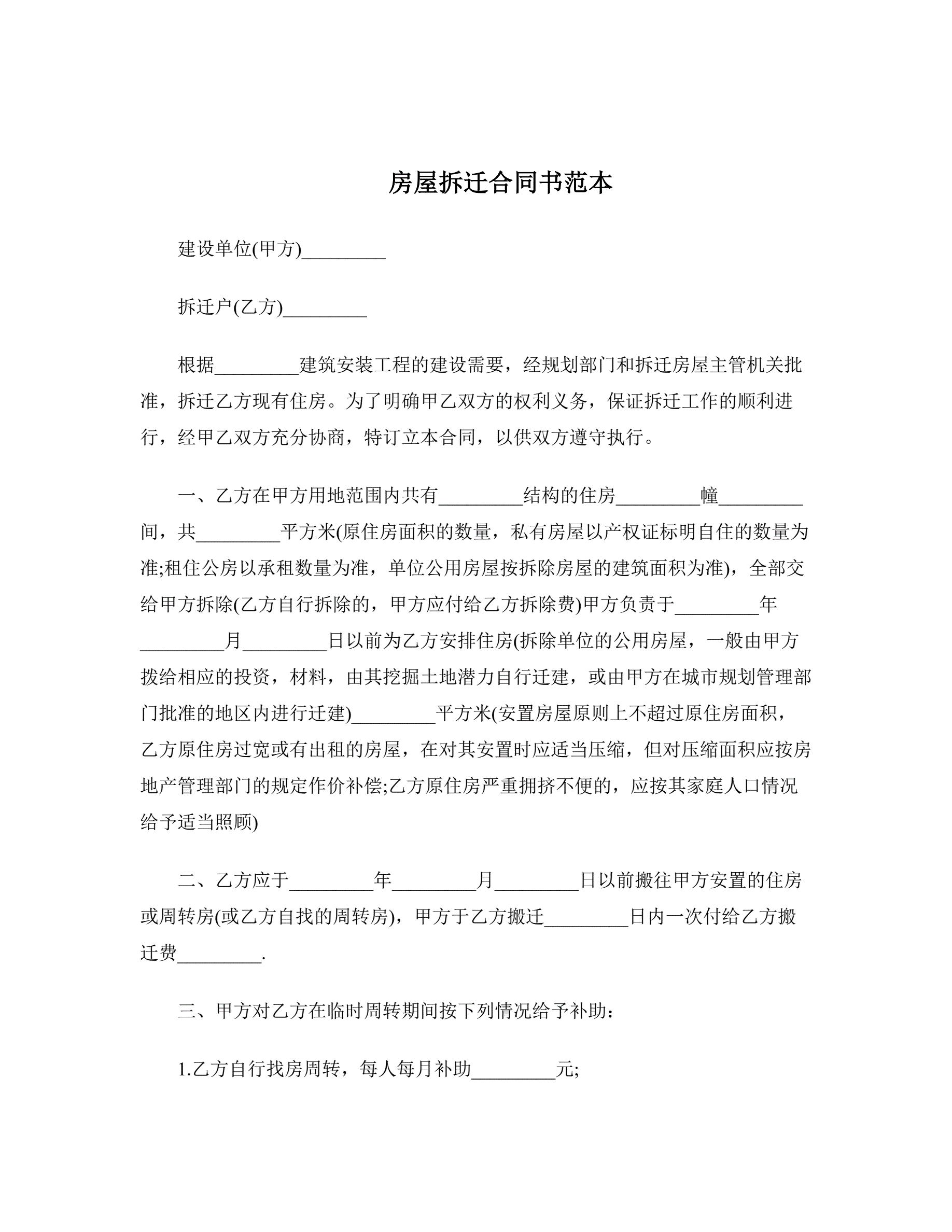 合同名称:房屋拆迁合同书范本