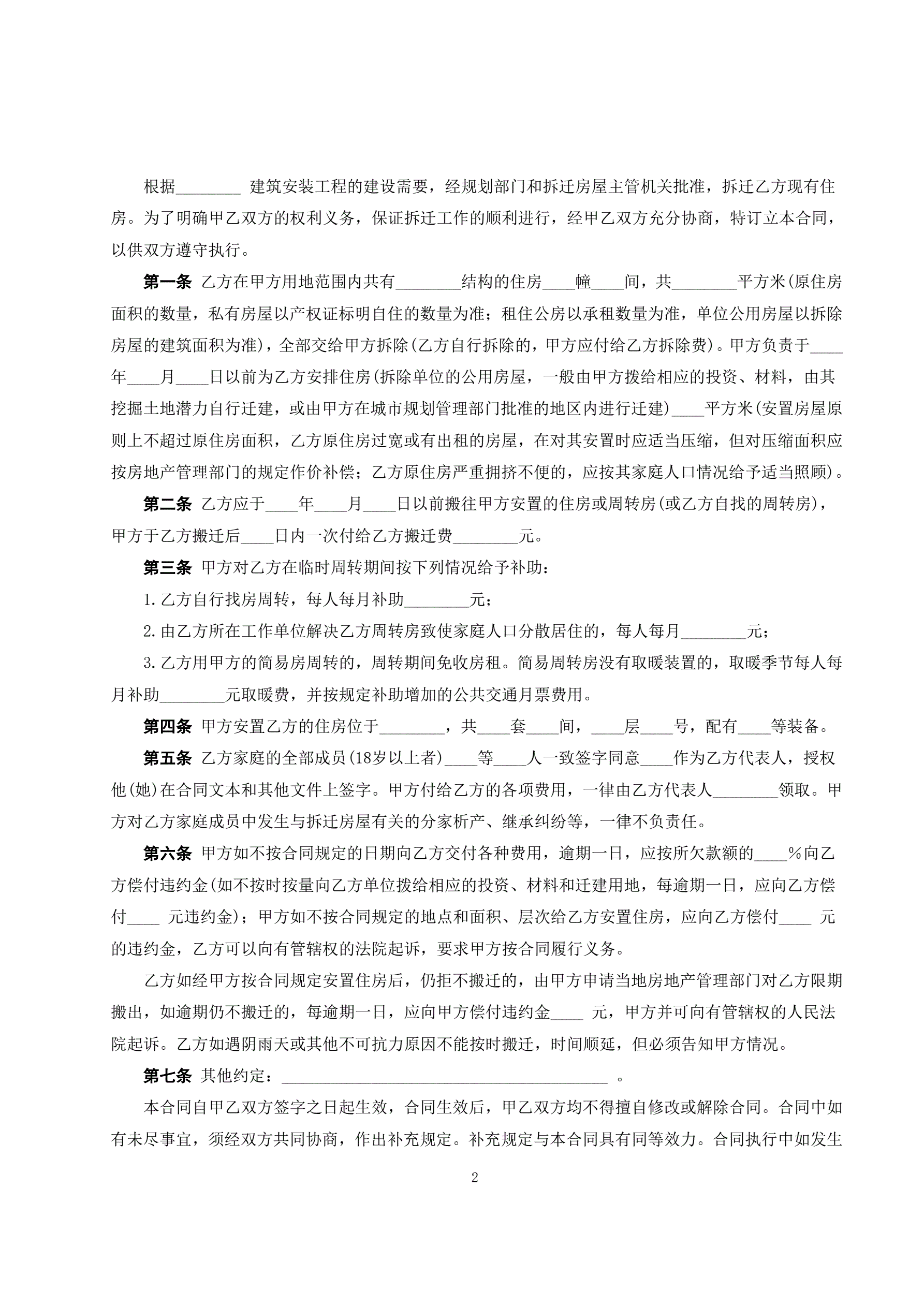 《建设工程拆迁房屋合同》