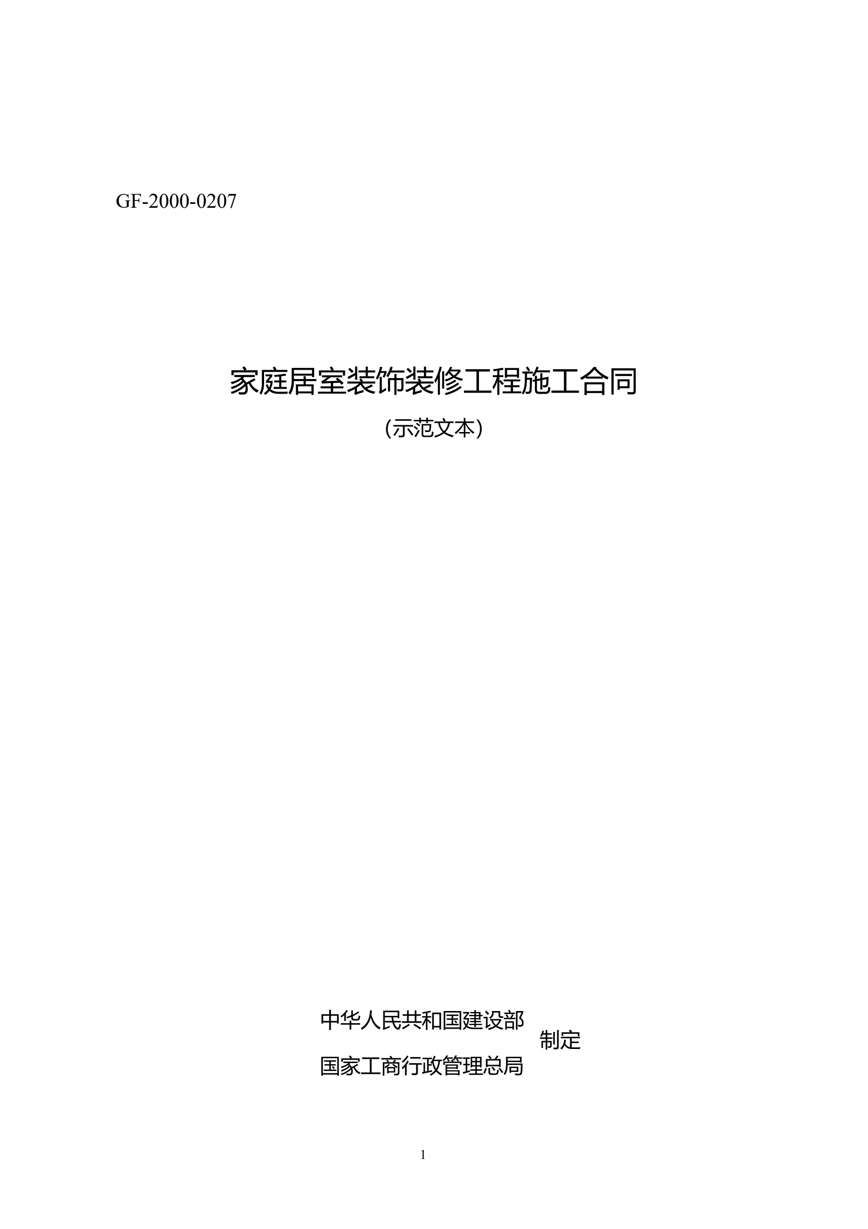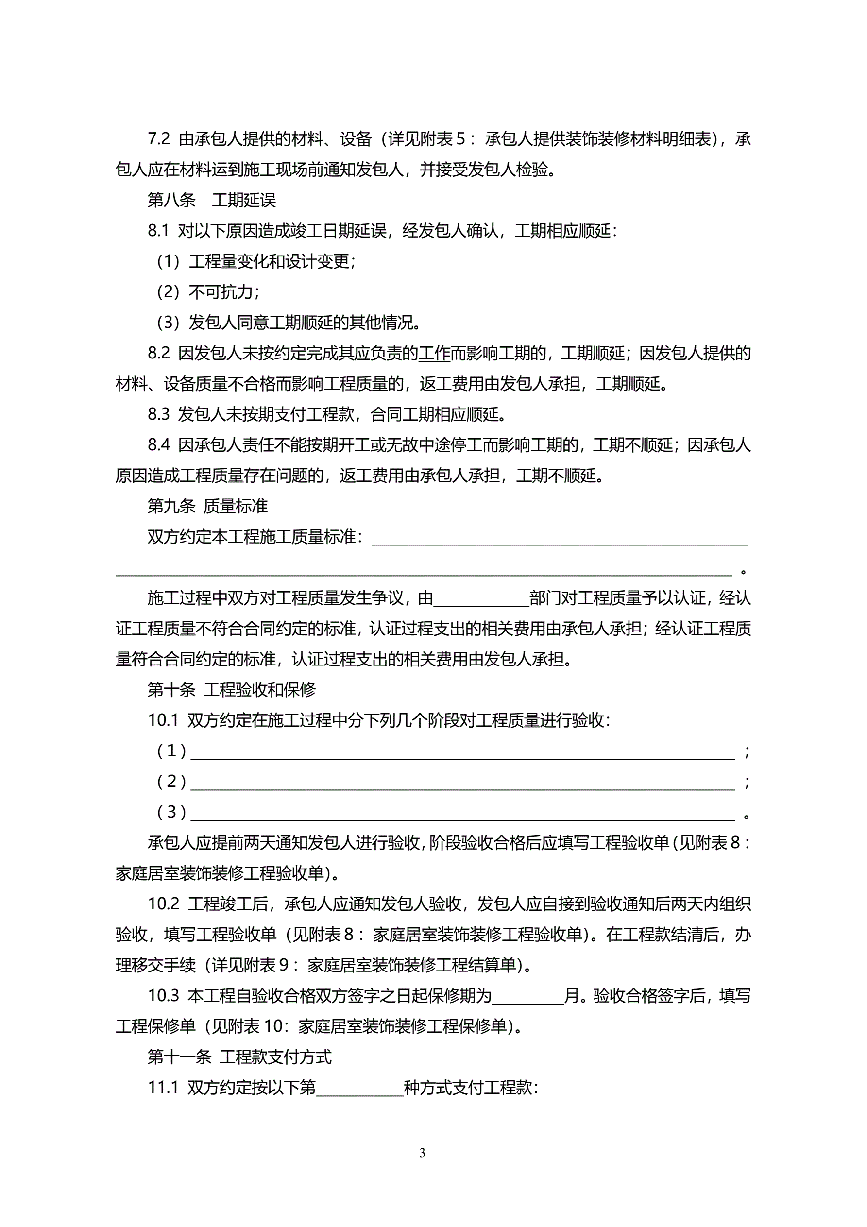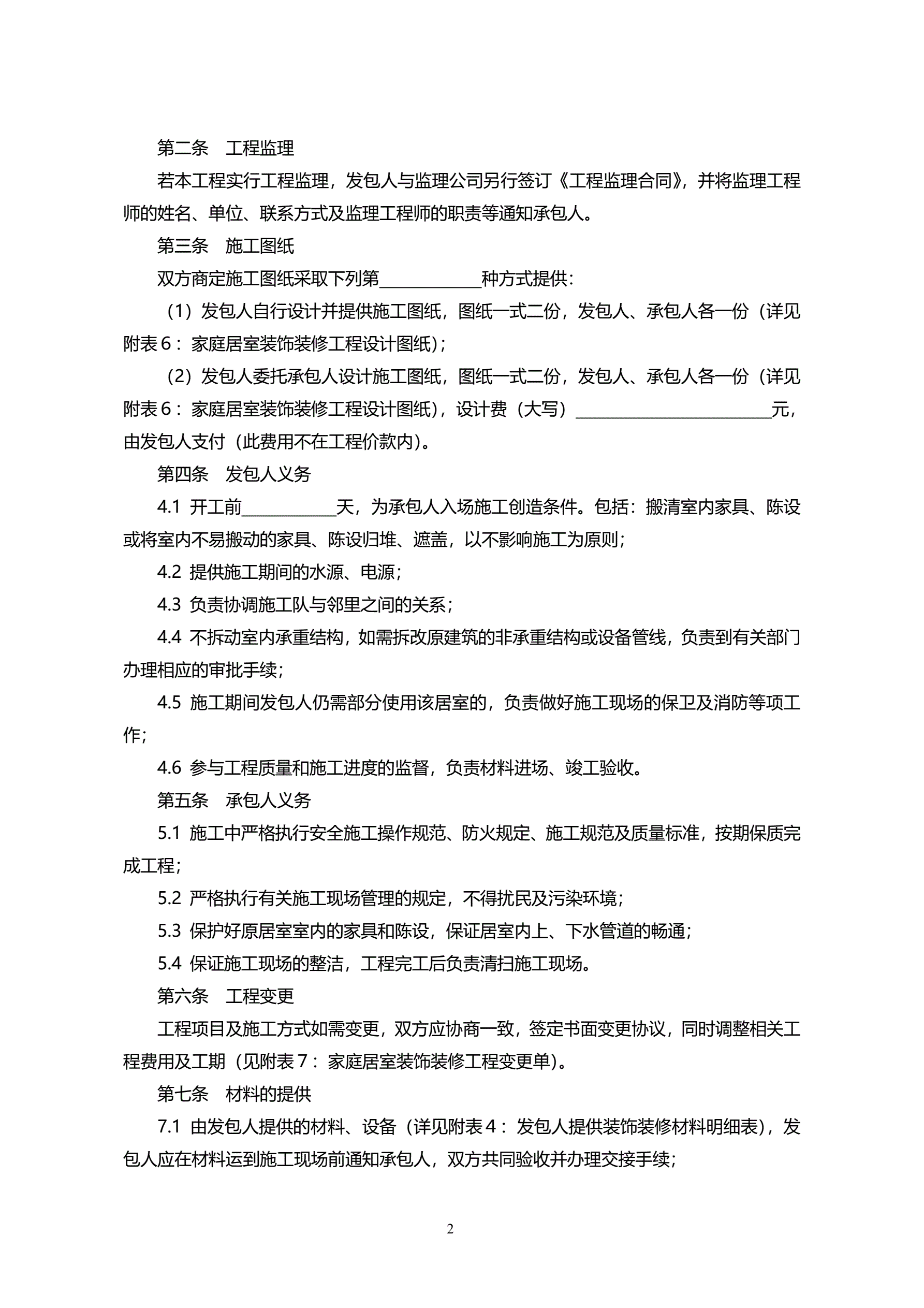 002-家庭居室装饰装修工程施工合同