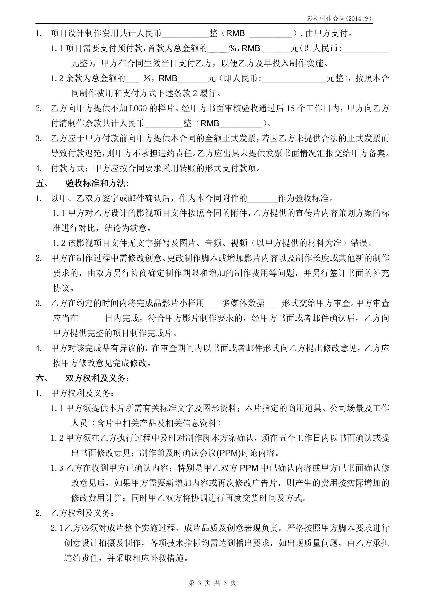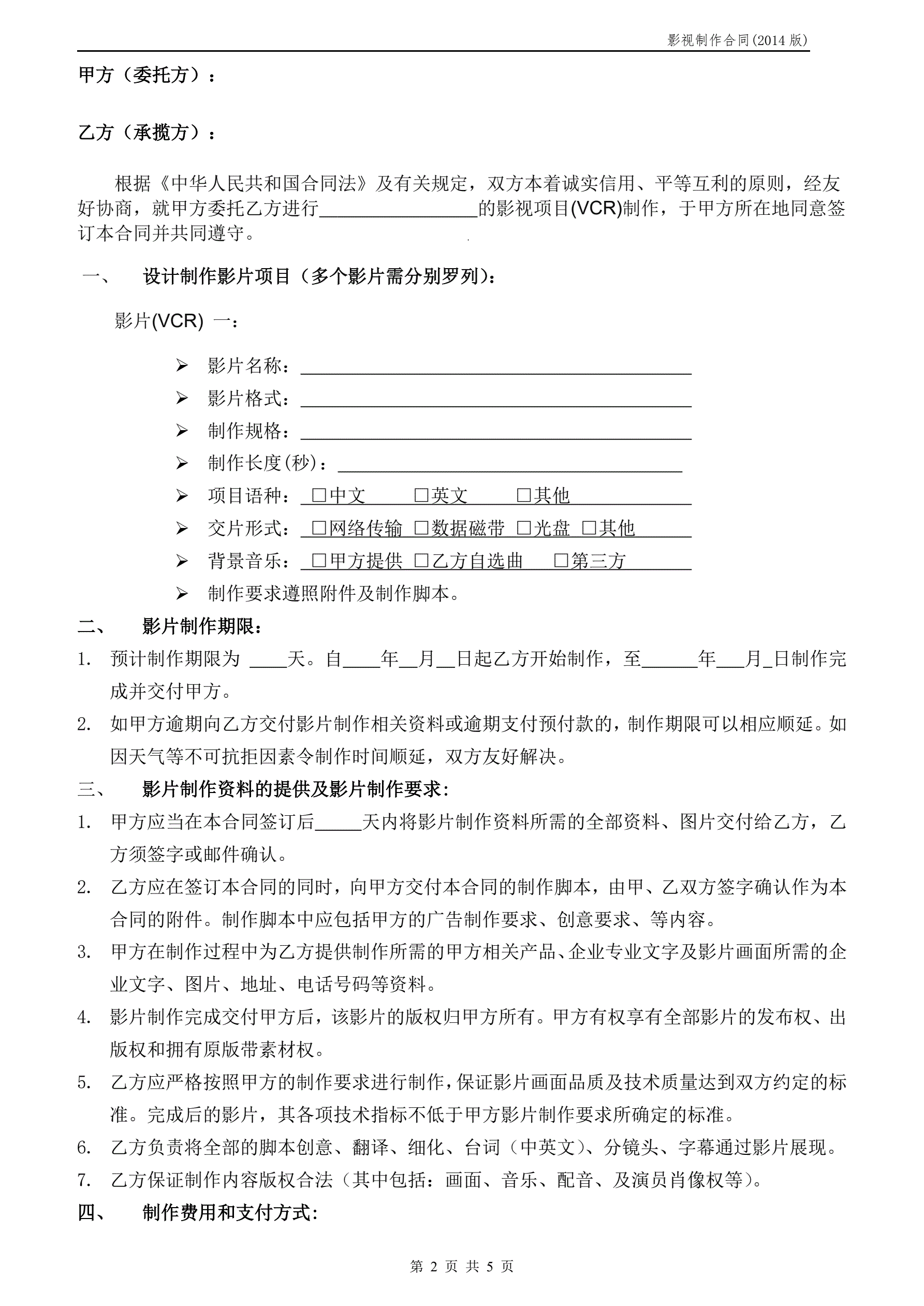 影视制作合同范本