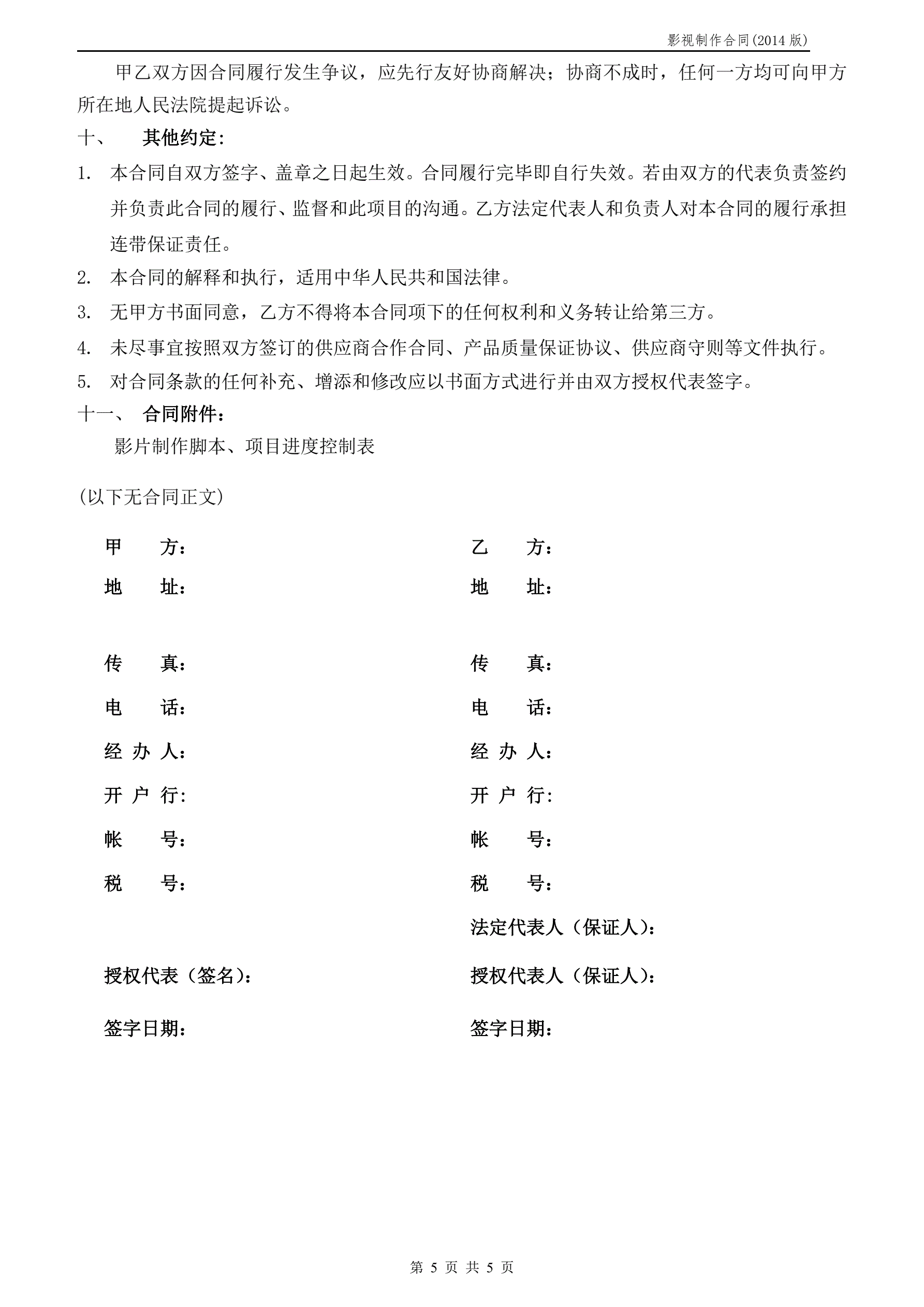 >影视制作合同范本