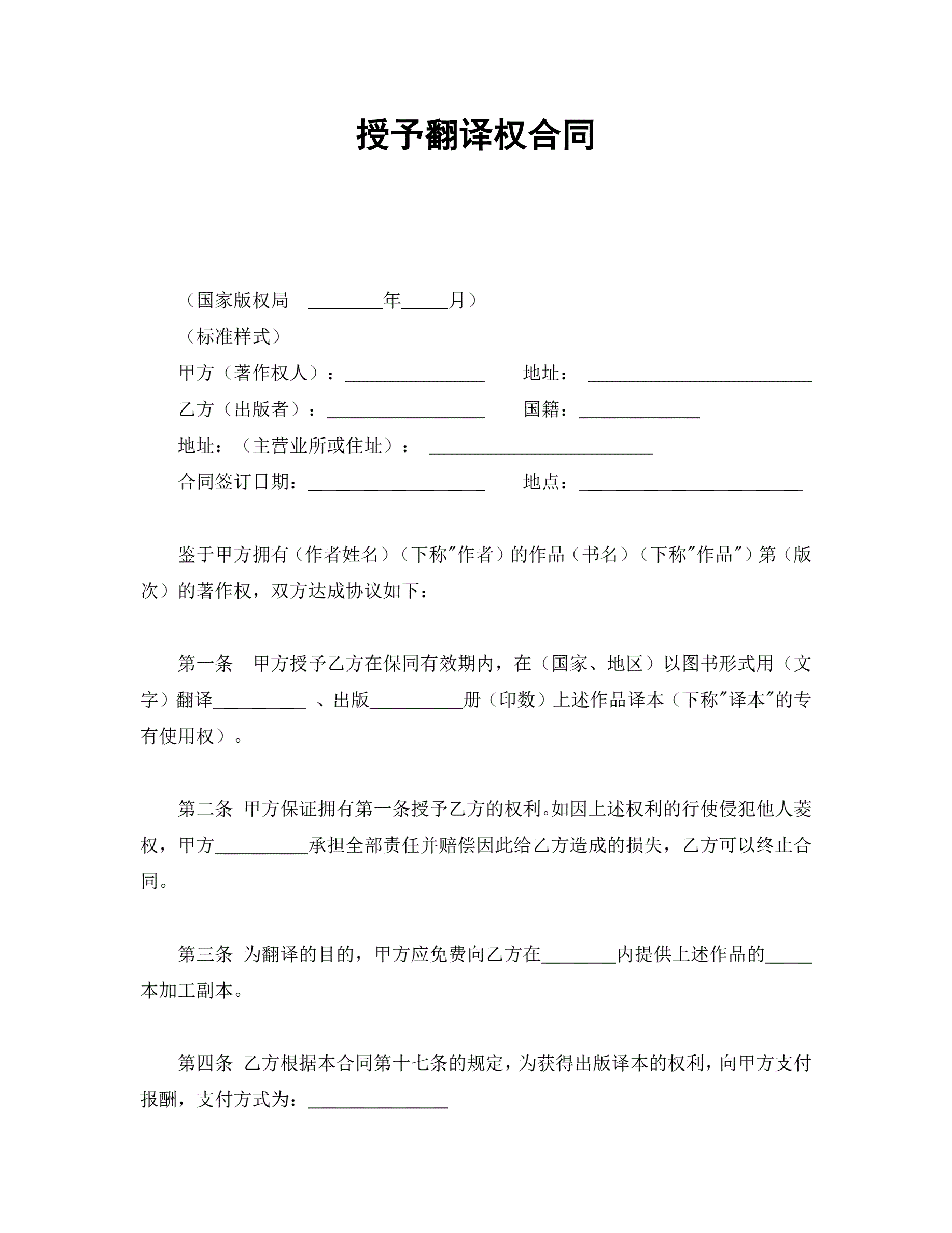 >授予翻译权合同