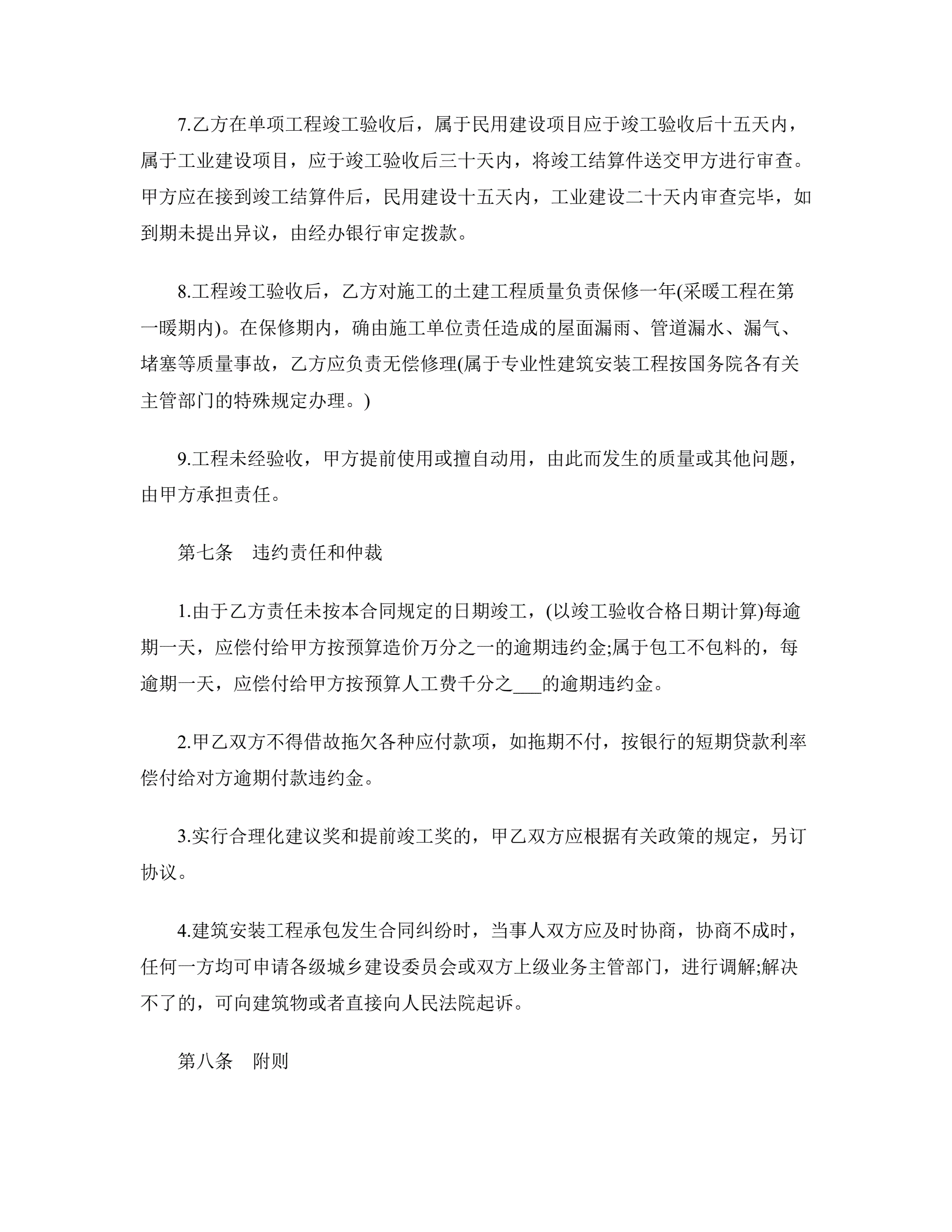 工程承包合同范本