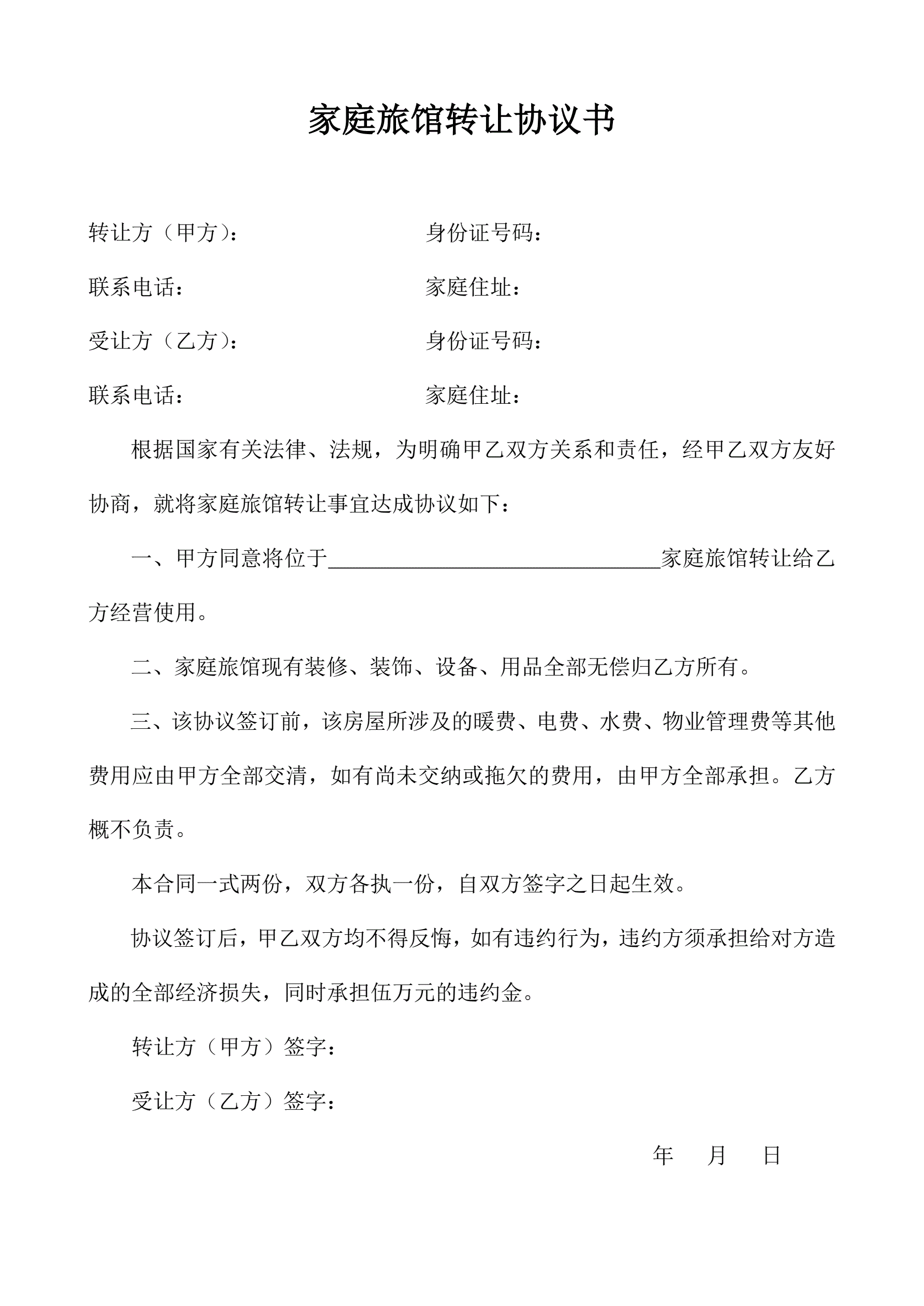 旅馆转让协议书