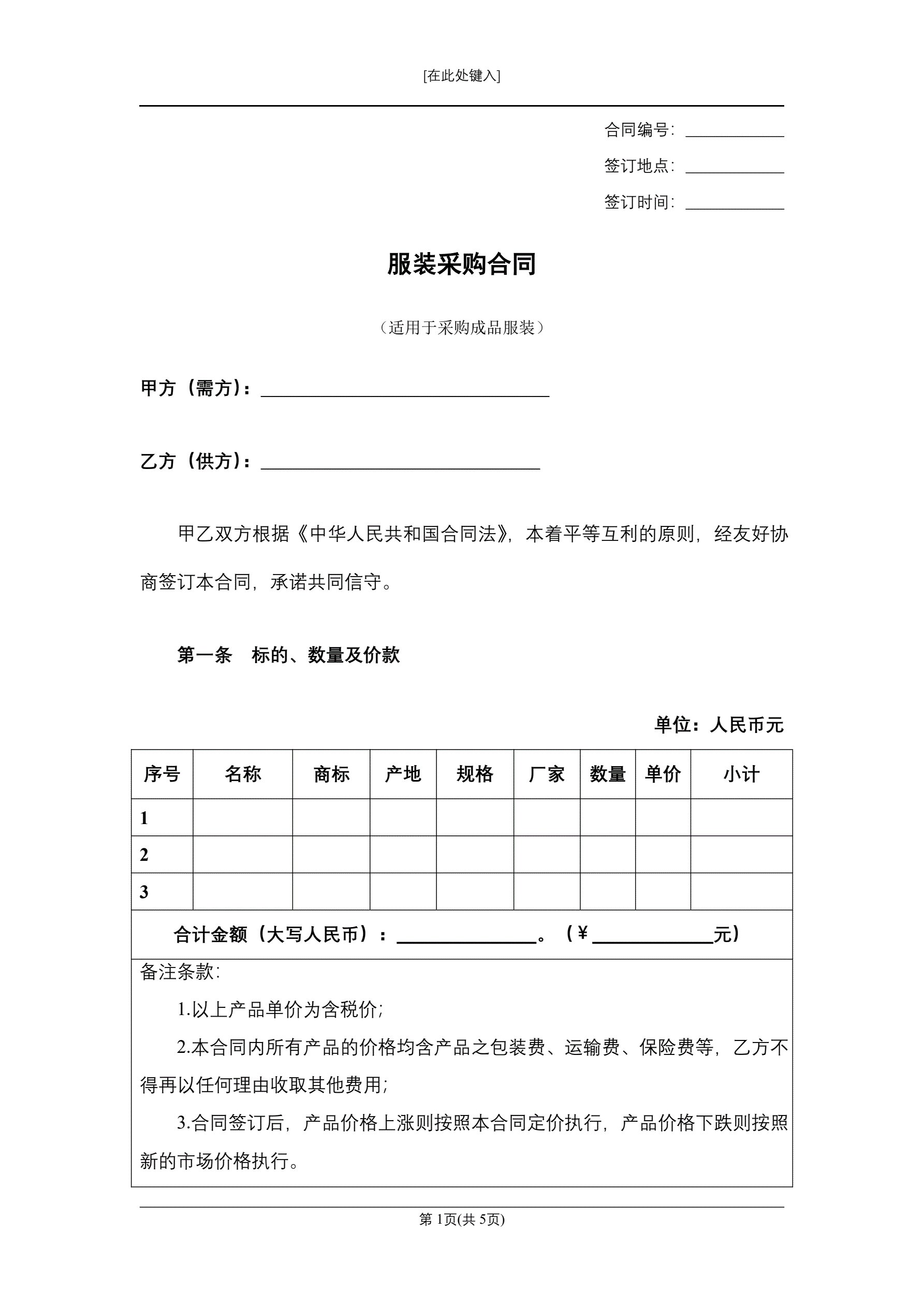 服装采购合同