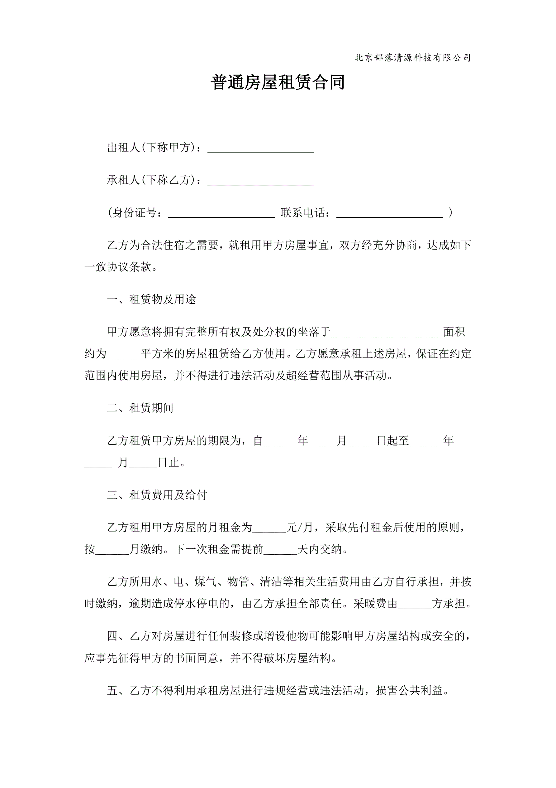 普通房屋租赁合同