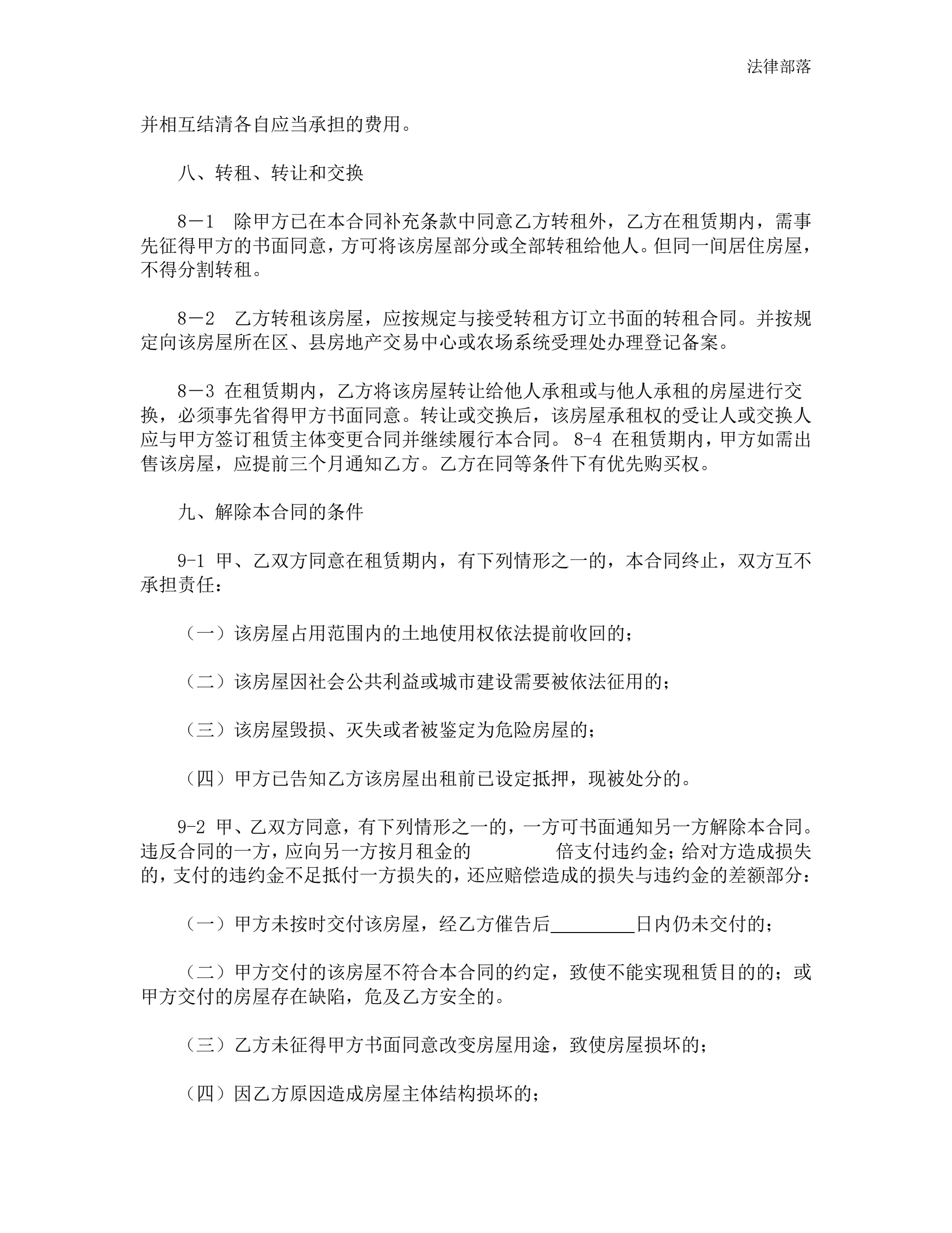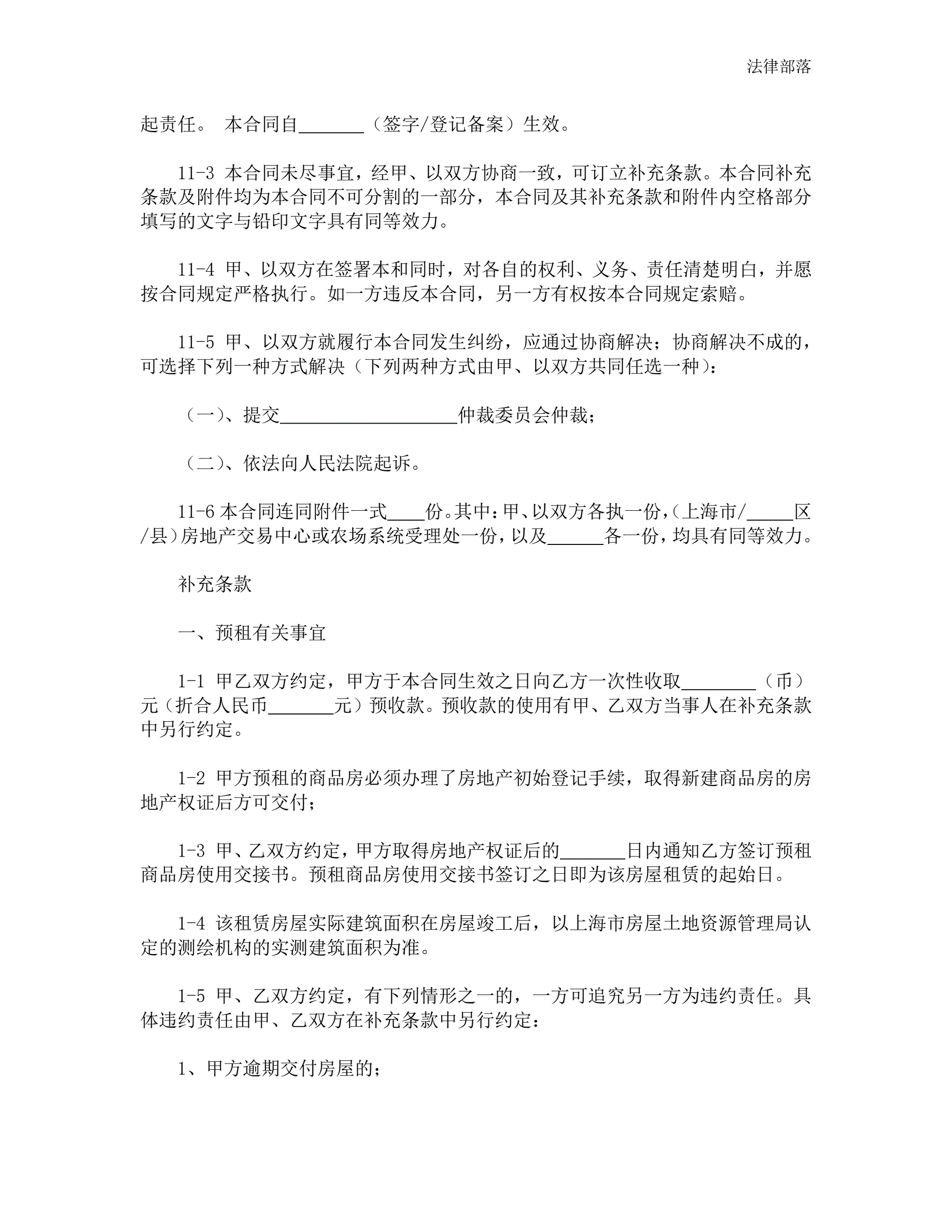 上海市房屋租赁合同