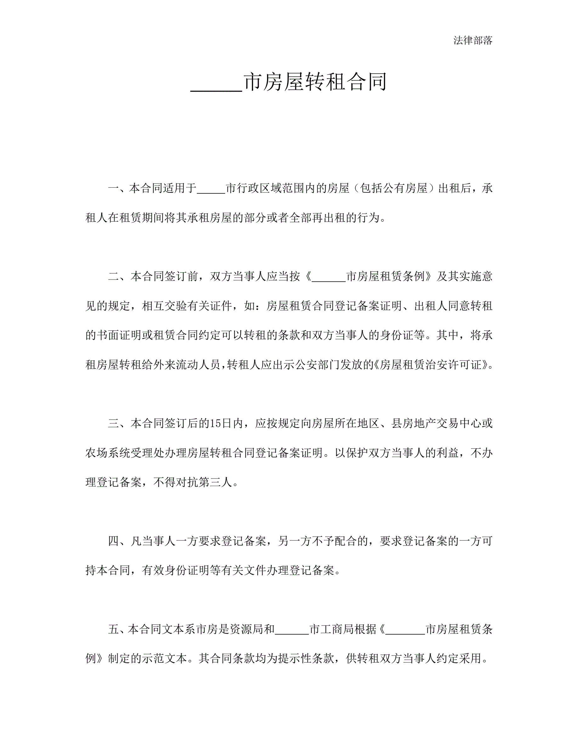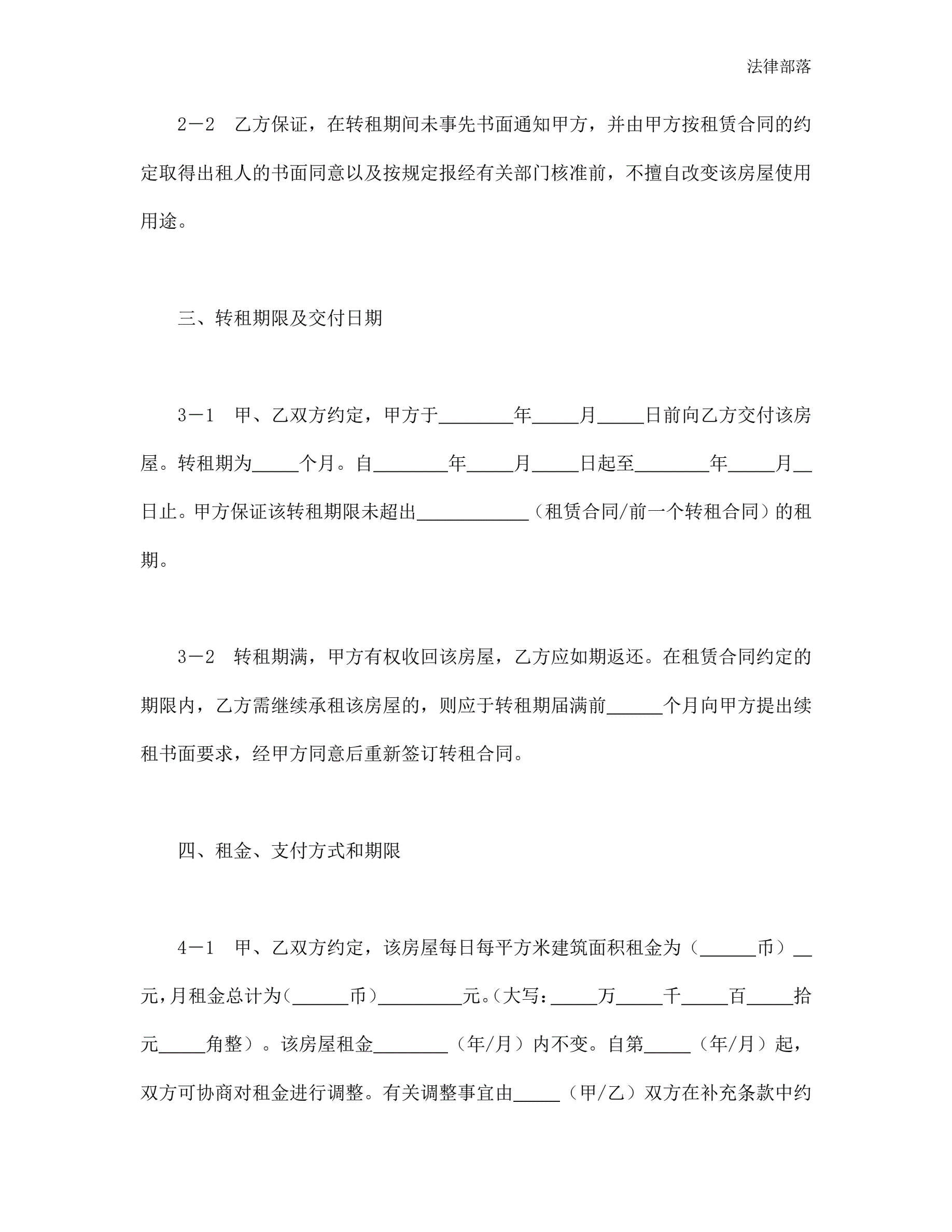 >房屋转租合同(新版)