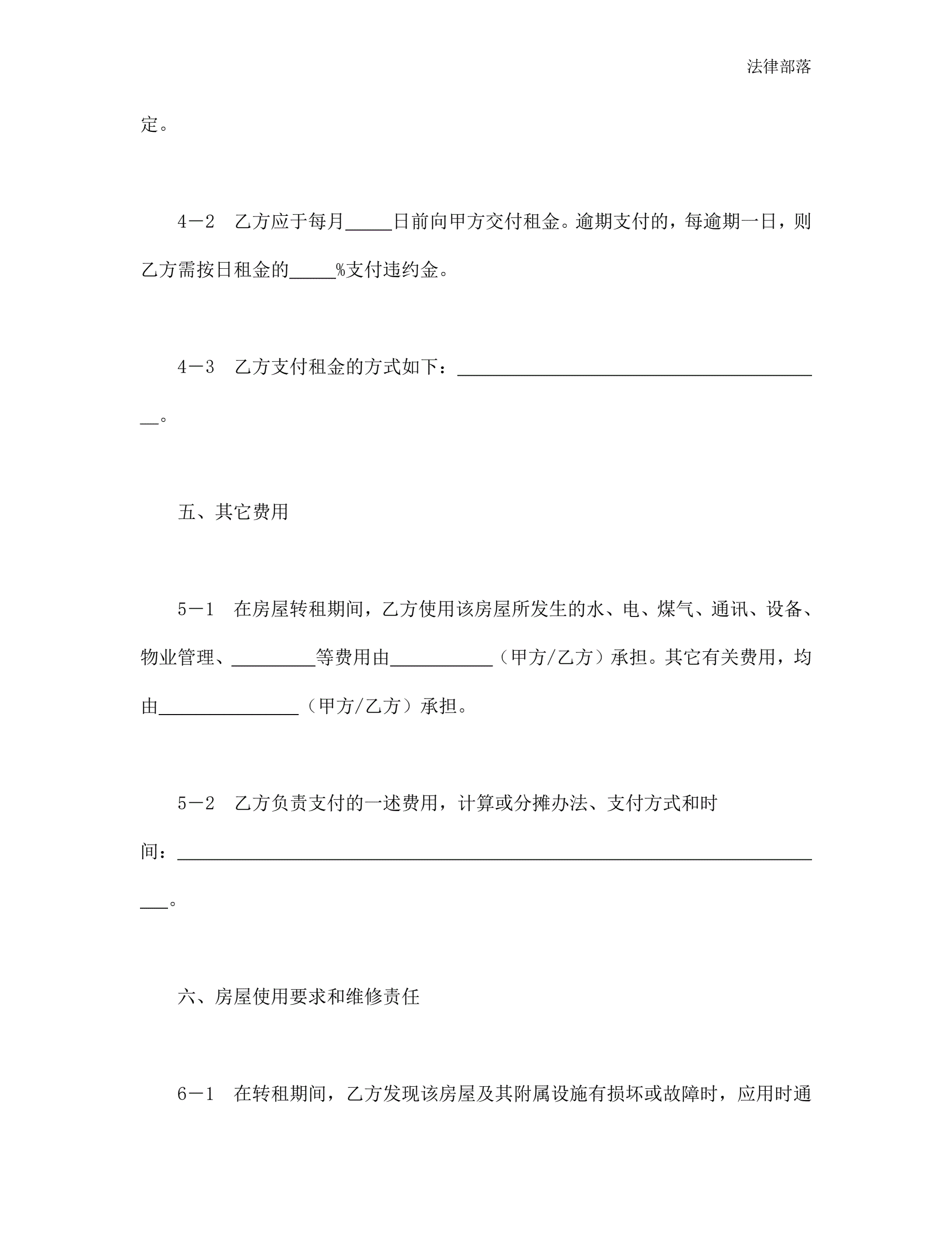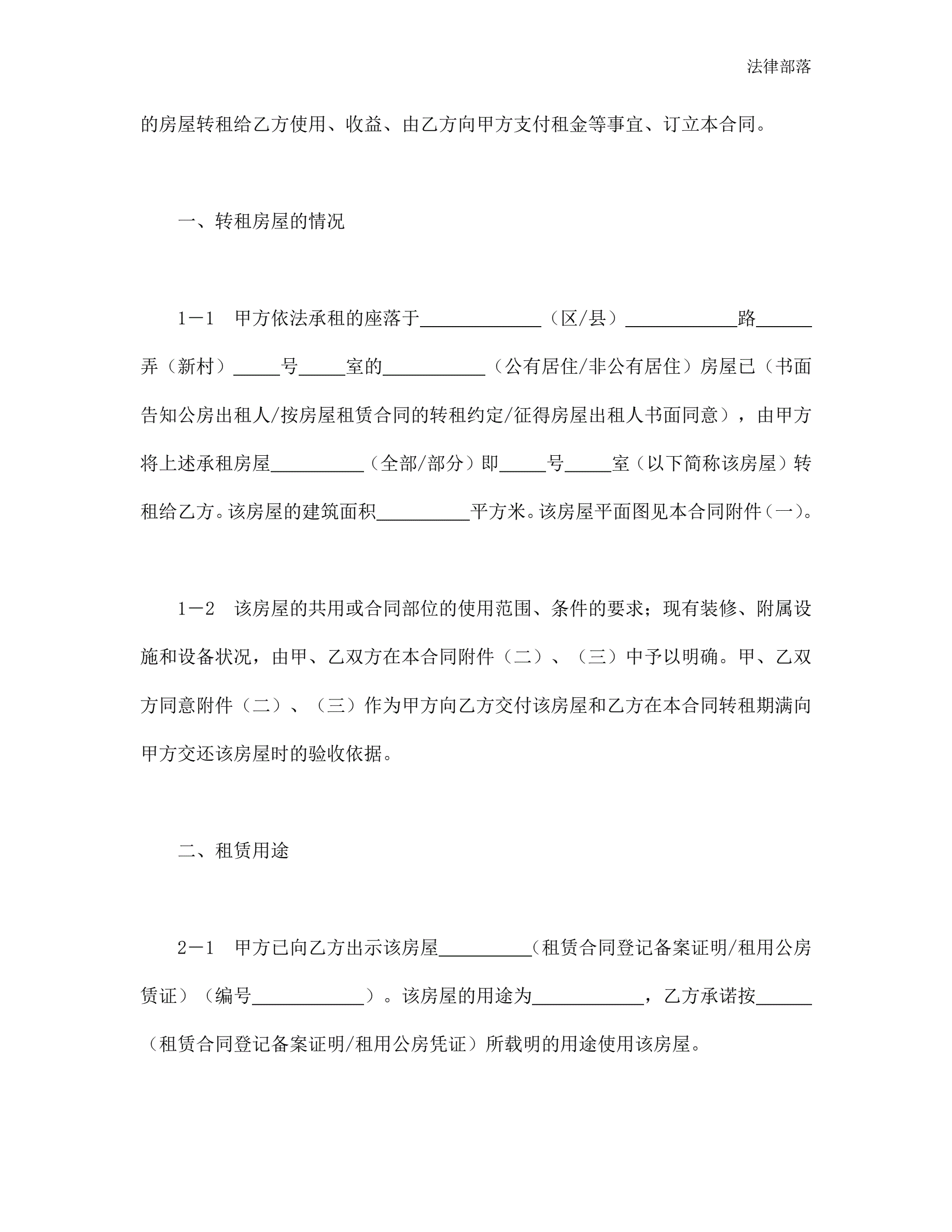 房屋转租合同(新版)