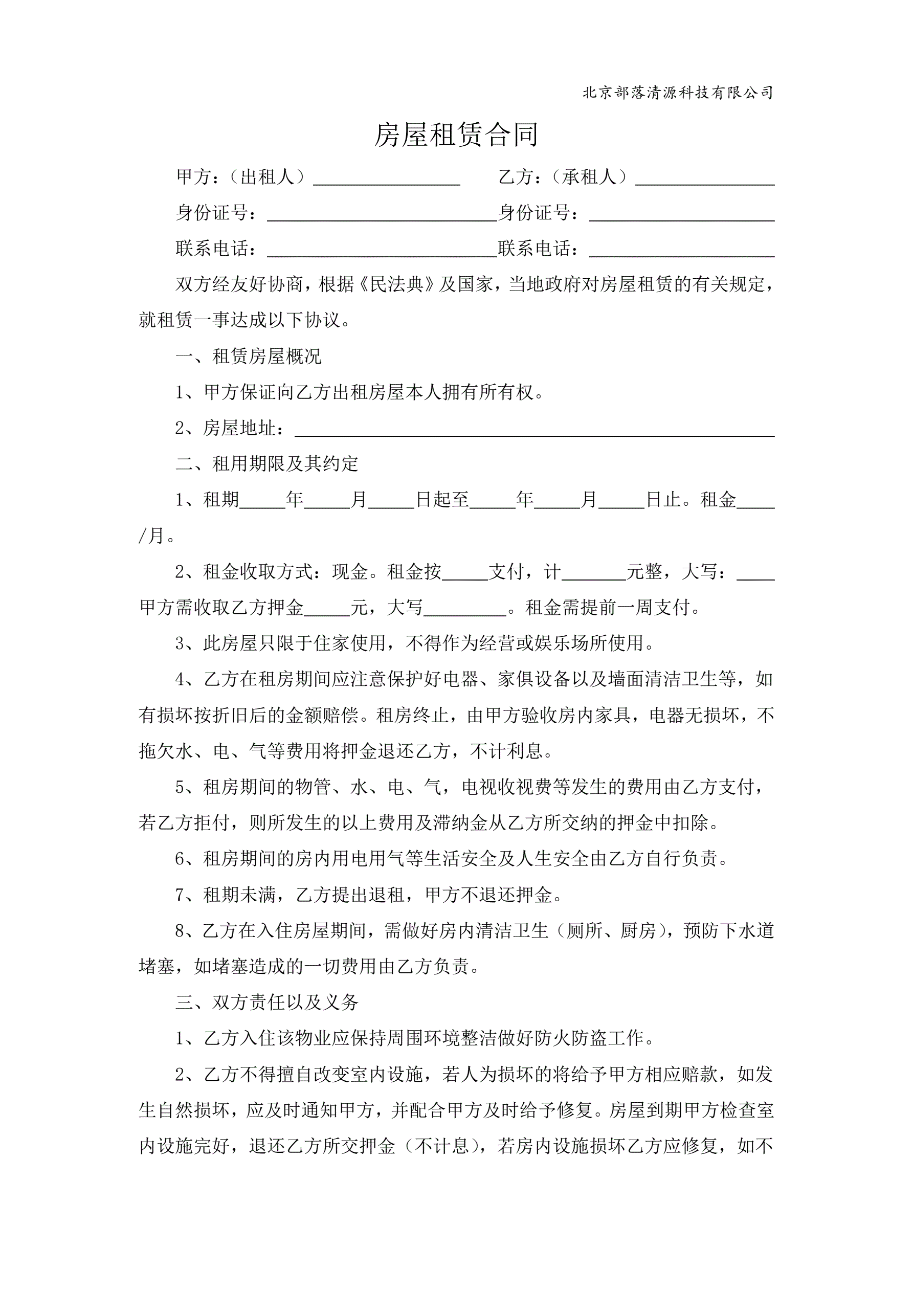 租房合同标准版
